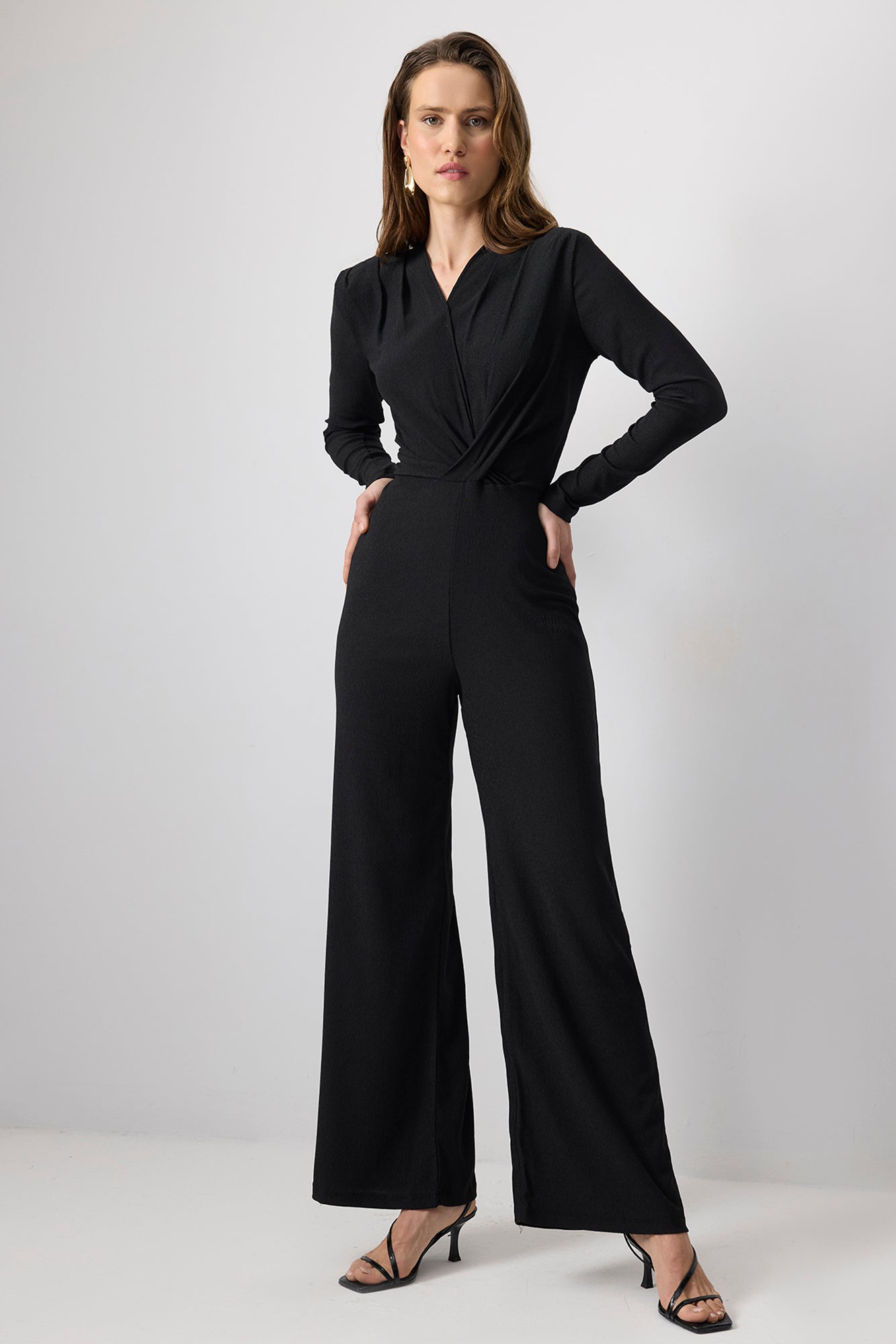 Esnek kumaşlı. Çapraz V yakalı. Uzun kollu. Tam bel. Vatkalı.