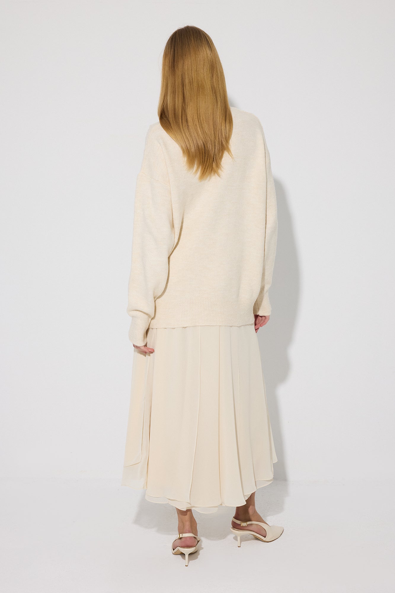 Bisiklet yaka. Uzun kollu. Ön yüzeyde kabartmalı baklava desen örgü.