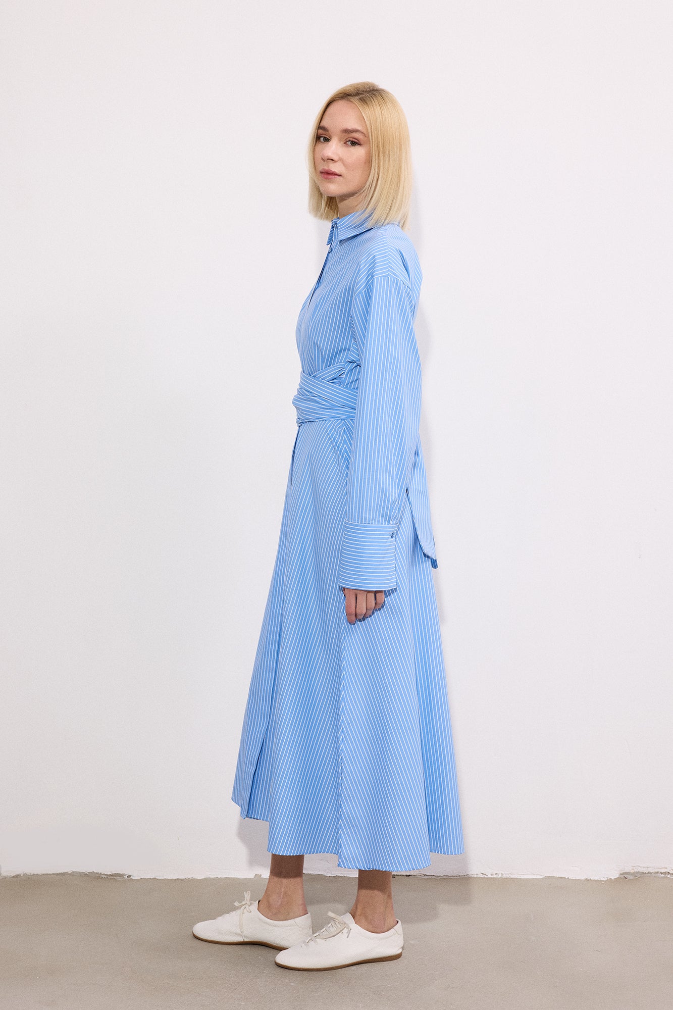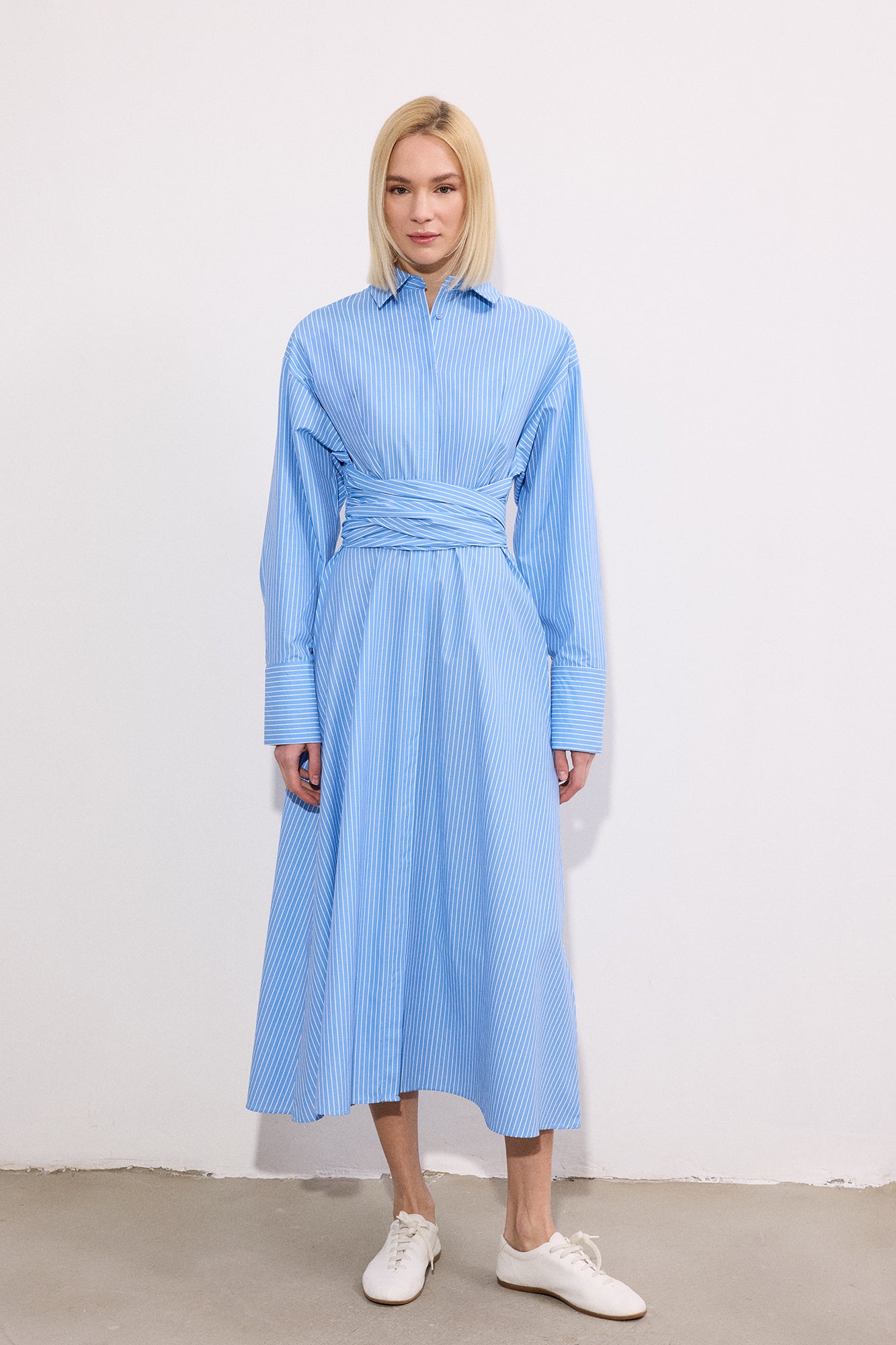 KUŞAK DETAYLI GÖMLEK ELBİSE