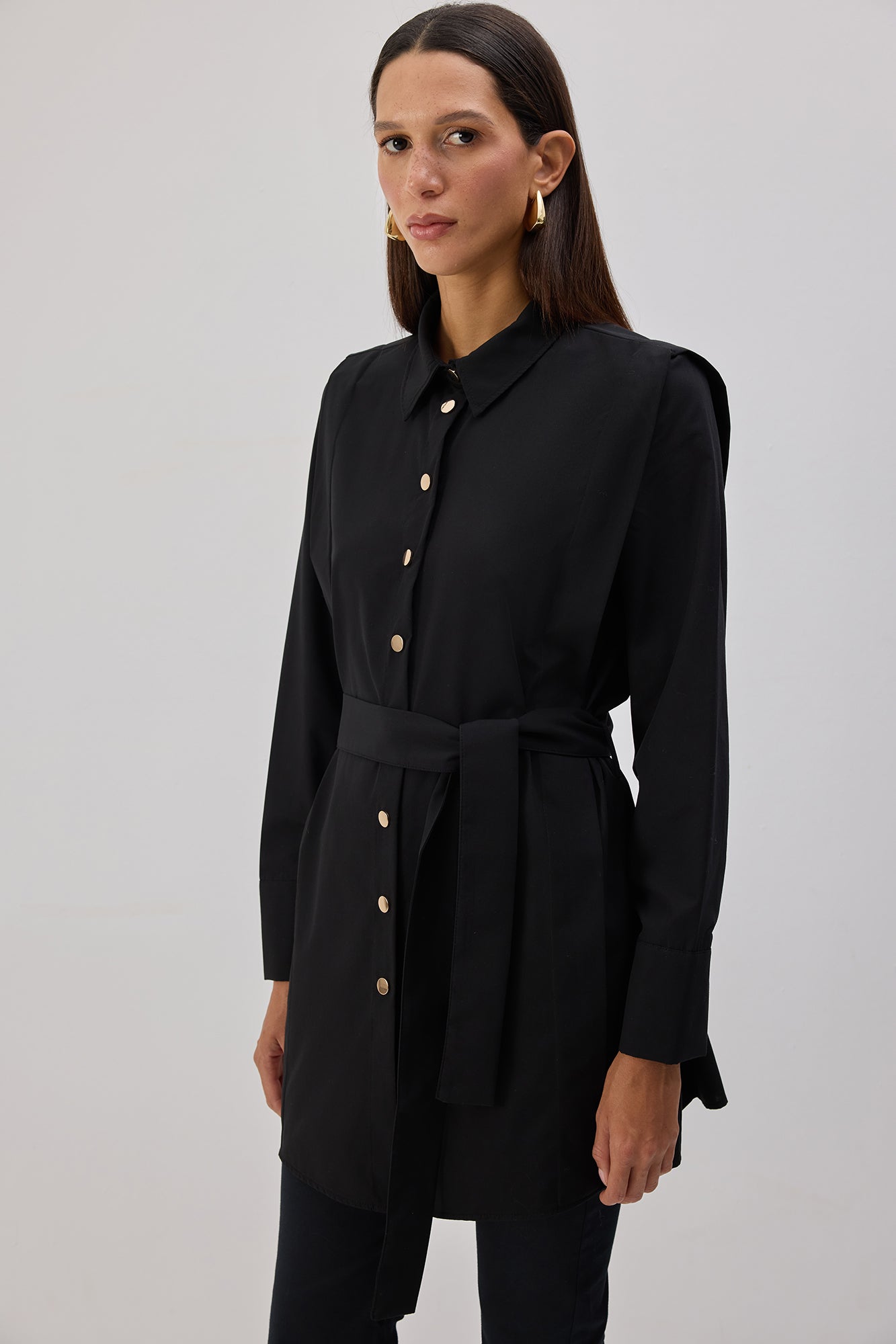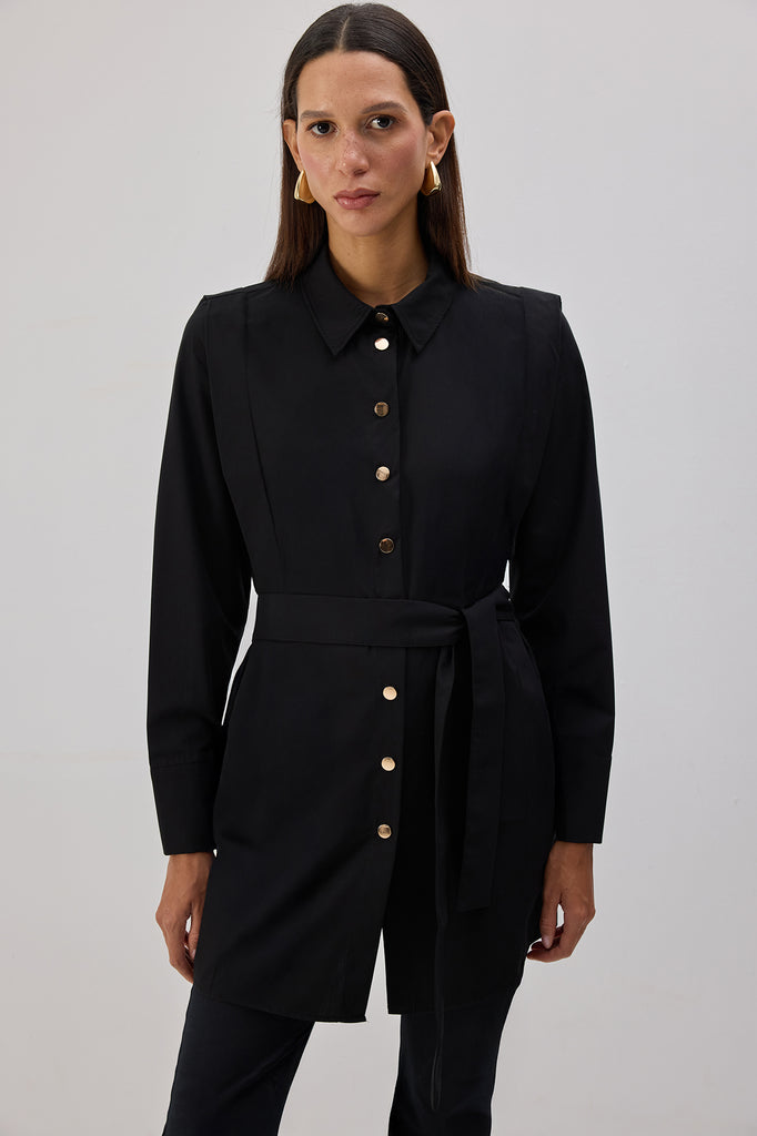 KUŞAKLI POPLİN GÖMLEK