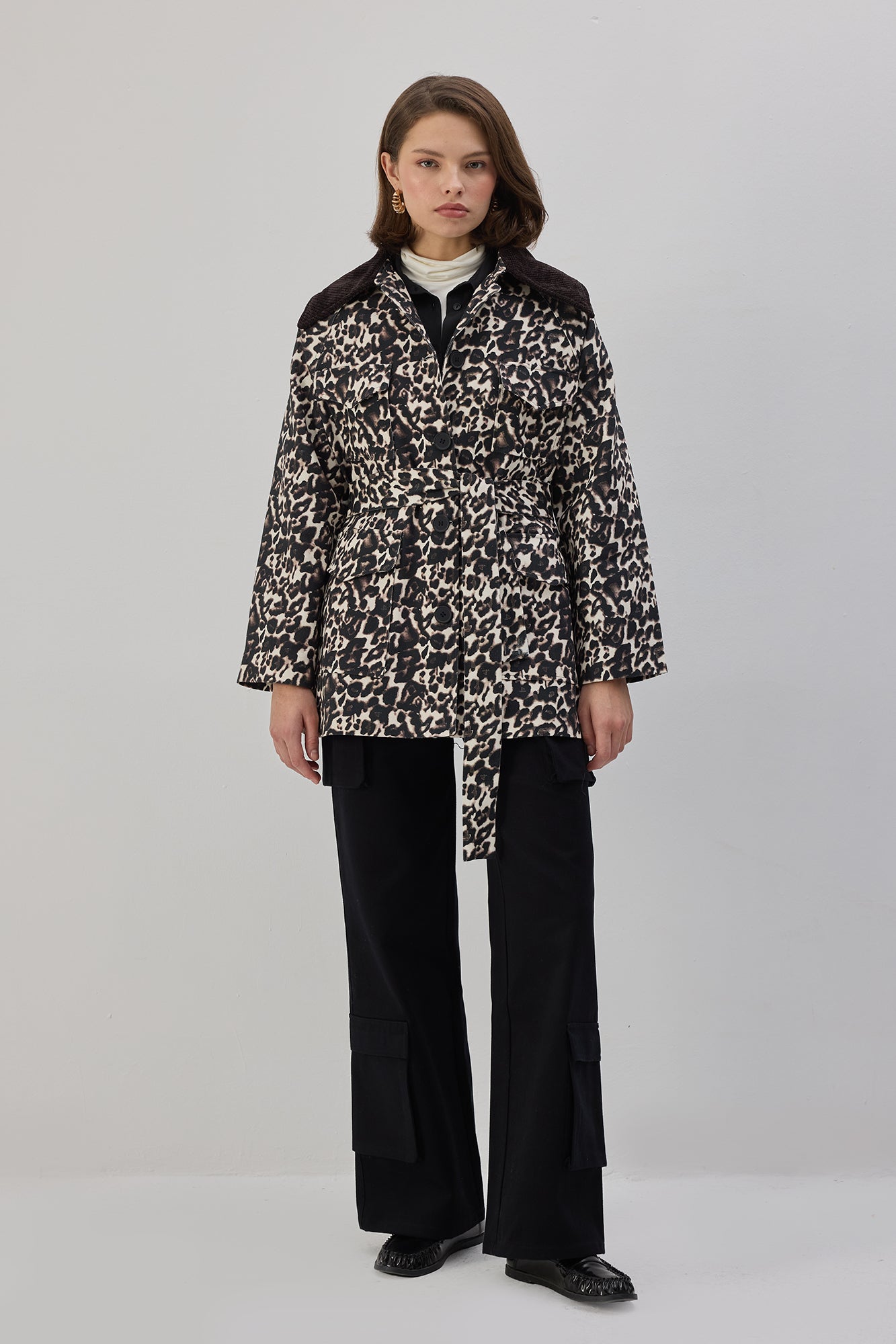 LEOPAR DESENLİ KEMERLİ CEKET