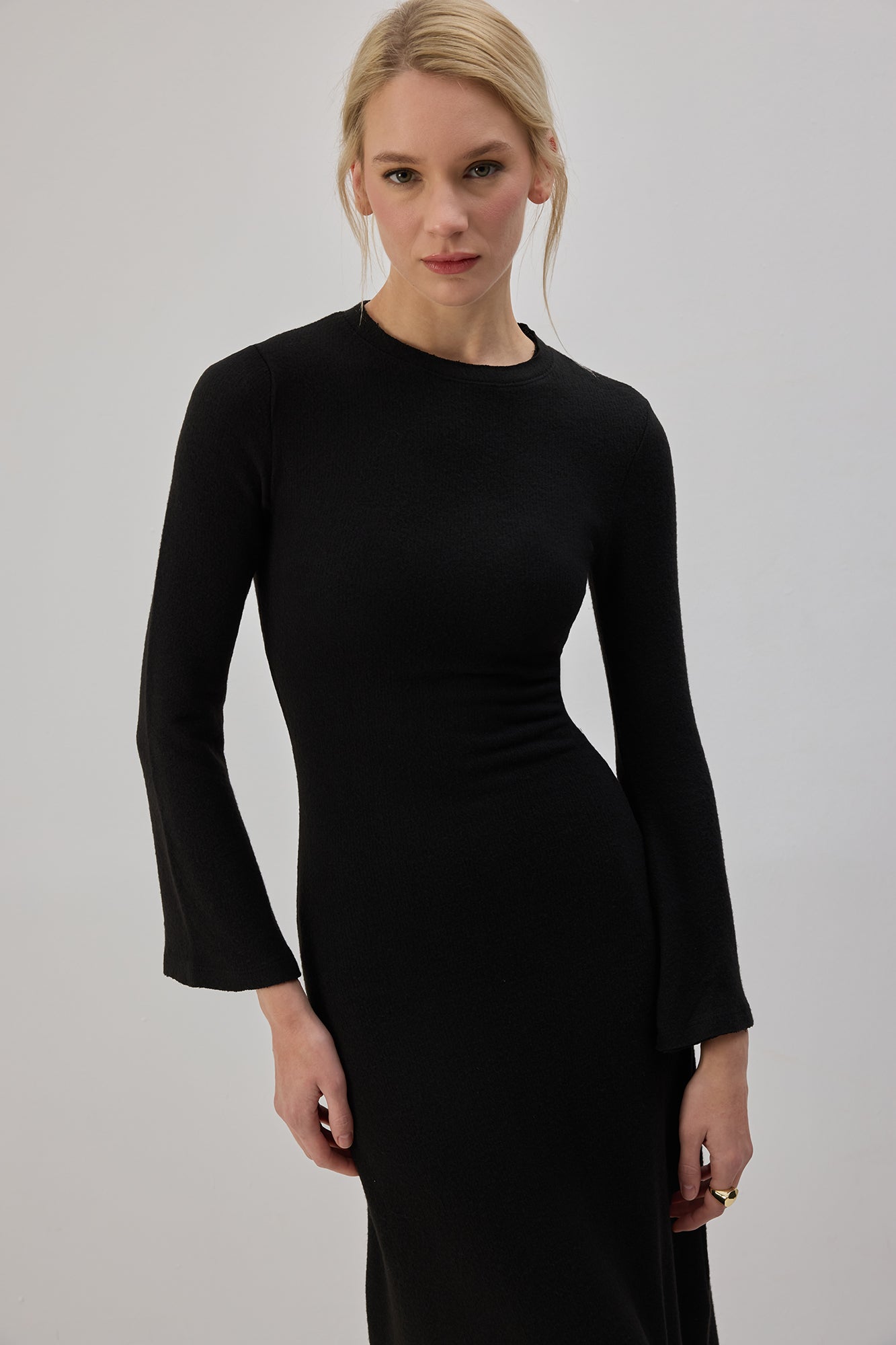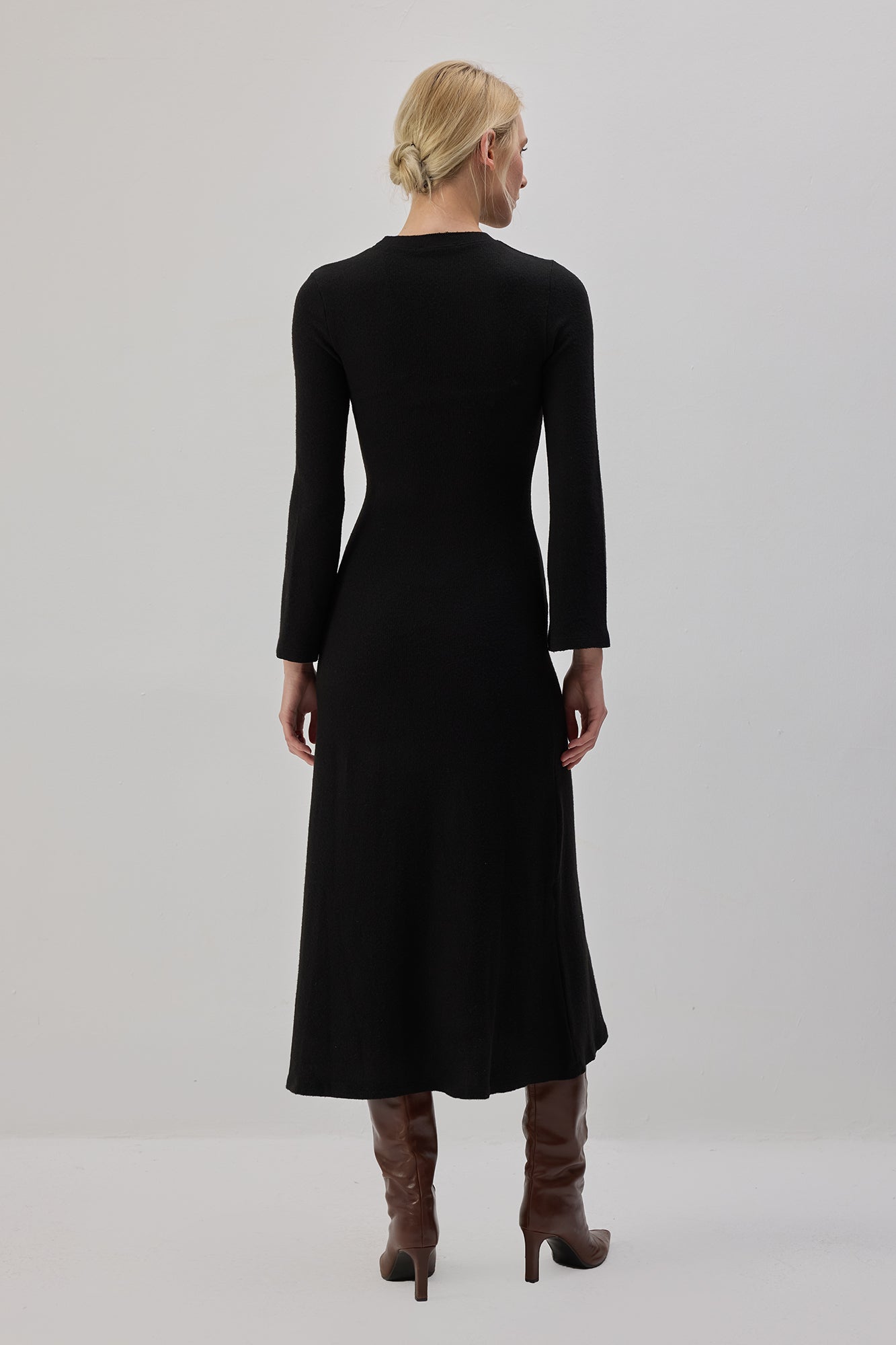 Bisiklet yaka. Uzun kollu. Triko. Midi boy.