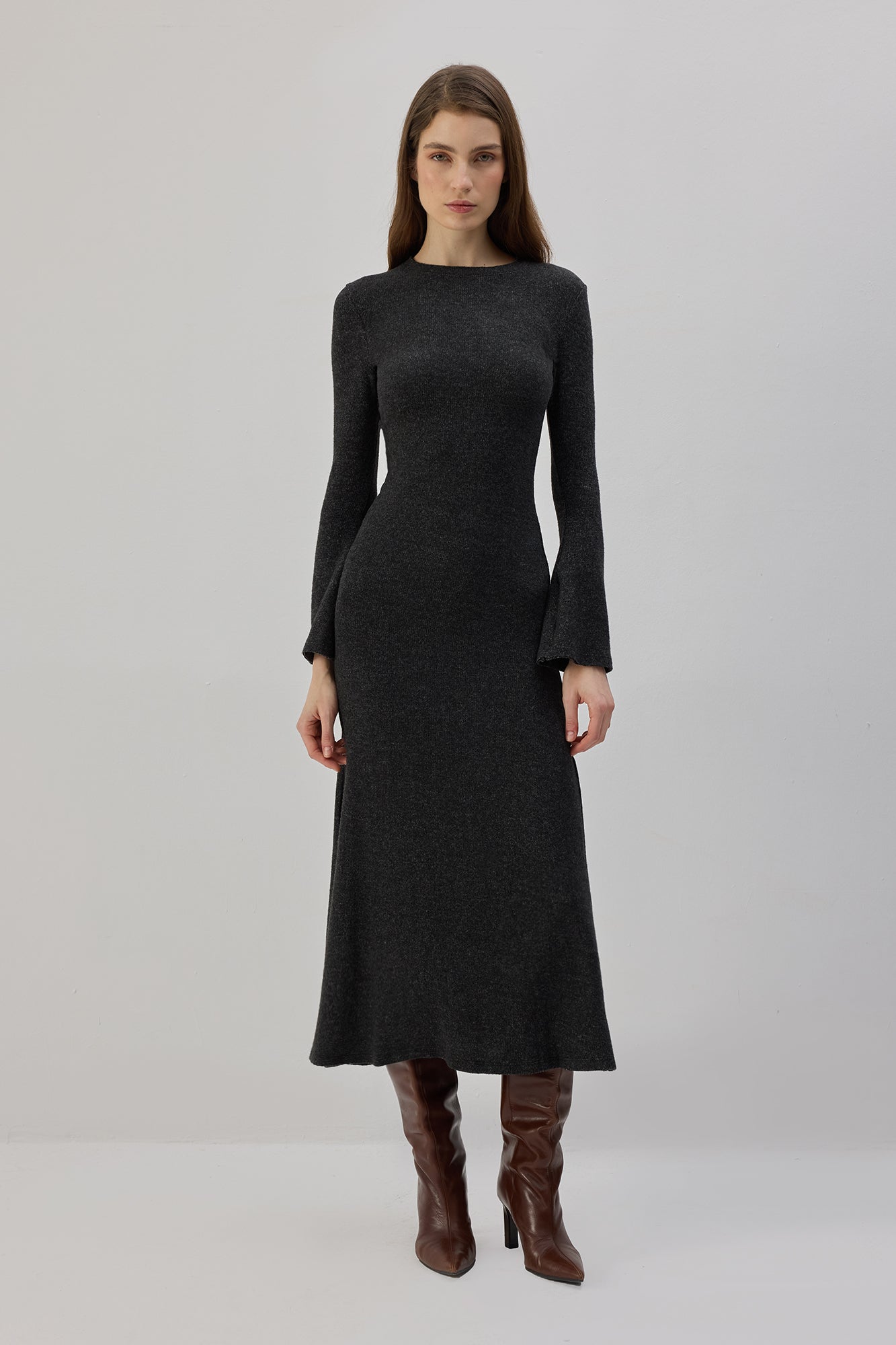 UZUN KOLLU YÜNLÜ MAXİ ELBİSE