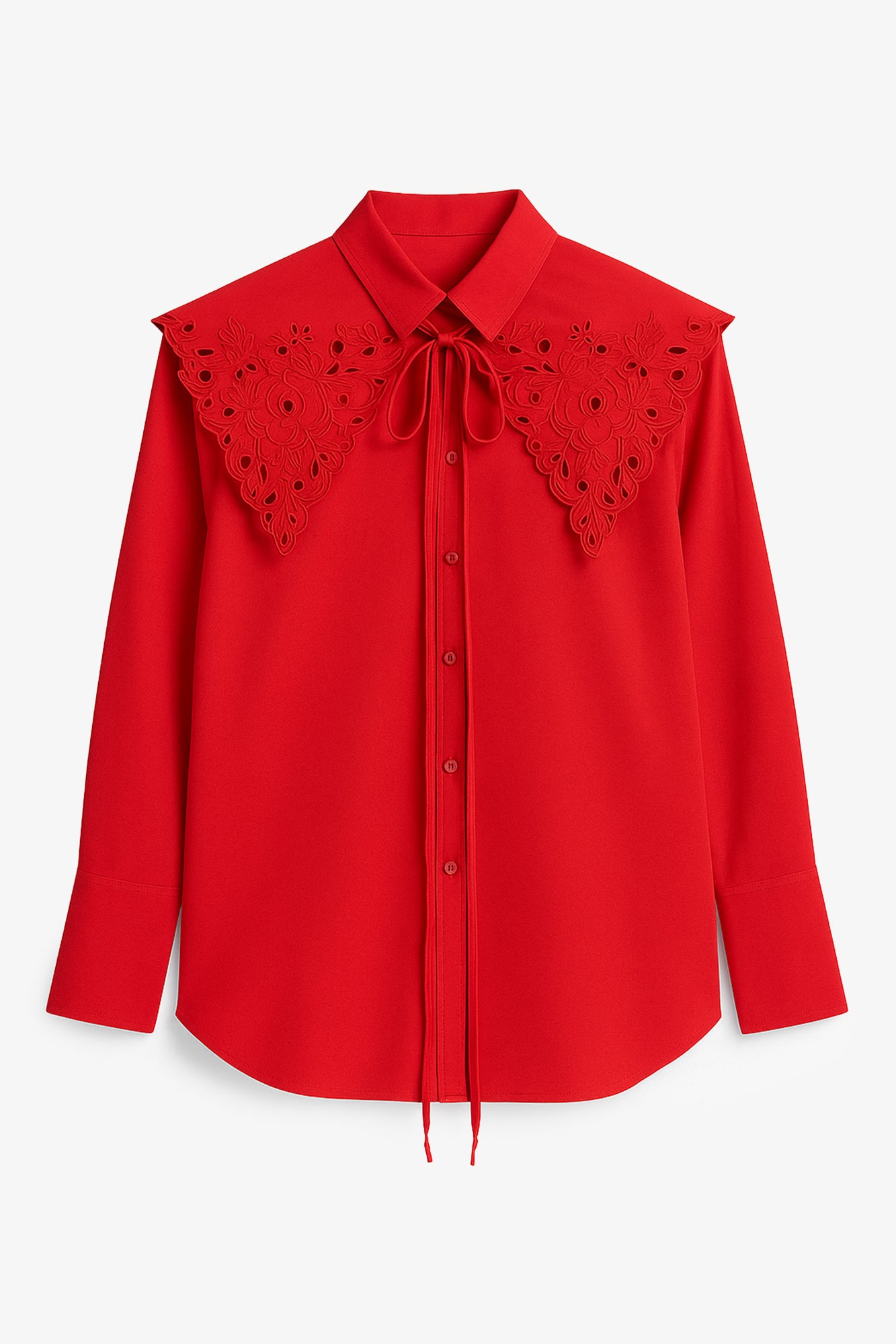 NAKIŞ DETAYLI GENİŞ YAKA GÖMLEK
