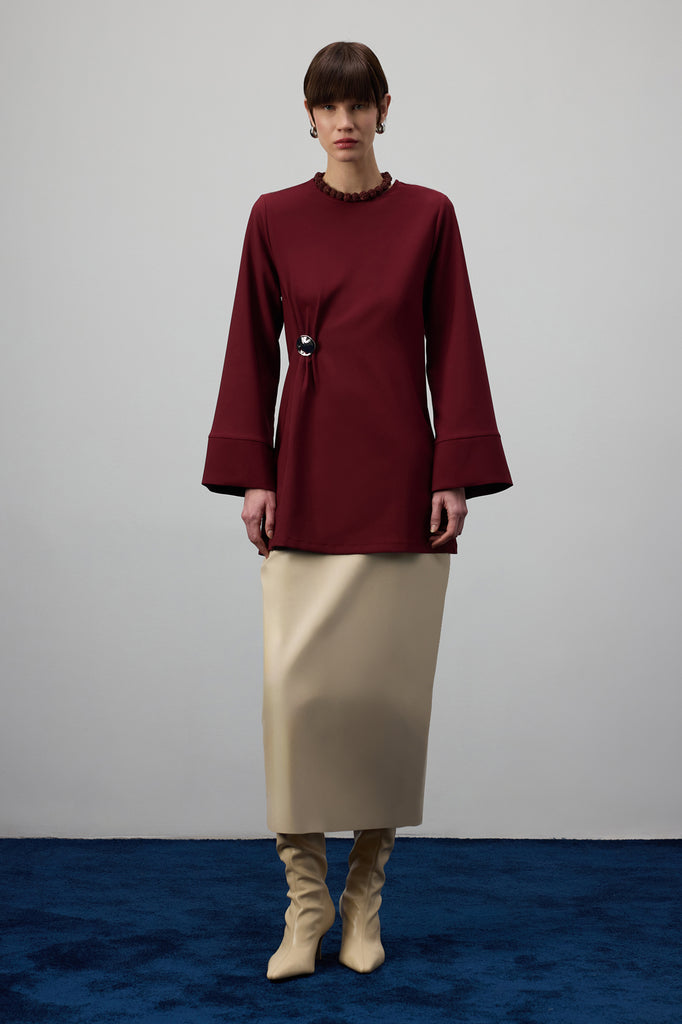 Klasik yaka. Uzun kollu ve manşetleri düğmeli. Nakış detaylı. Denim. Önden düğme kapamalı.