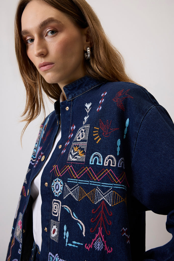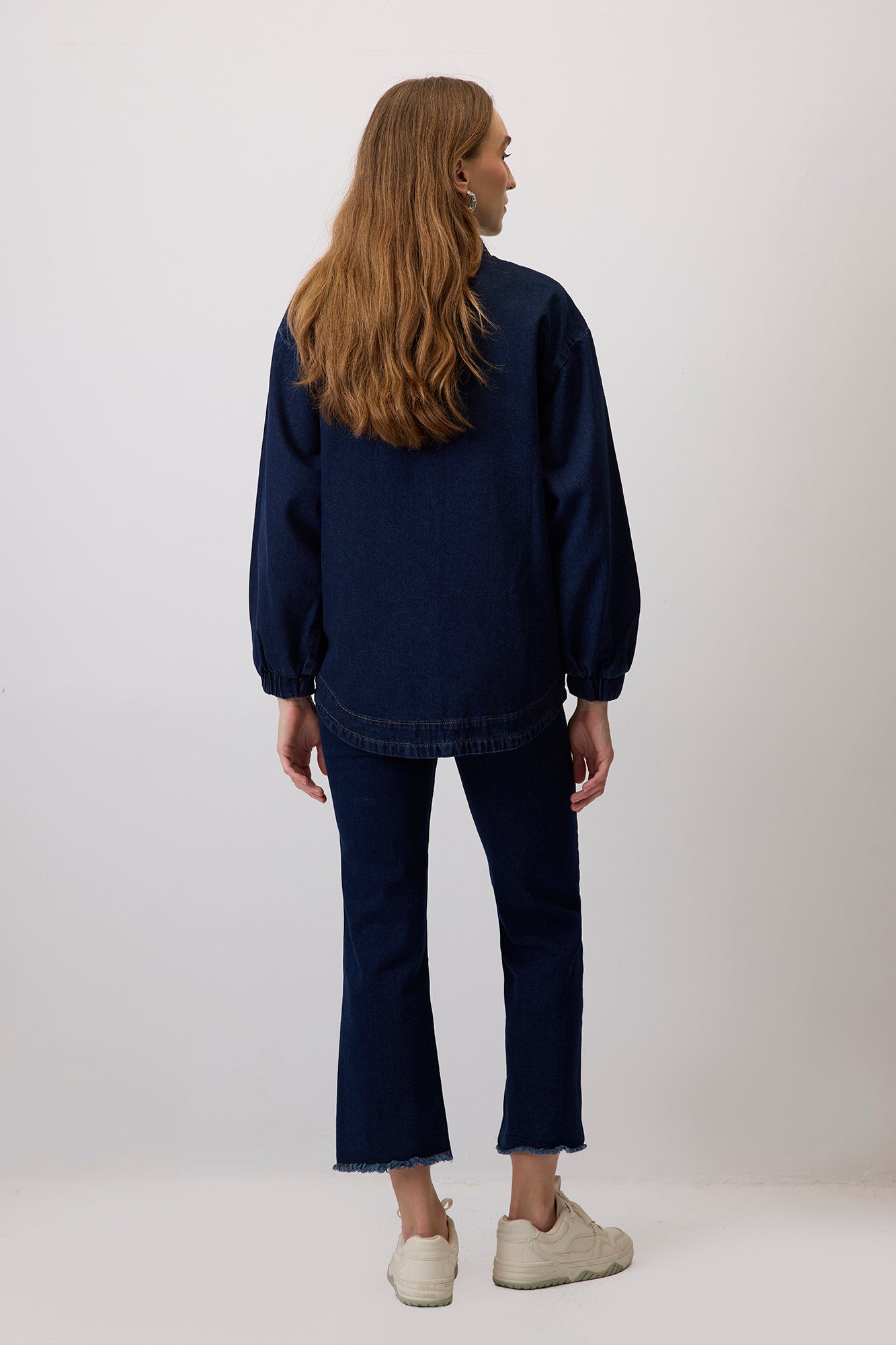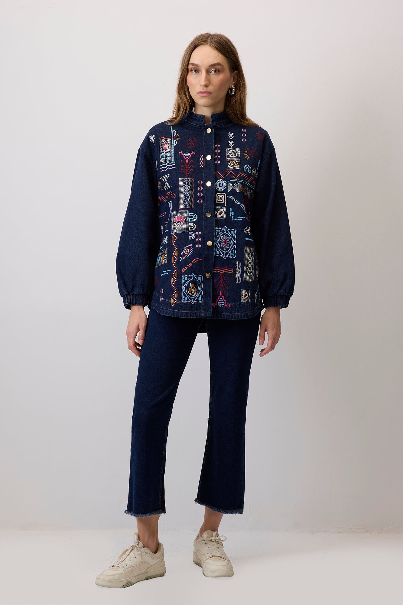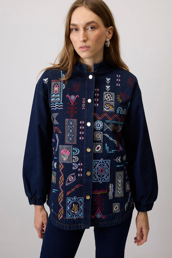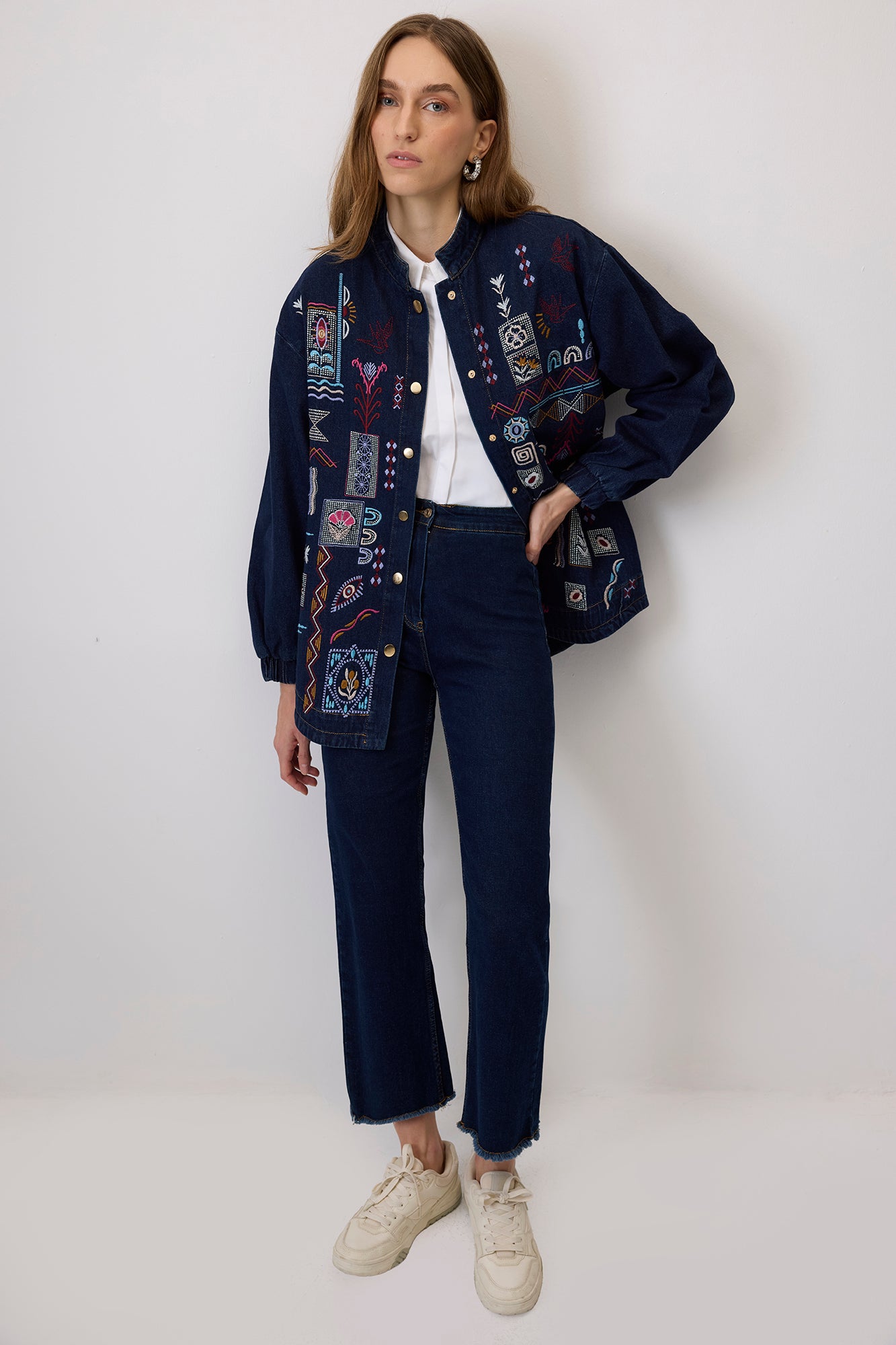 NAKIŞLI HAKİM YAKA DENİM CEKET