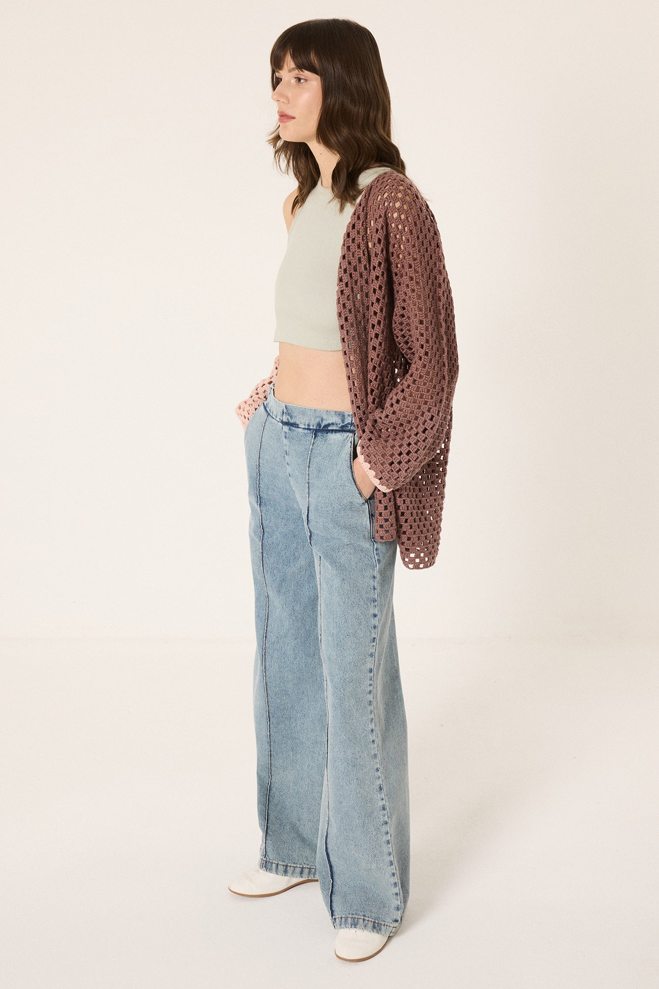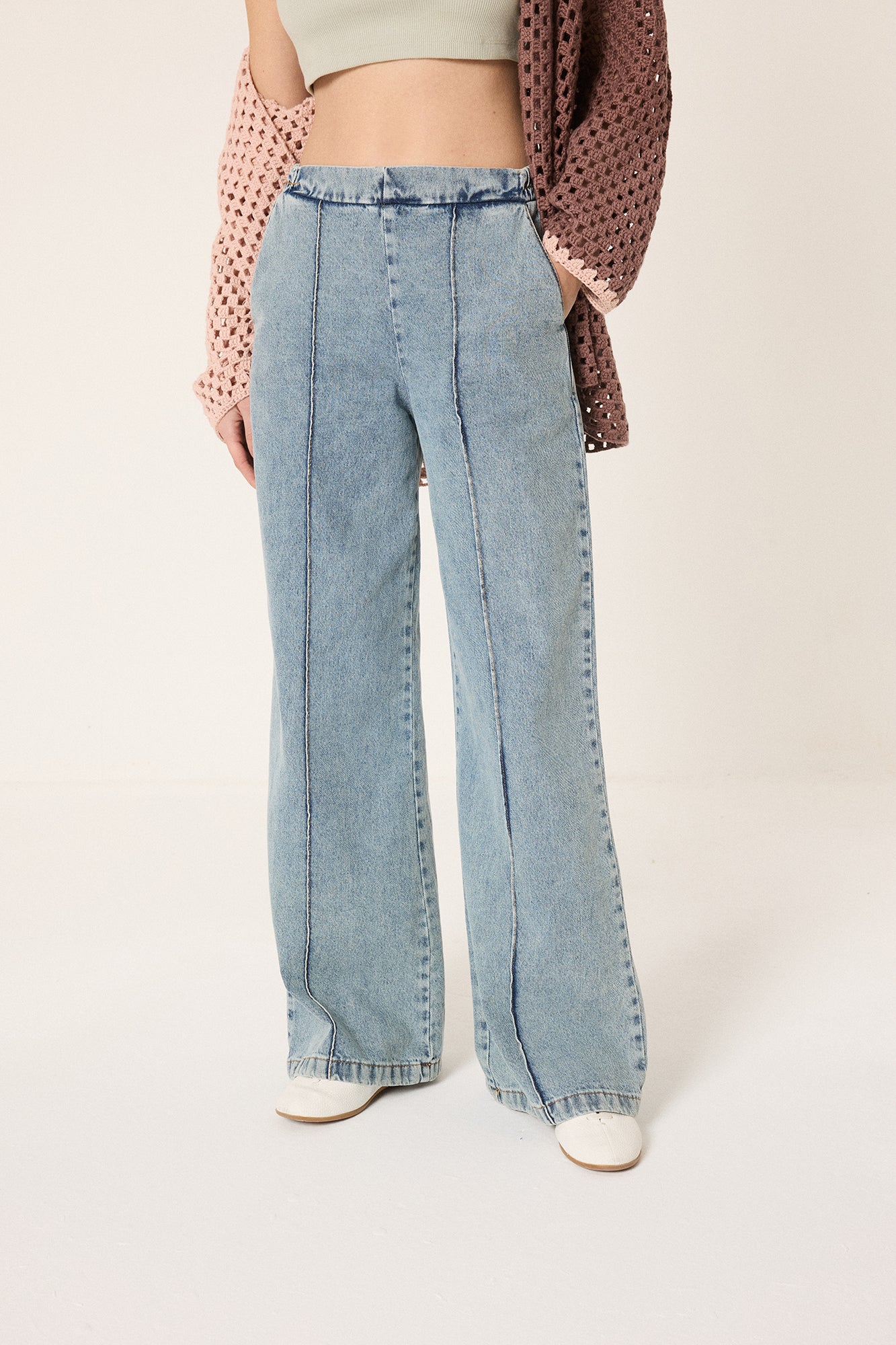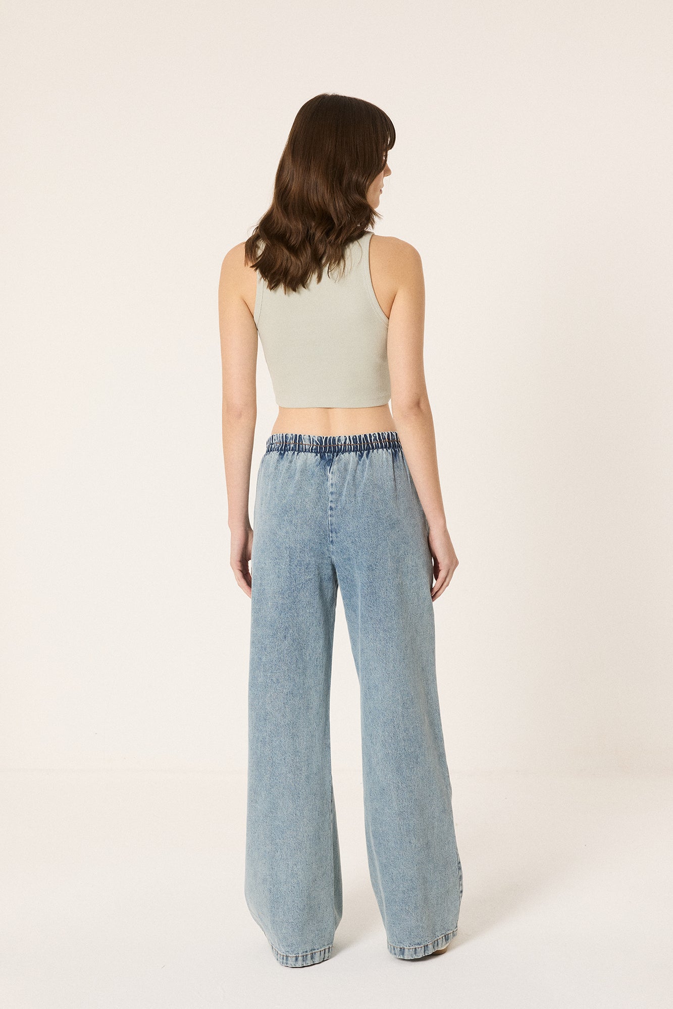Yüksek bel. İki yan cepli. Beli lastikli.