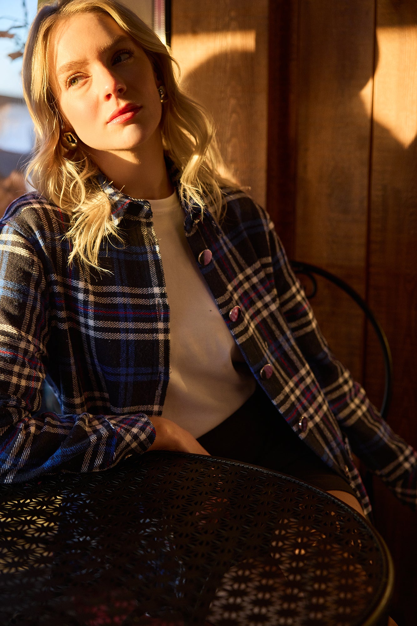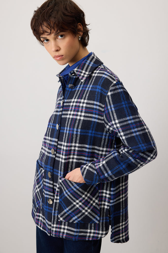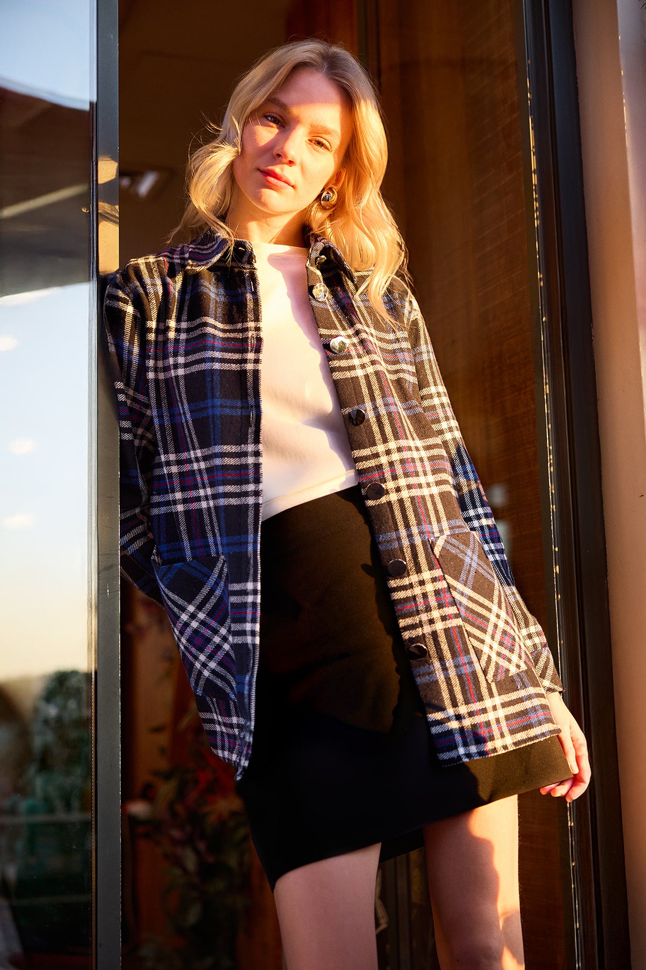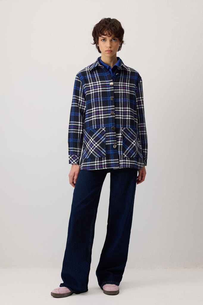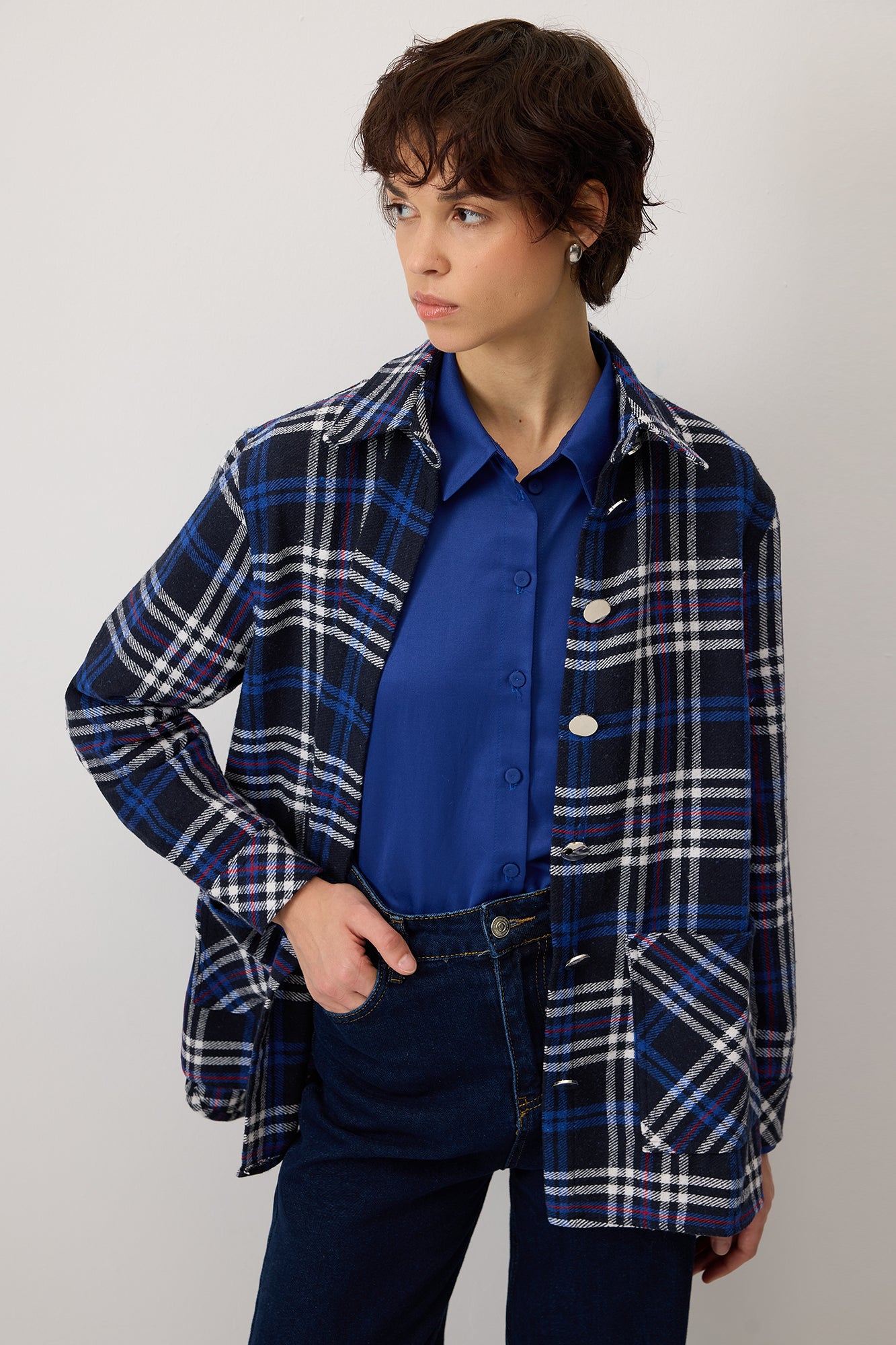 Klasik yaka. Uzun kollu. Manşetleri düğme kapamalı. Ekoseli. Yama cepli. Önden düğme kapamalı.
