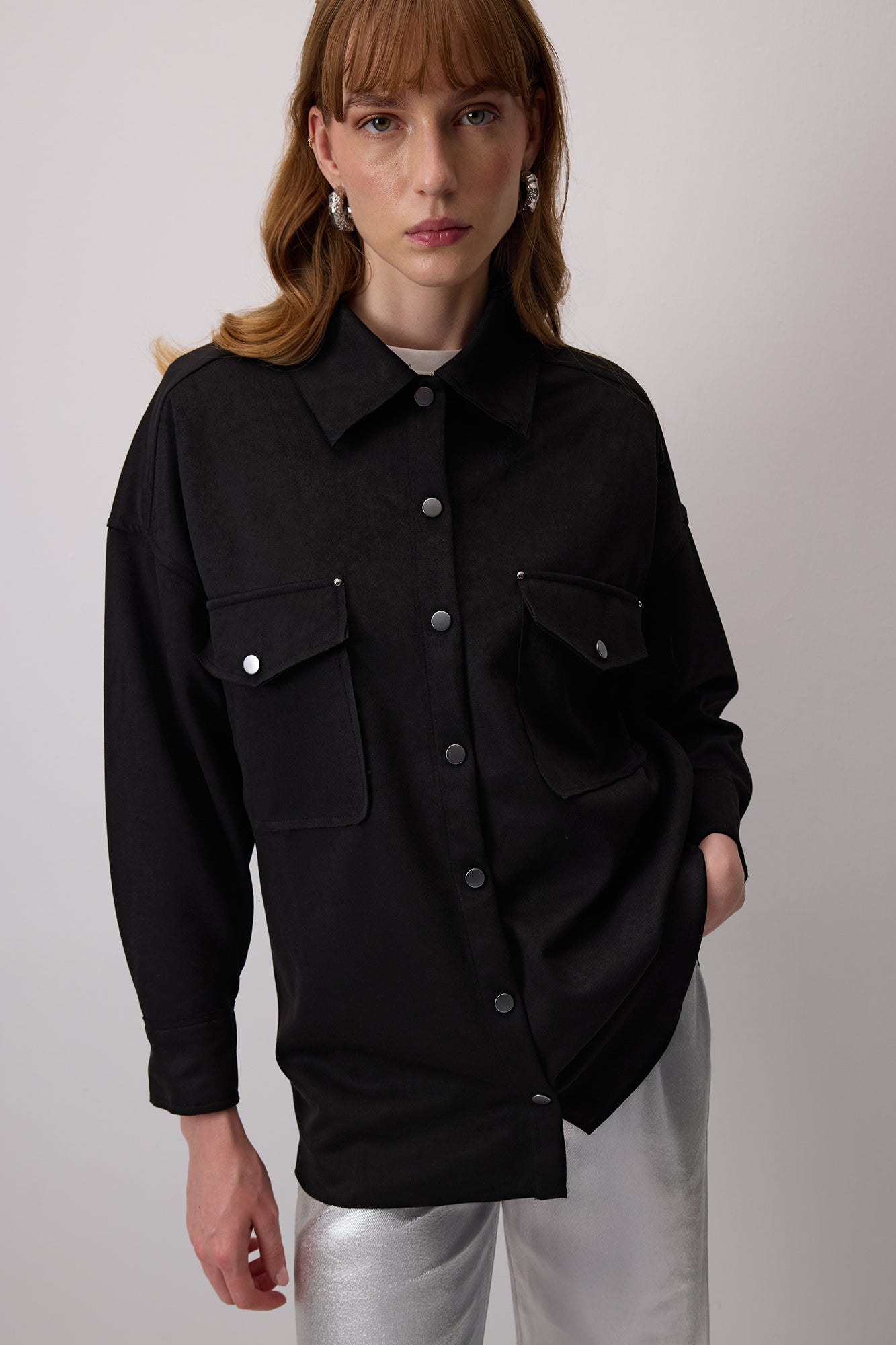 ÖNÜ CEPLİ SÜET GÖMLEK