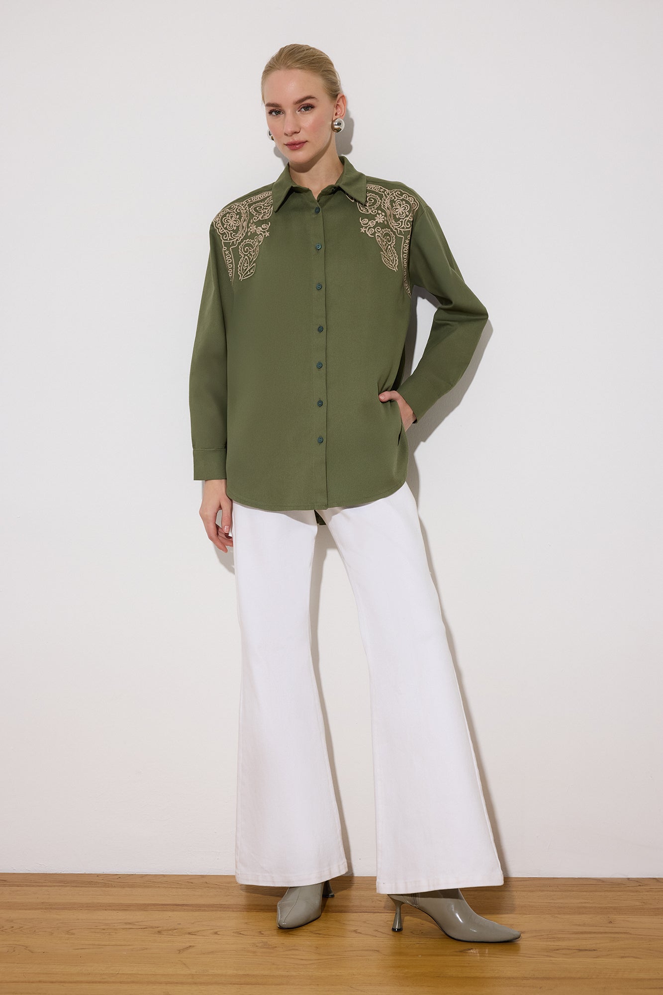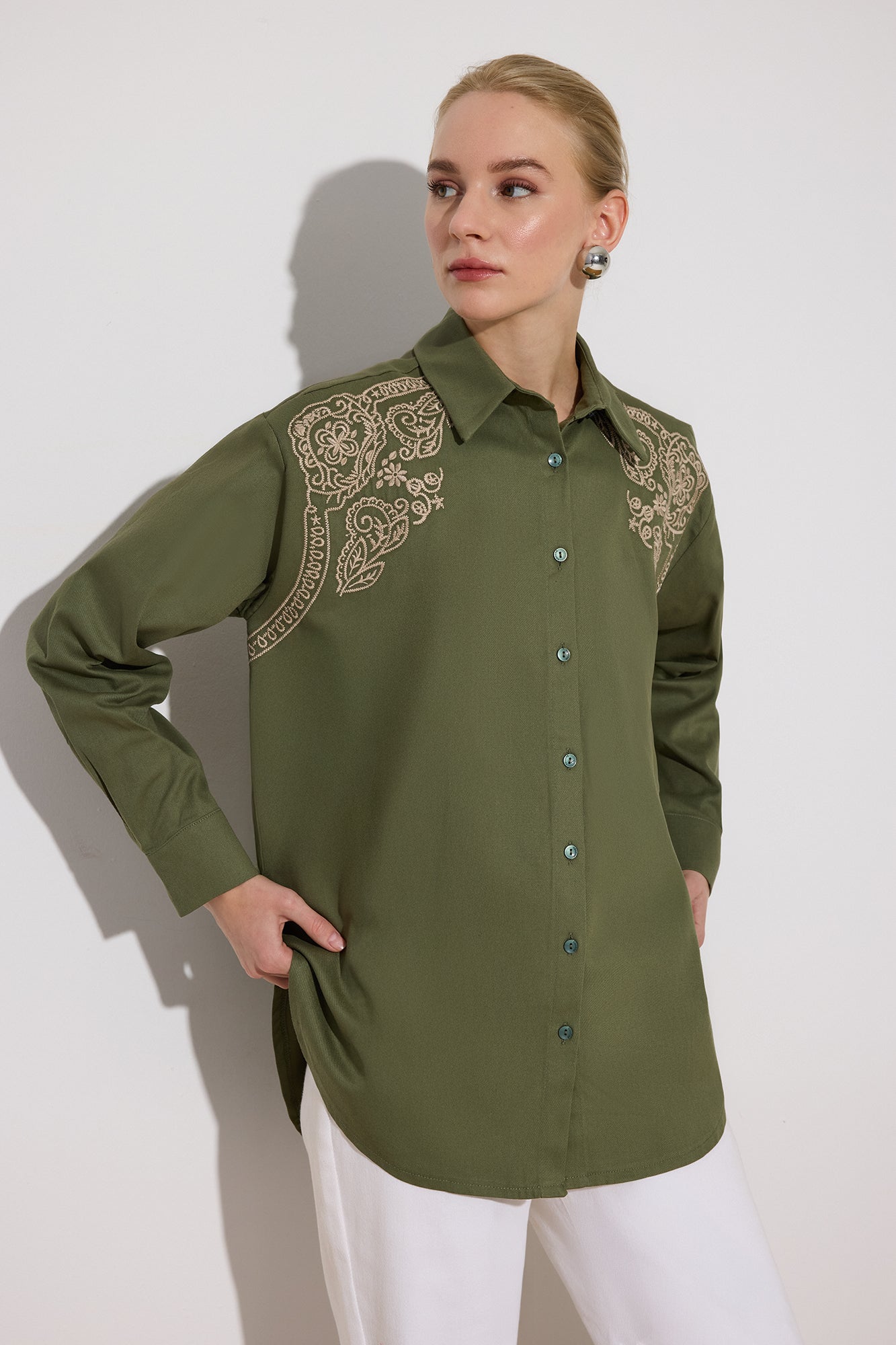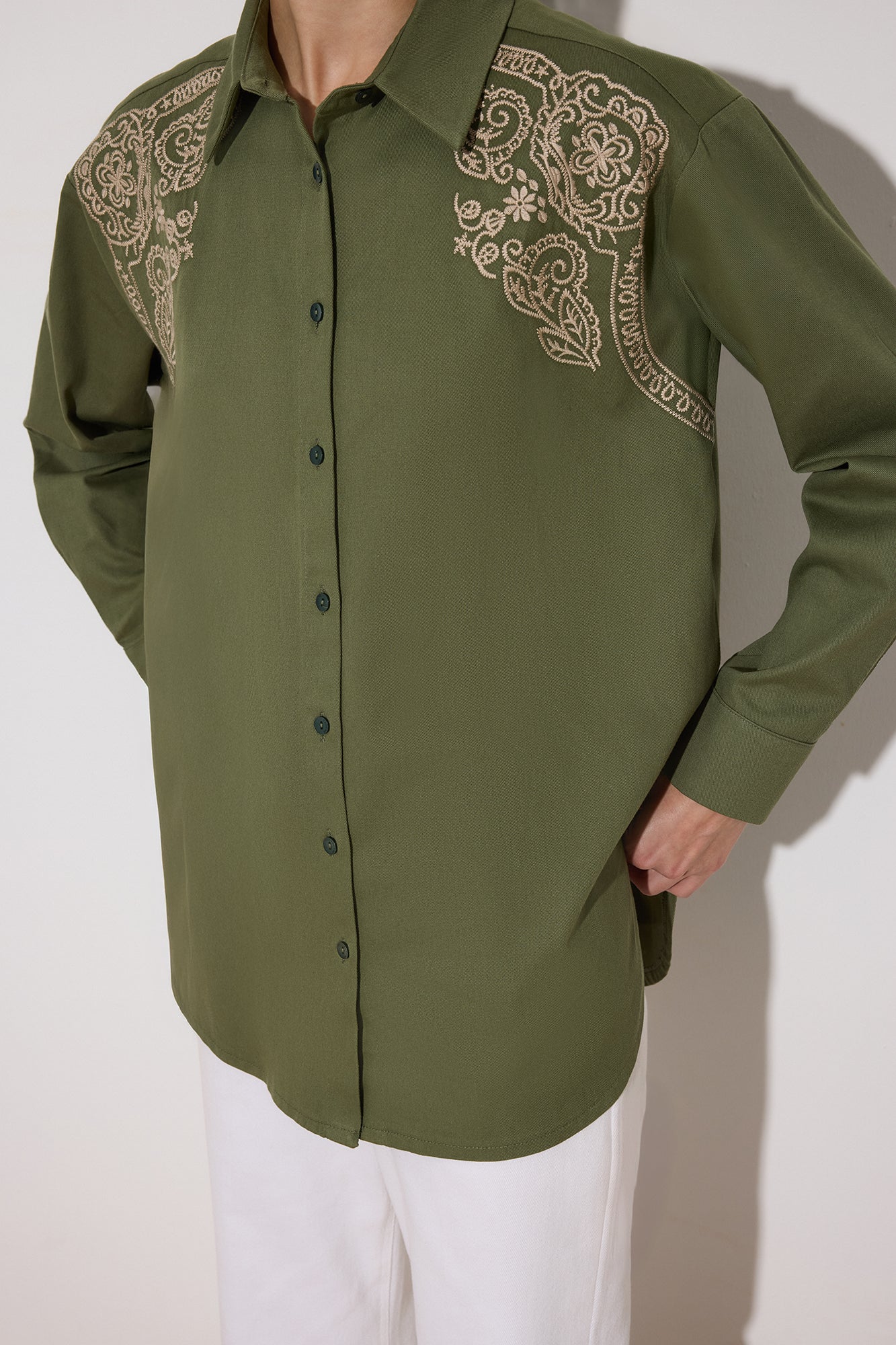 ÖNÜ NAKIŞLI OVERSIZE GÖMLEK