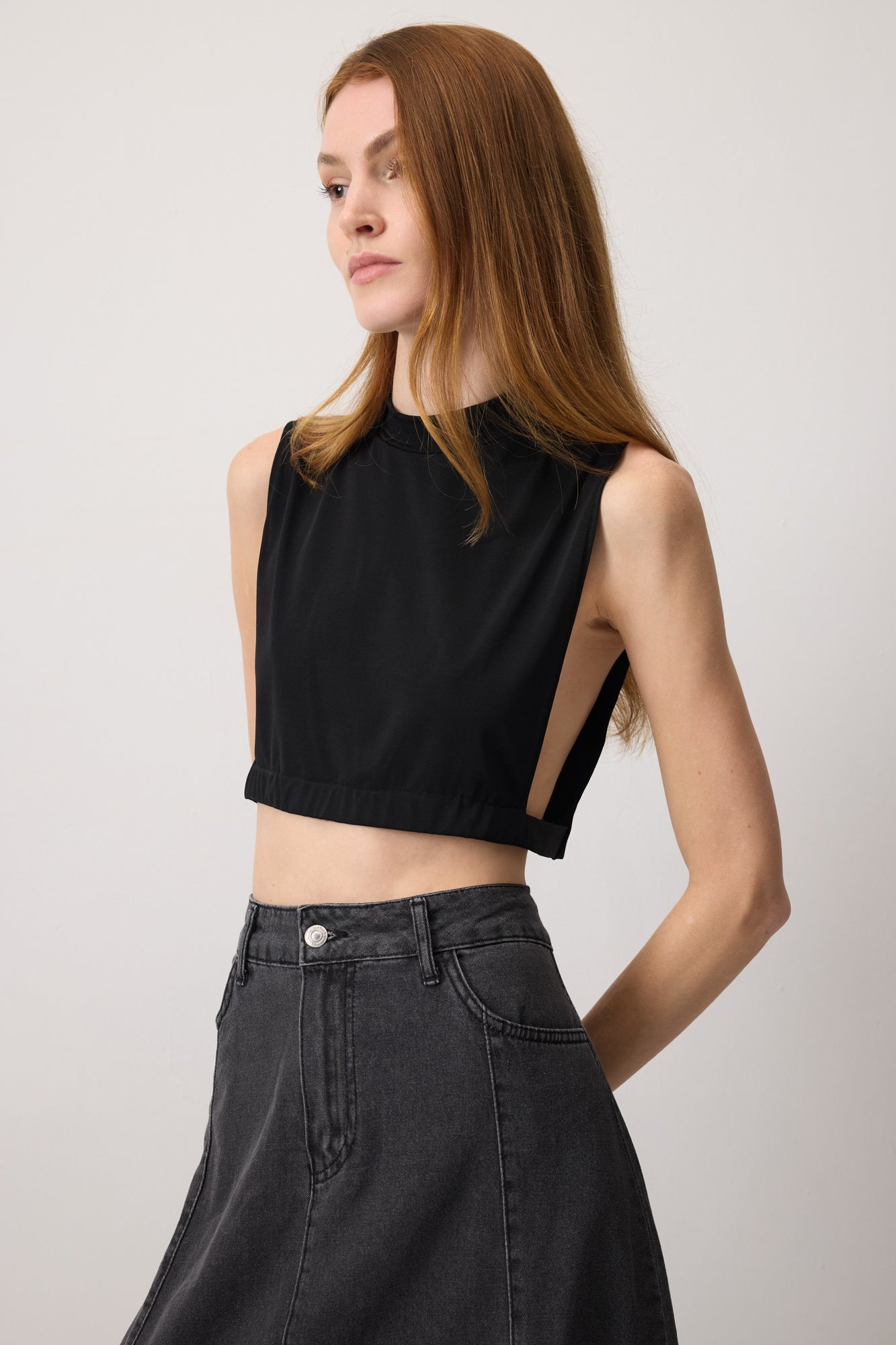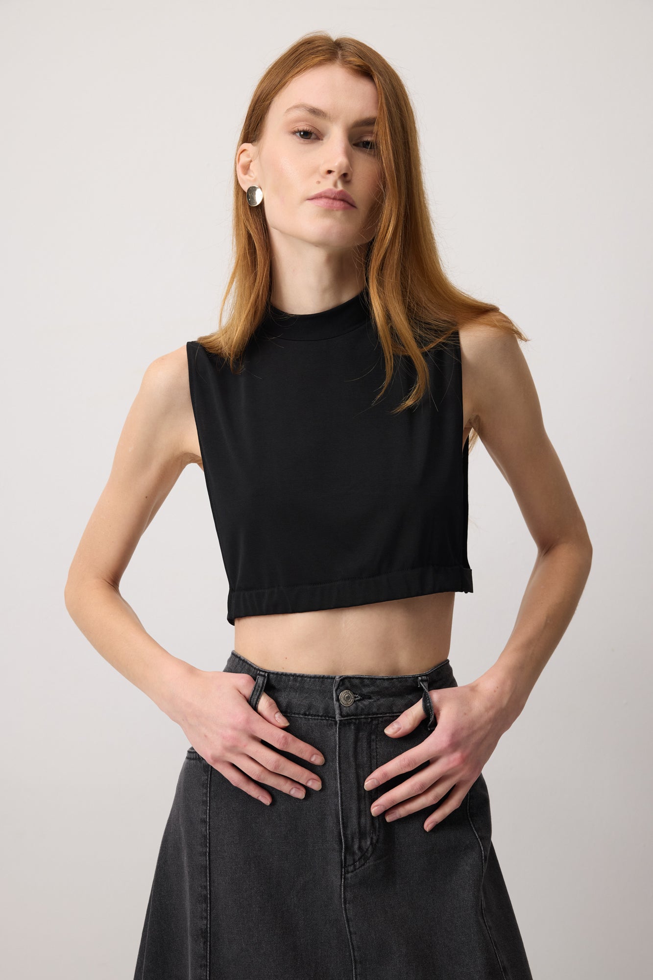 Kolsuz. Yüksek yakalı. Esnek kumaşlı.
