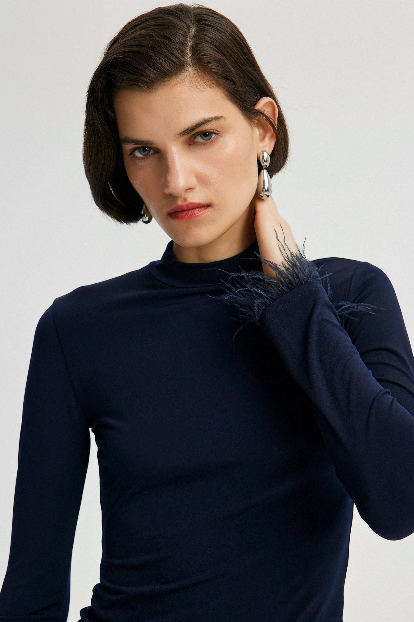 Dik yaka. Uzun kollu ve kolları otriş detaylı.