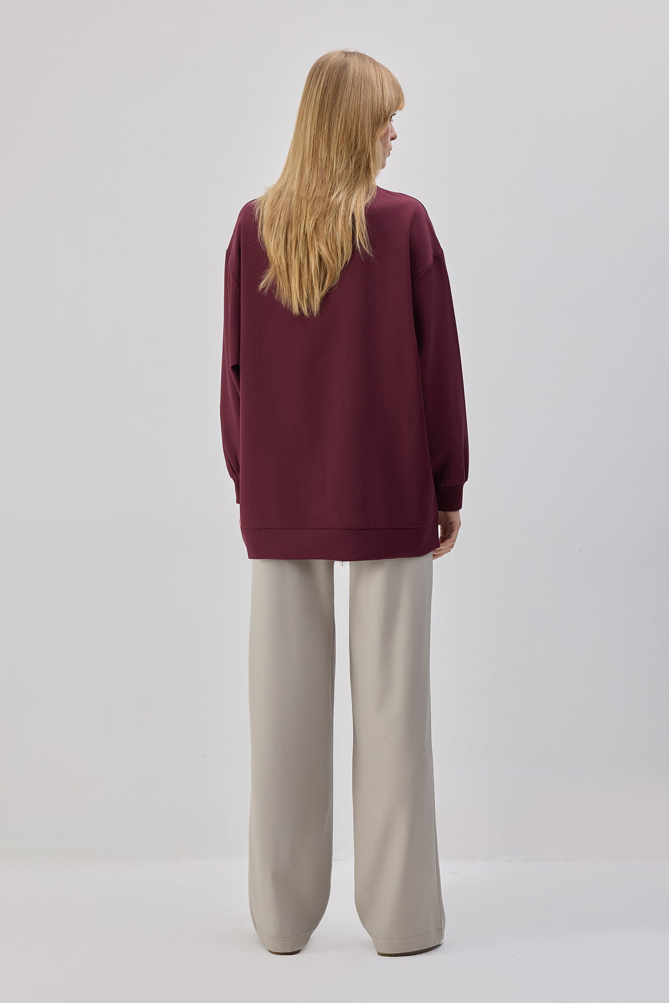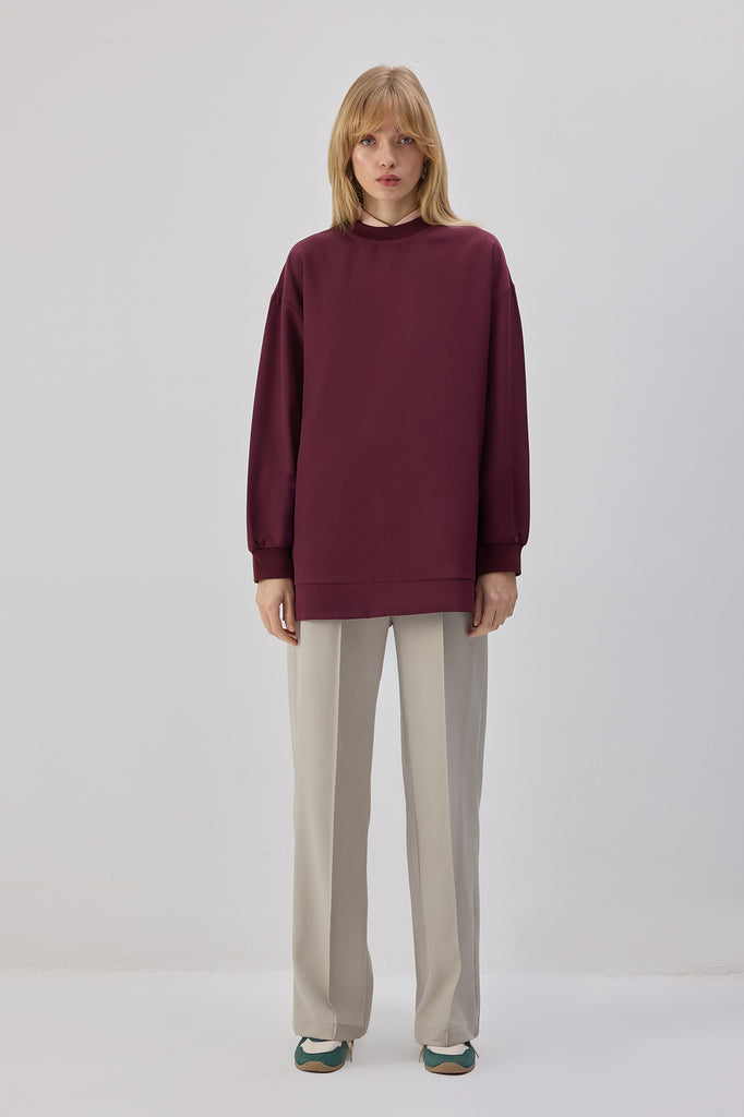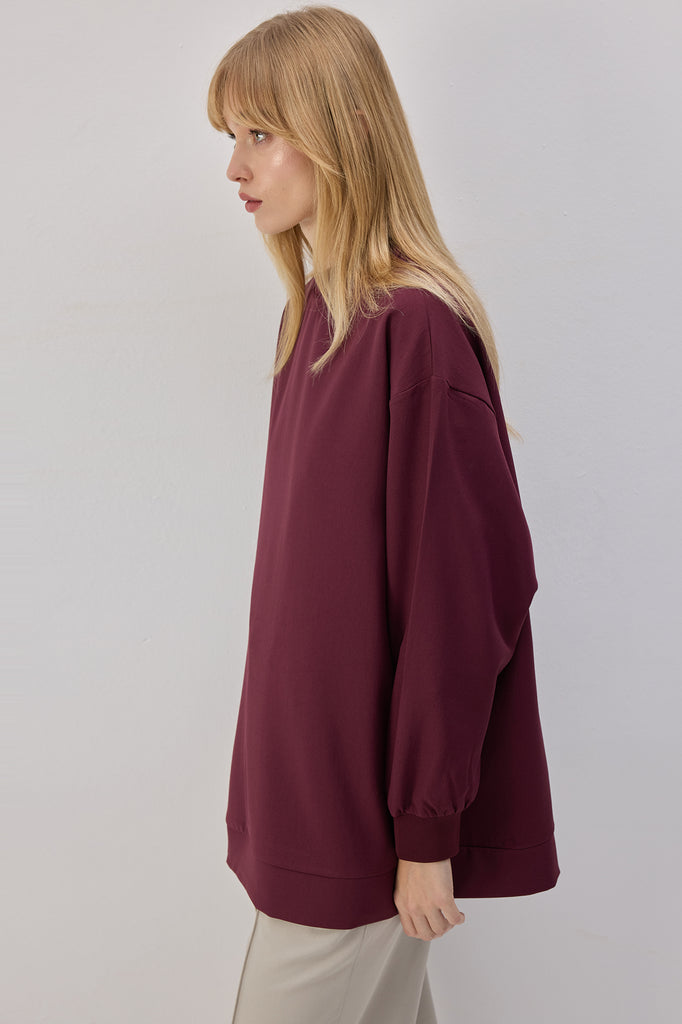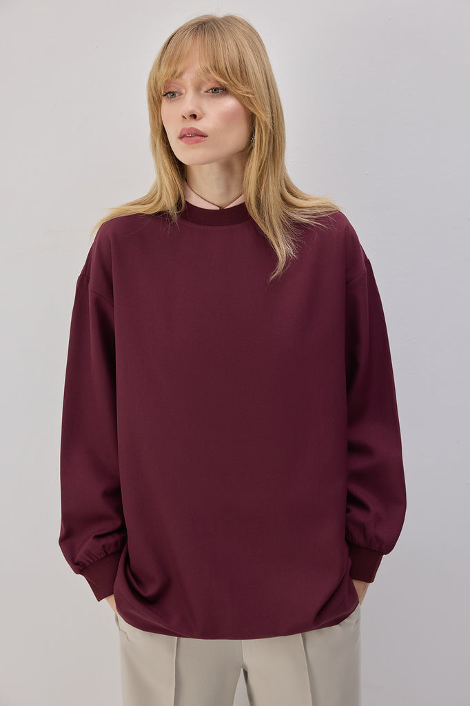 Yumuşak doku. Rahat kalıp. Bisiklet yaka. Lastik manşet. Oversıze tunik.