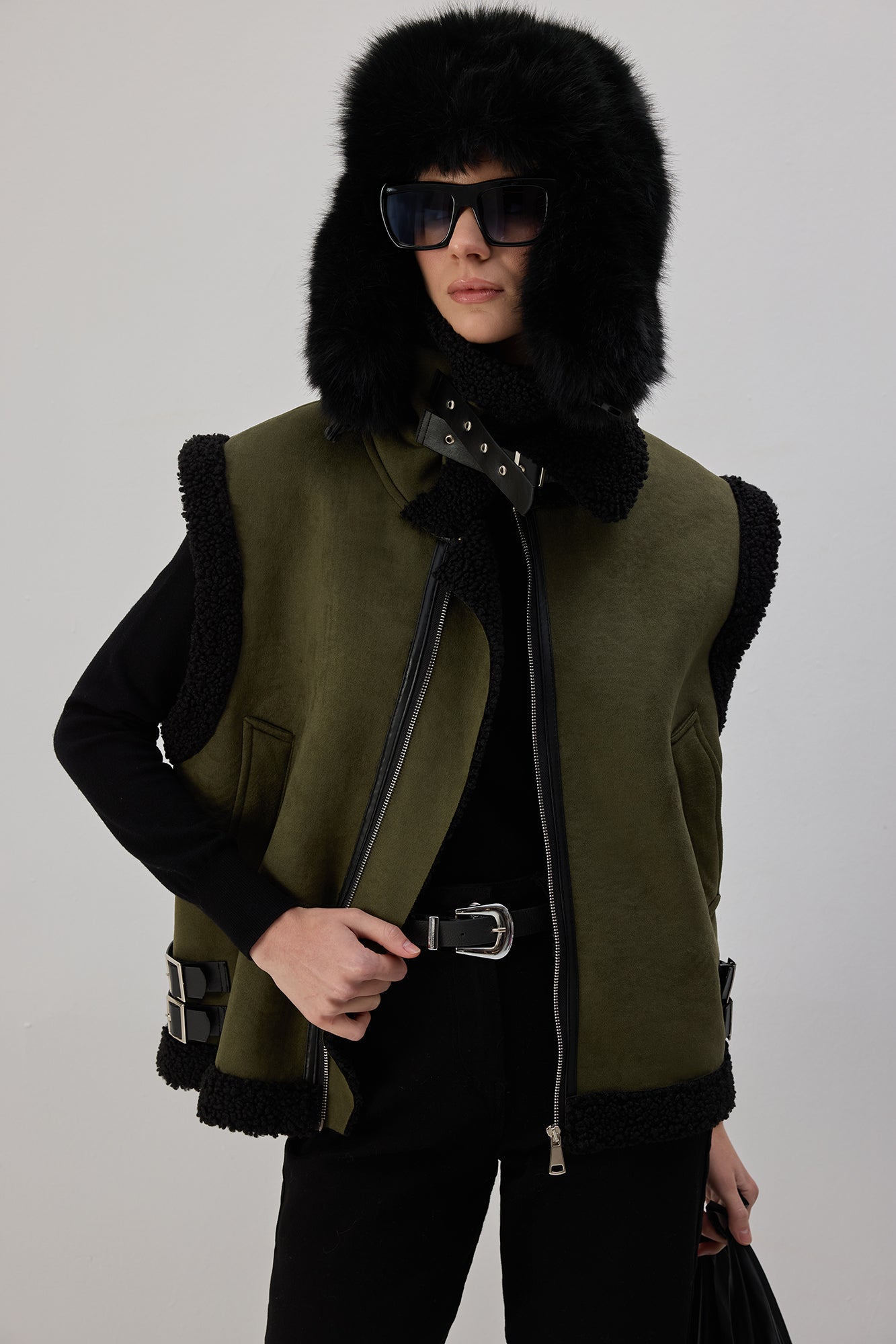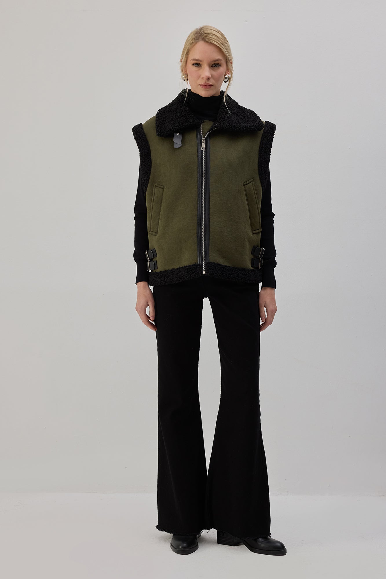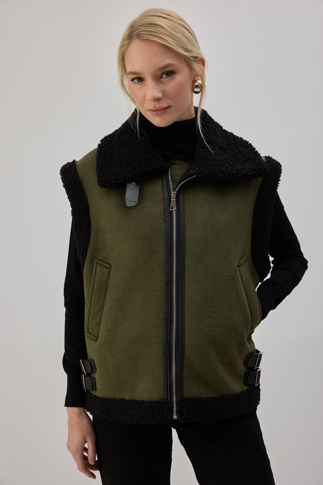 PELUŞ DETAYLI FERMUARLI YELEK