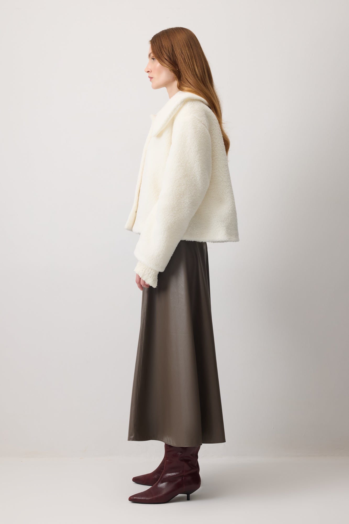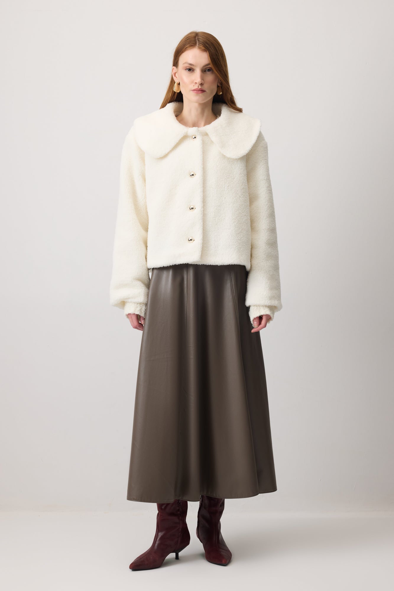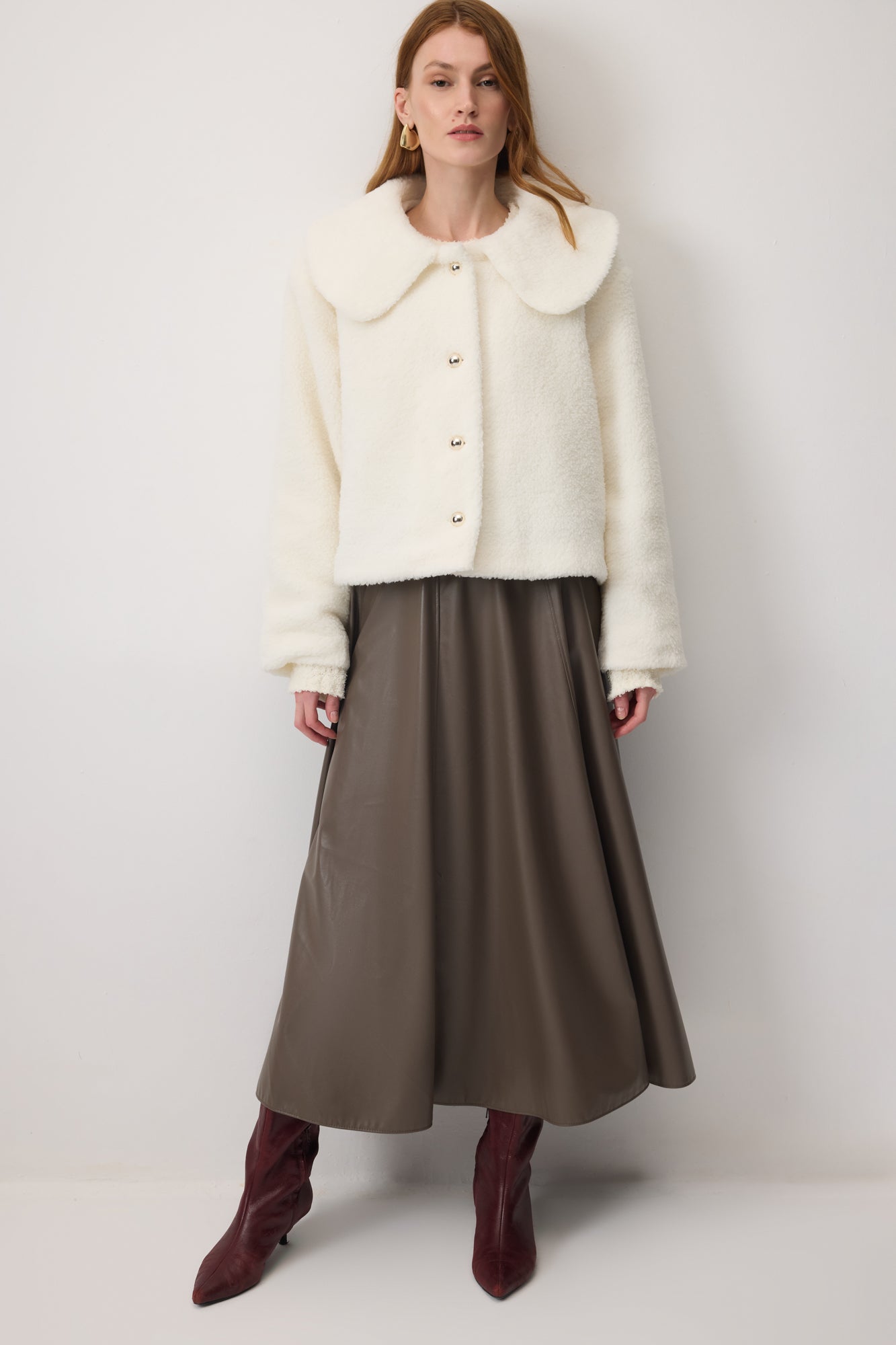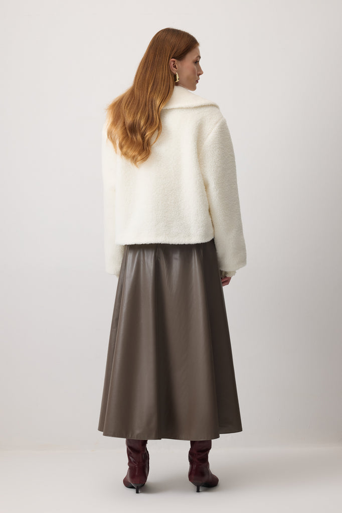 Yumuşak dokulu, teddy görünümlü kısa peluş ceket.