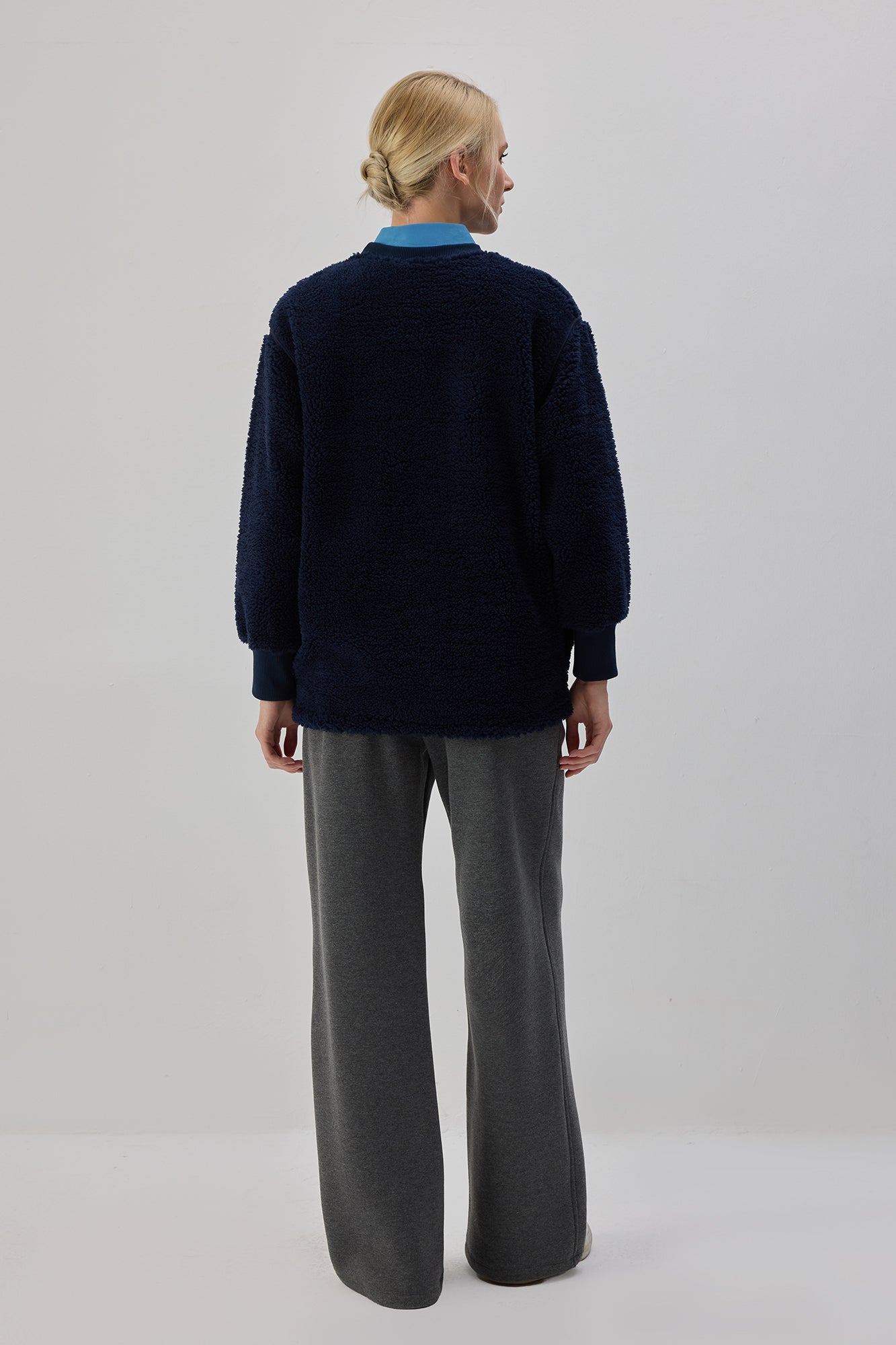 Yumuşak dokulu. Uzun kollu. Bisiklet yaka. Yan cepli. Elastik manşetli. Peluş sweatshırt.