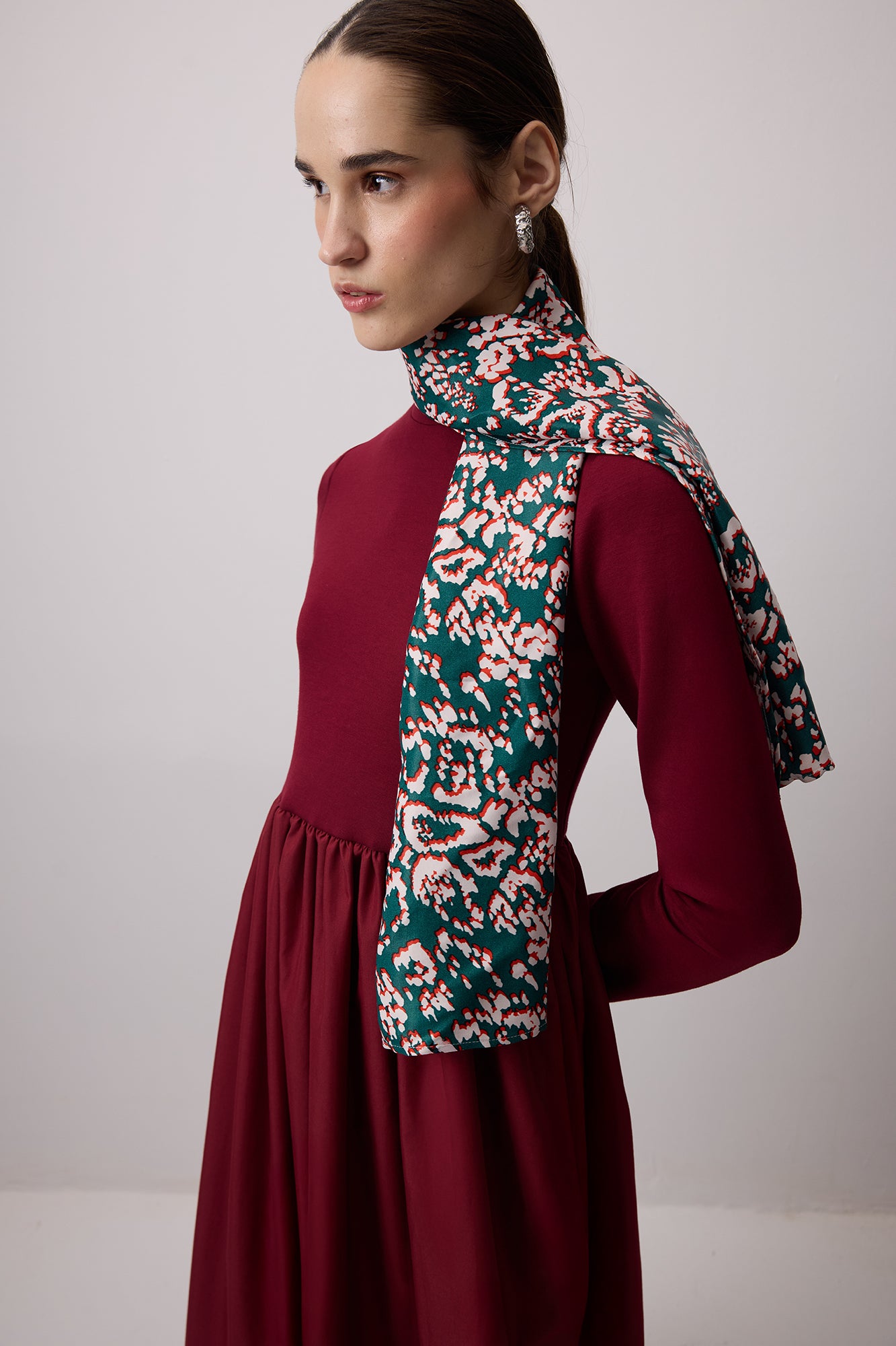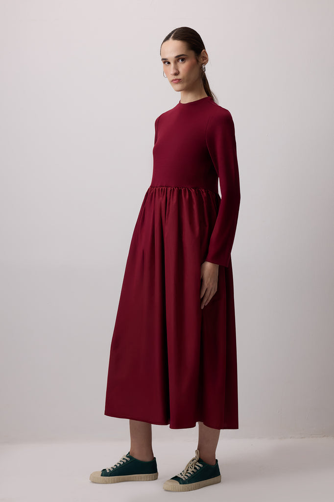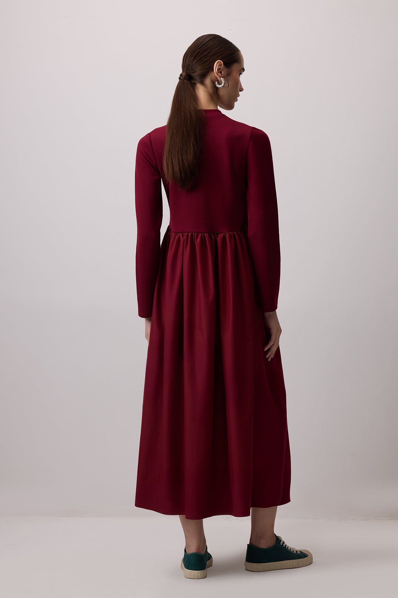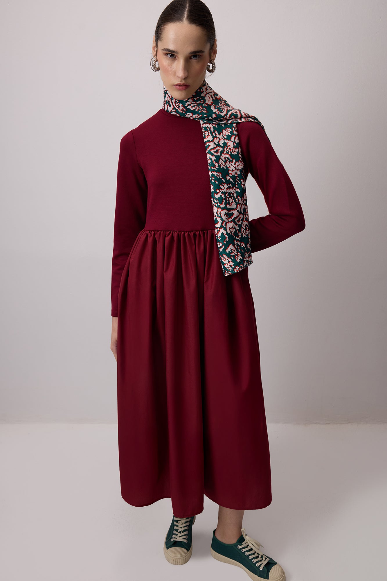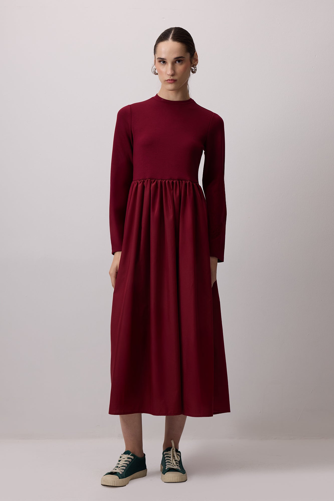 Bisiklet yaka. Uzun kol. Uzun boy elbise.