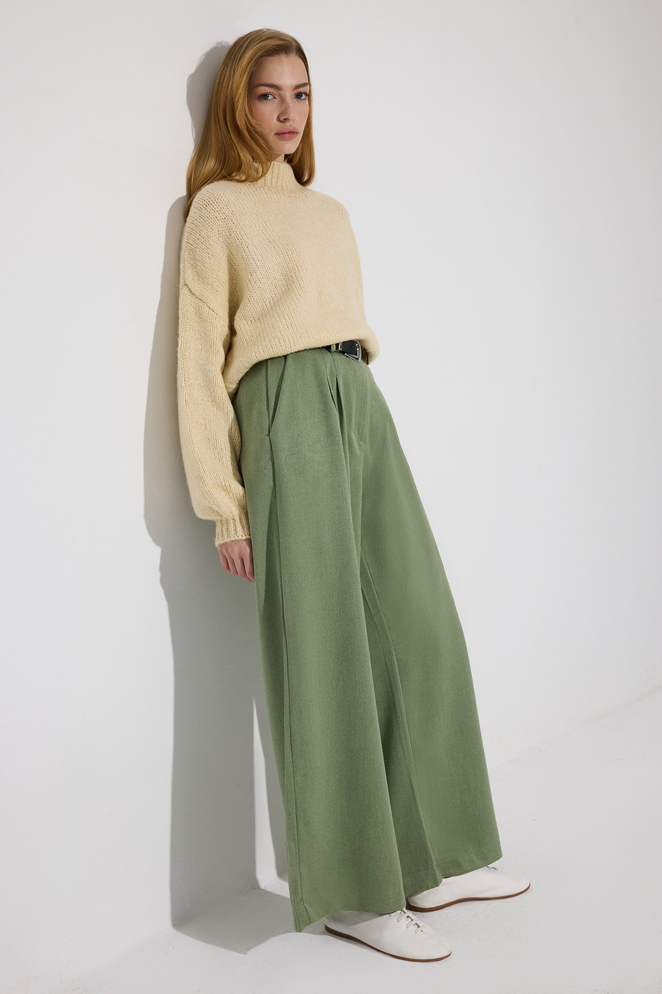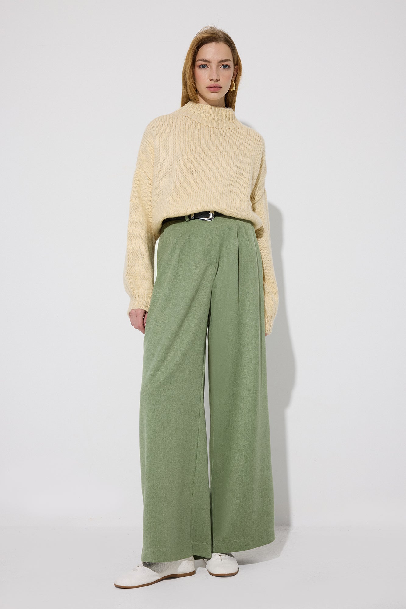Yüksek bel. Fermuar ve düğme kapamalı. Pile detaylı. Cepli.