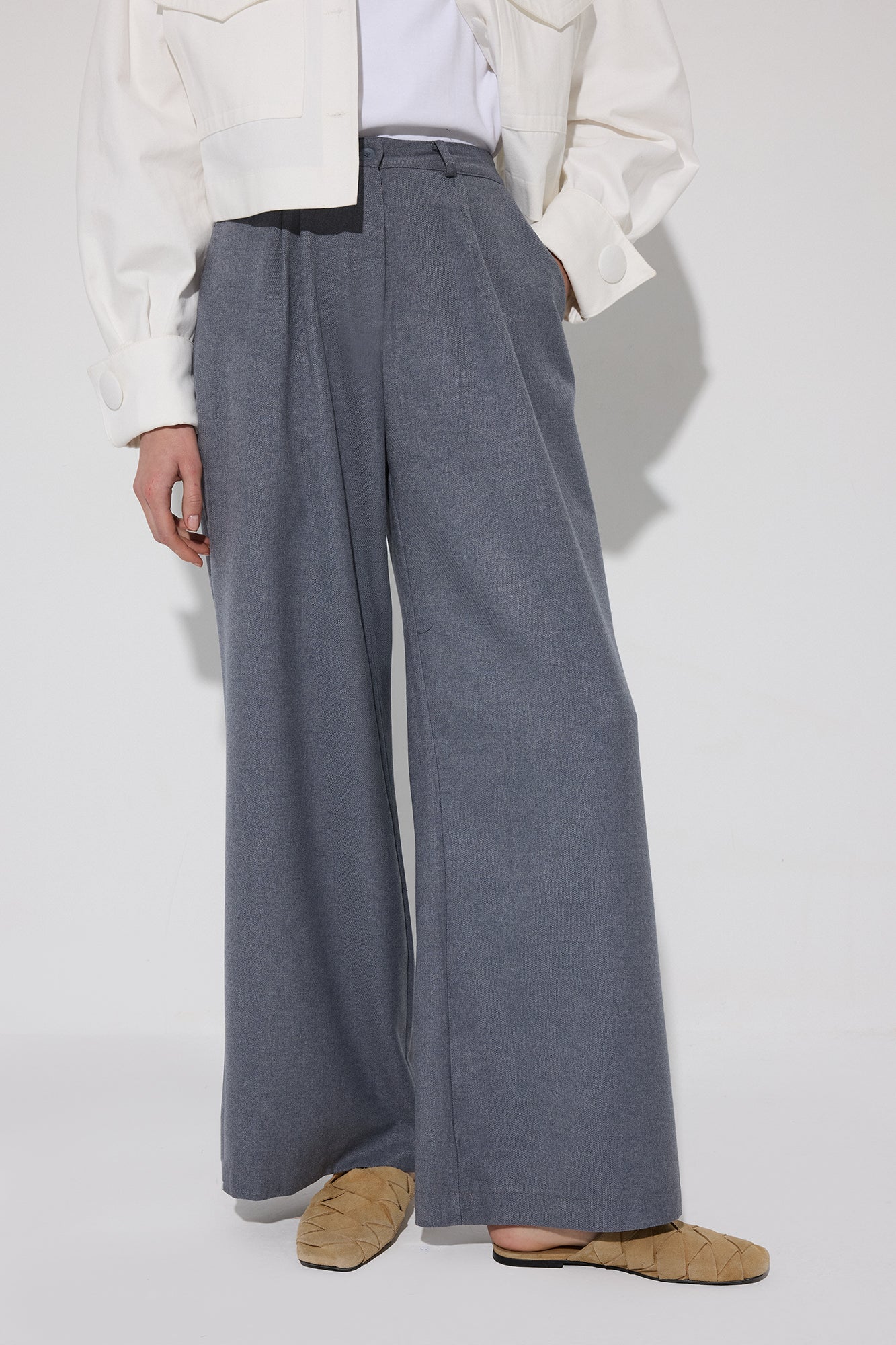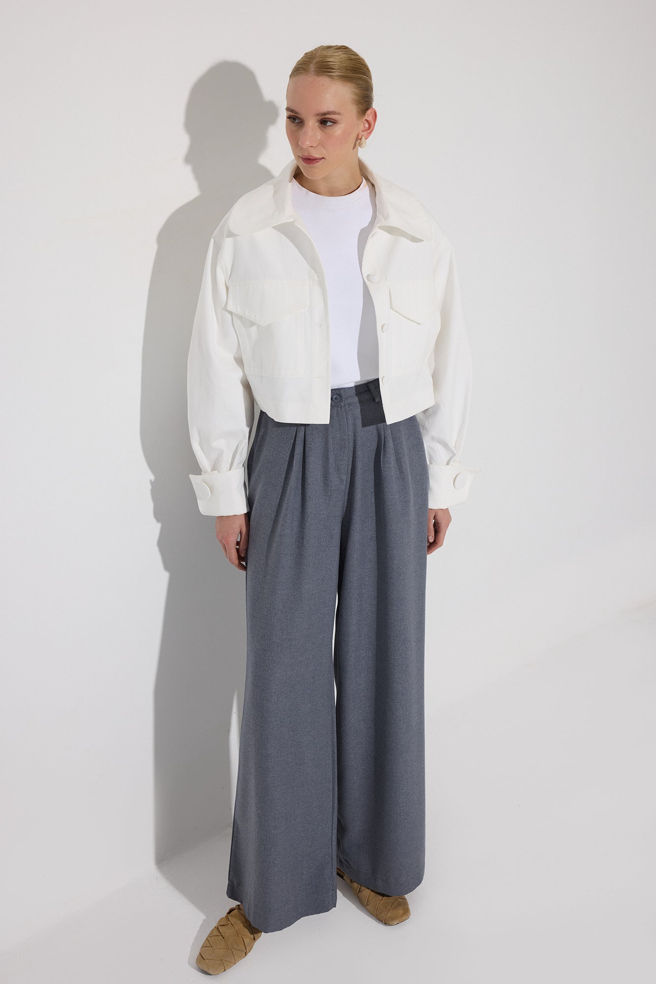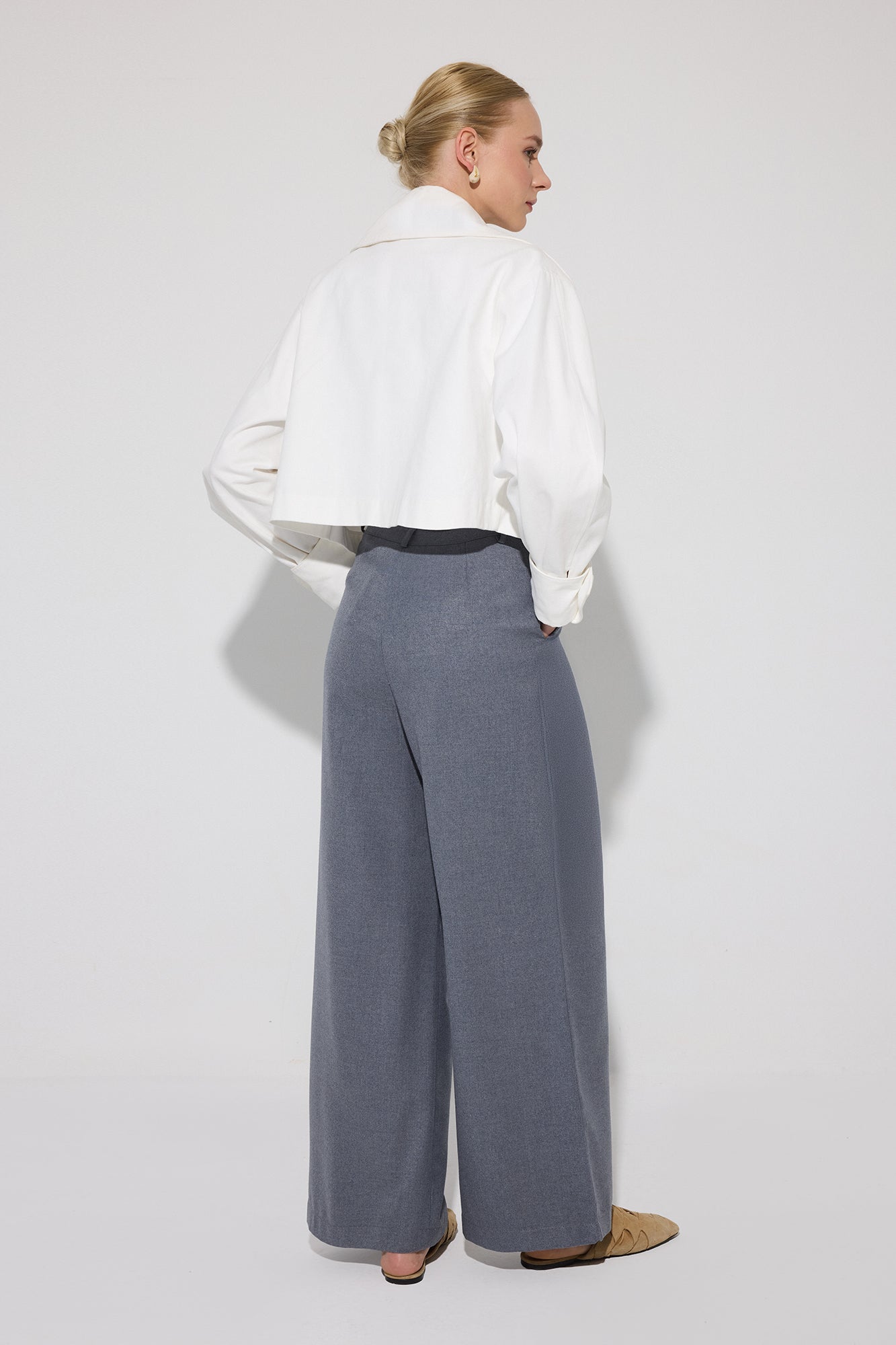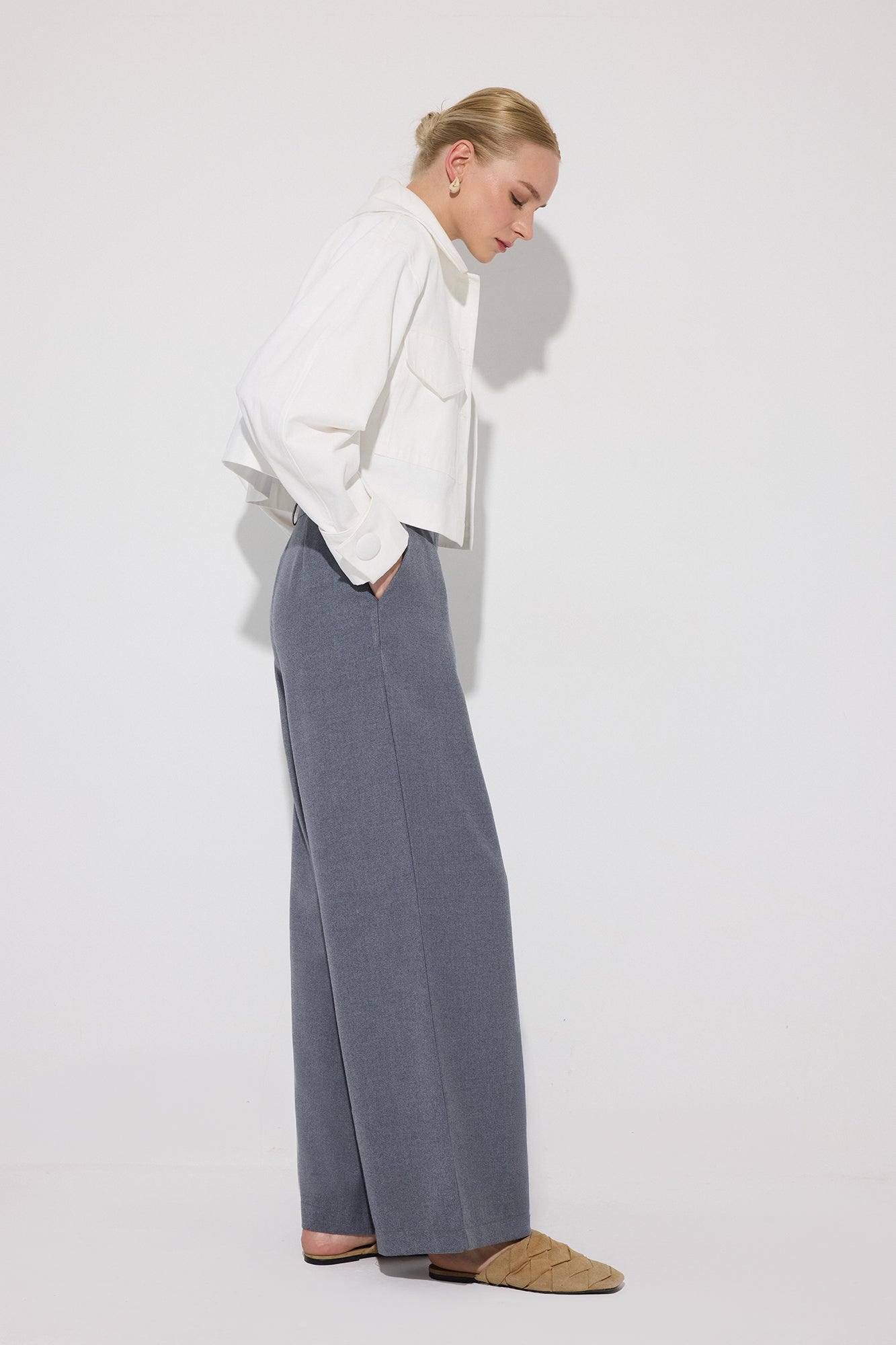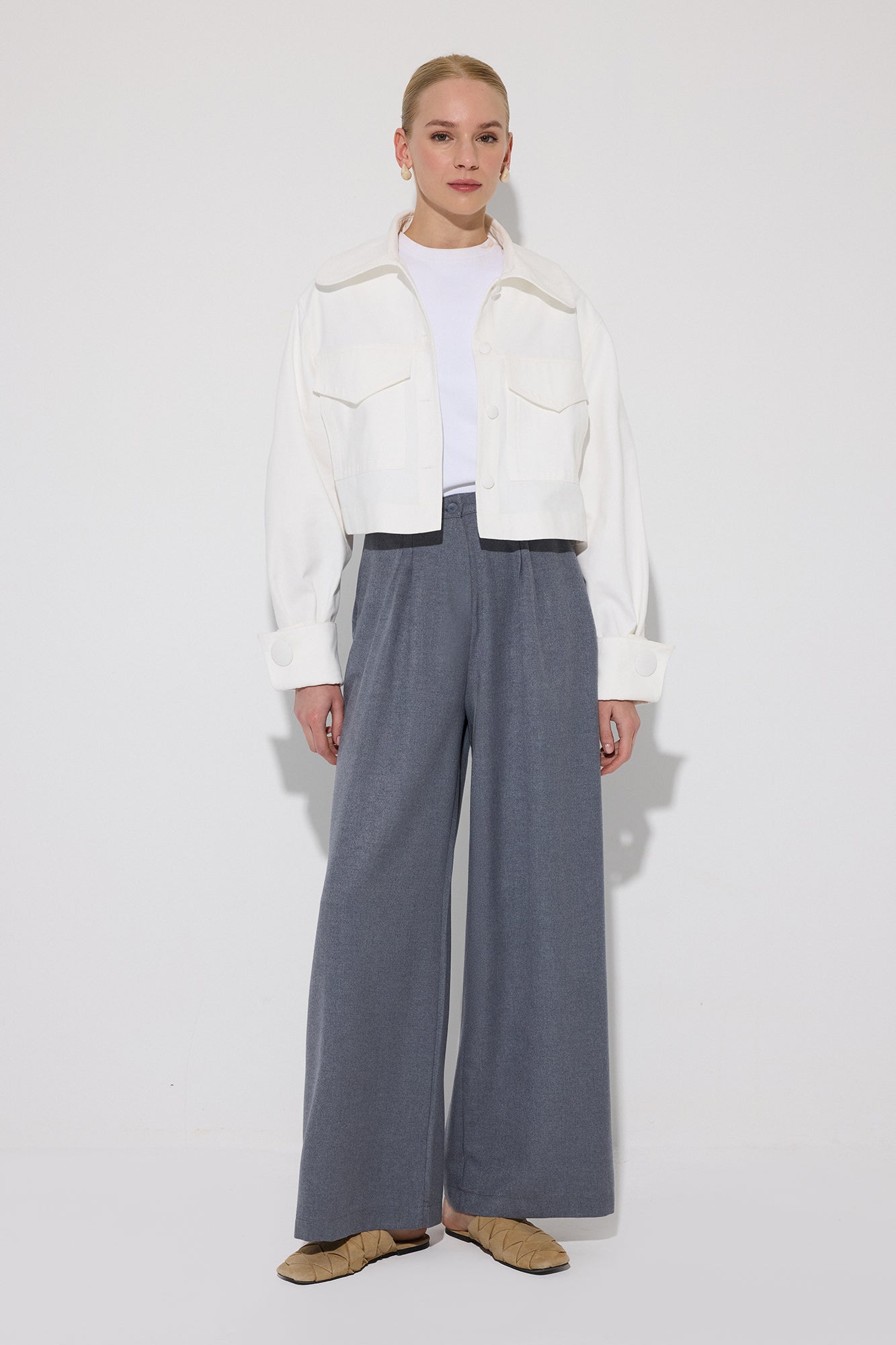 Yüksek bel. Fermuar ve düğme kapamalı. Pile detaylı. Cepli.