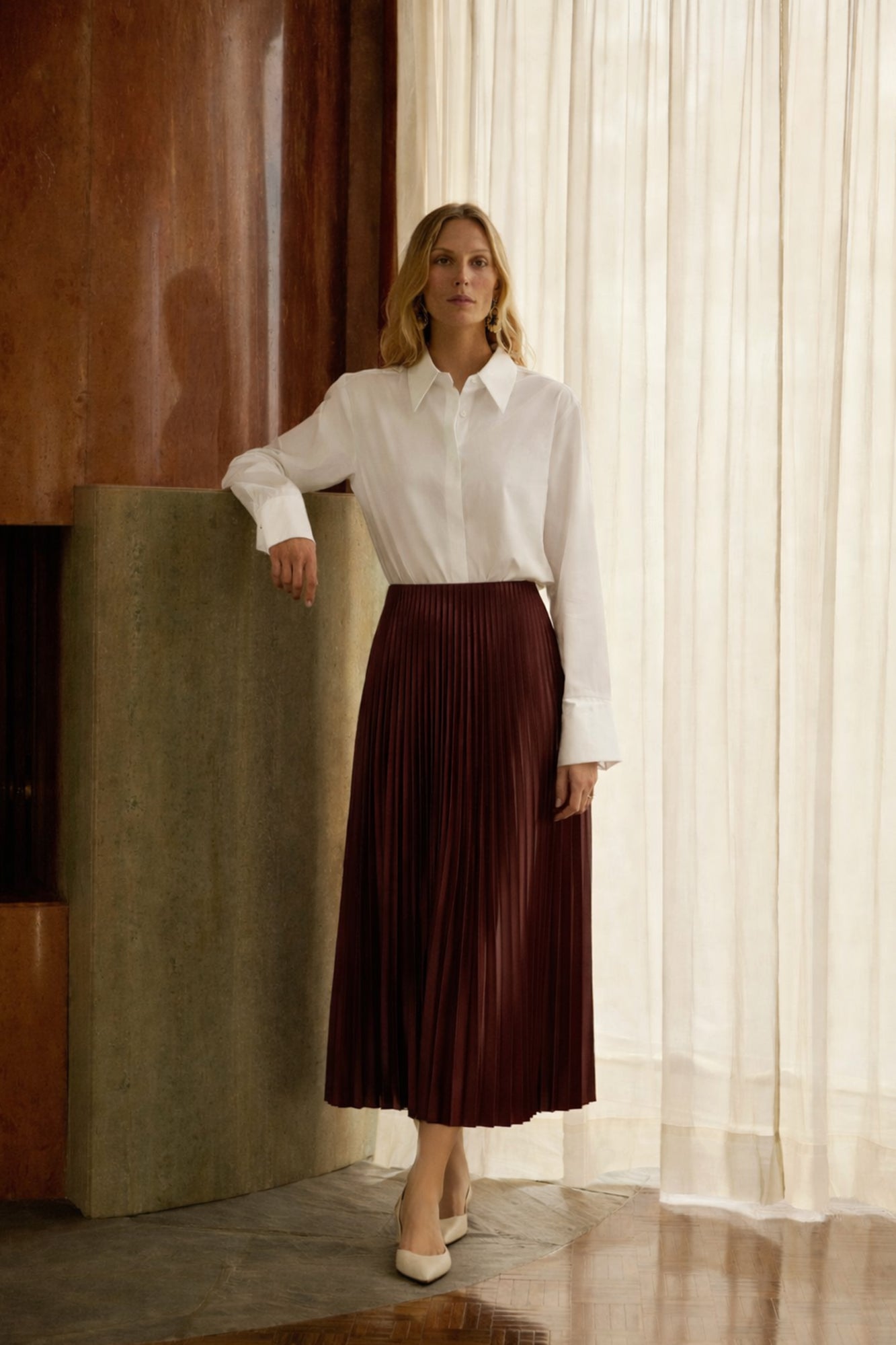 Zarif ve akışkan tasarımıyla dikkat çeken bu pileli etek, klasik ve modern stilin mükemmel birleşimini sunuyor. Hafif ve dökümlü kumaşı sayesinde rahat bir kullanım sağlarken, pile detayları eteğe dinamik bir hareket katıyor. Bel kısmındaki esnek yapısı ile konfor sunan bu parça, hem günlük hem de özel gün kombinlerine kolayca uyarlanabilir. Şık bir görünüm için topuklu ayakkabılar ve gömleklerle tamamlanabilirken, spor bir stil için sneaker ve oversize kazaklarla kombinlenebilir. Zamansız ve şık bir parça arayanlar için ideal bir seçim!