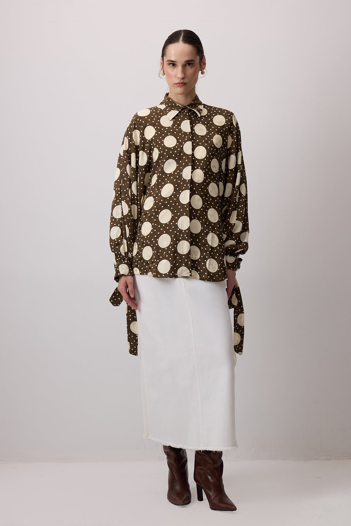 PUANTİYE DESENLİ BALON KOL GÖMLEK