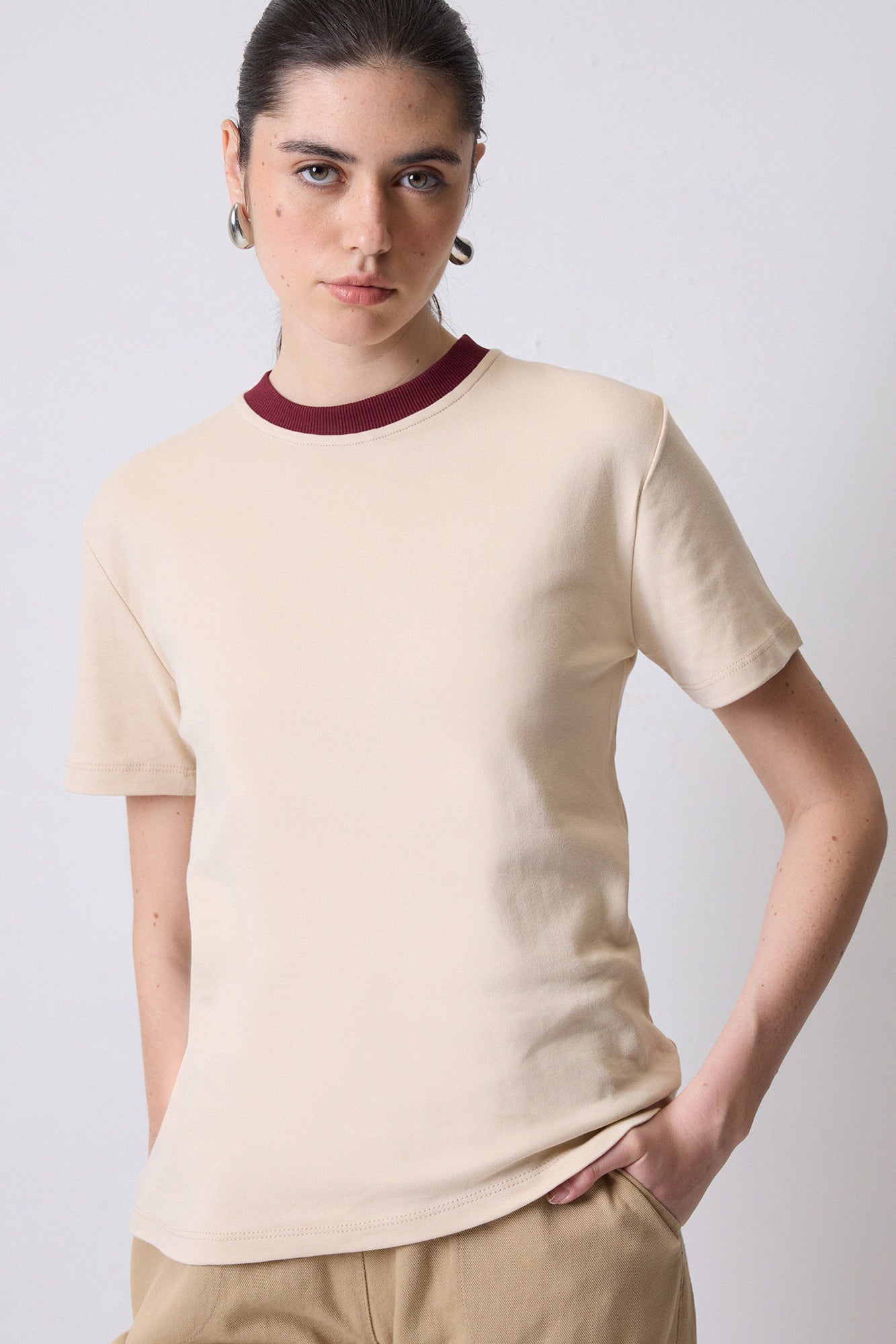 %100 PAMUKLU RİBANA YAKA KISA KOLLU T-SHIRT