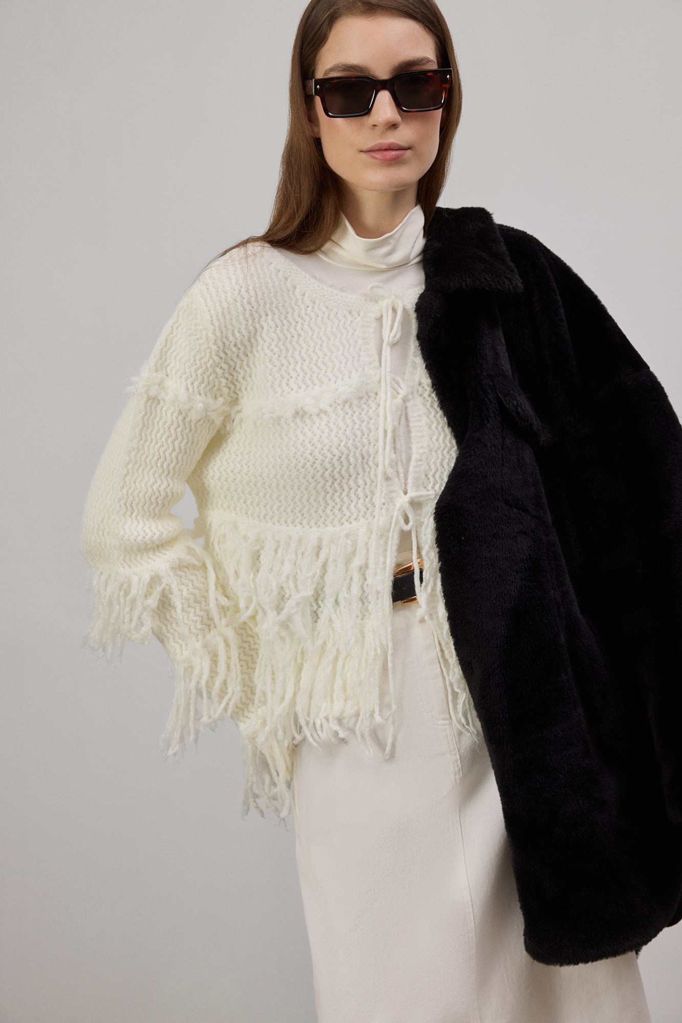 Bohem ruhu, doğal dokular ve karakterli tasarımlar sevenler için özel bir triko hırka.
