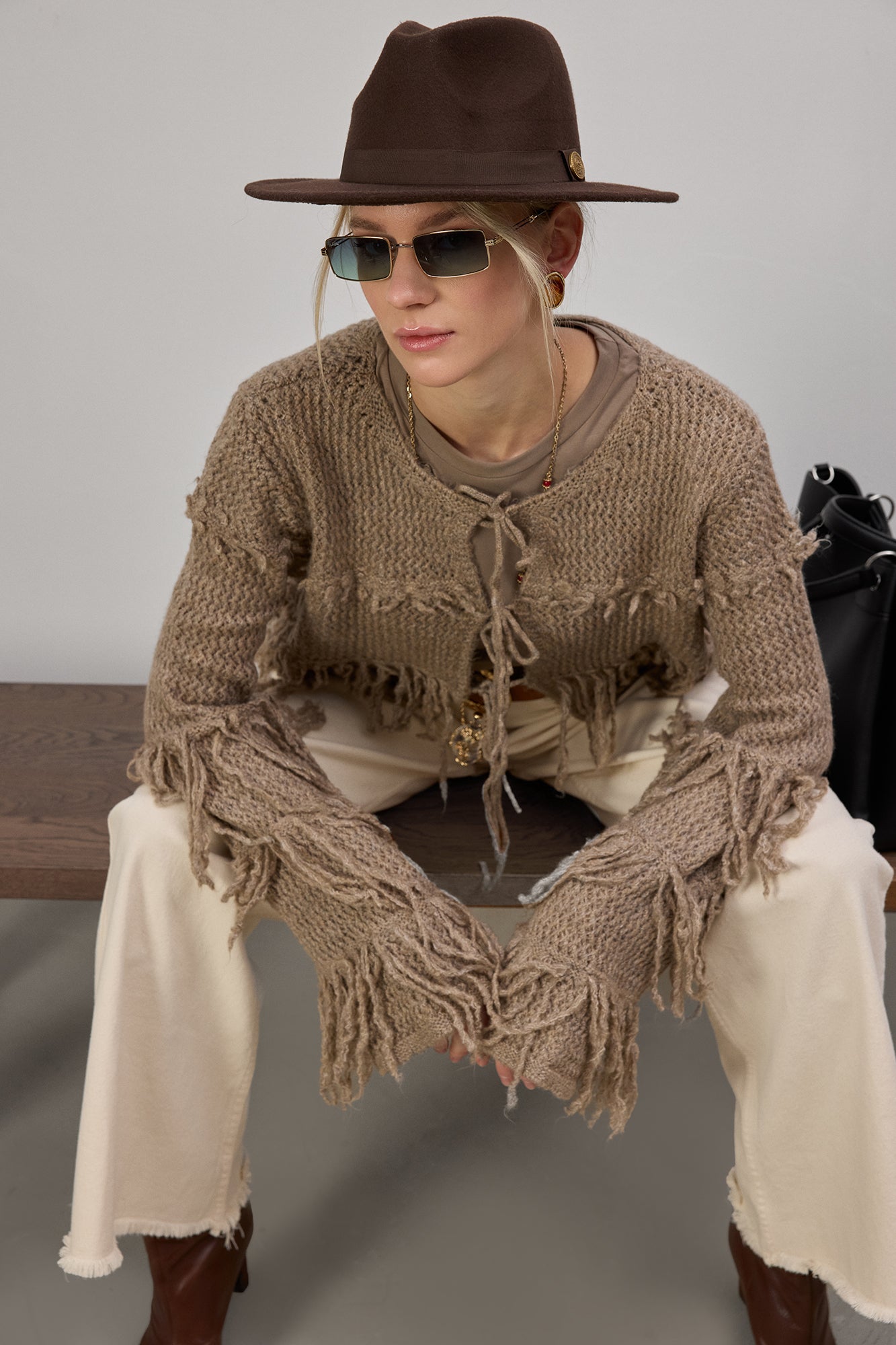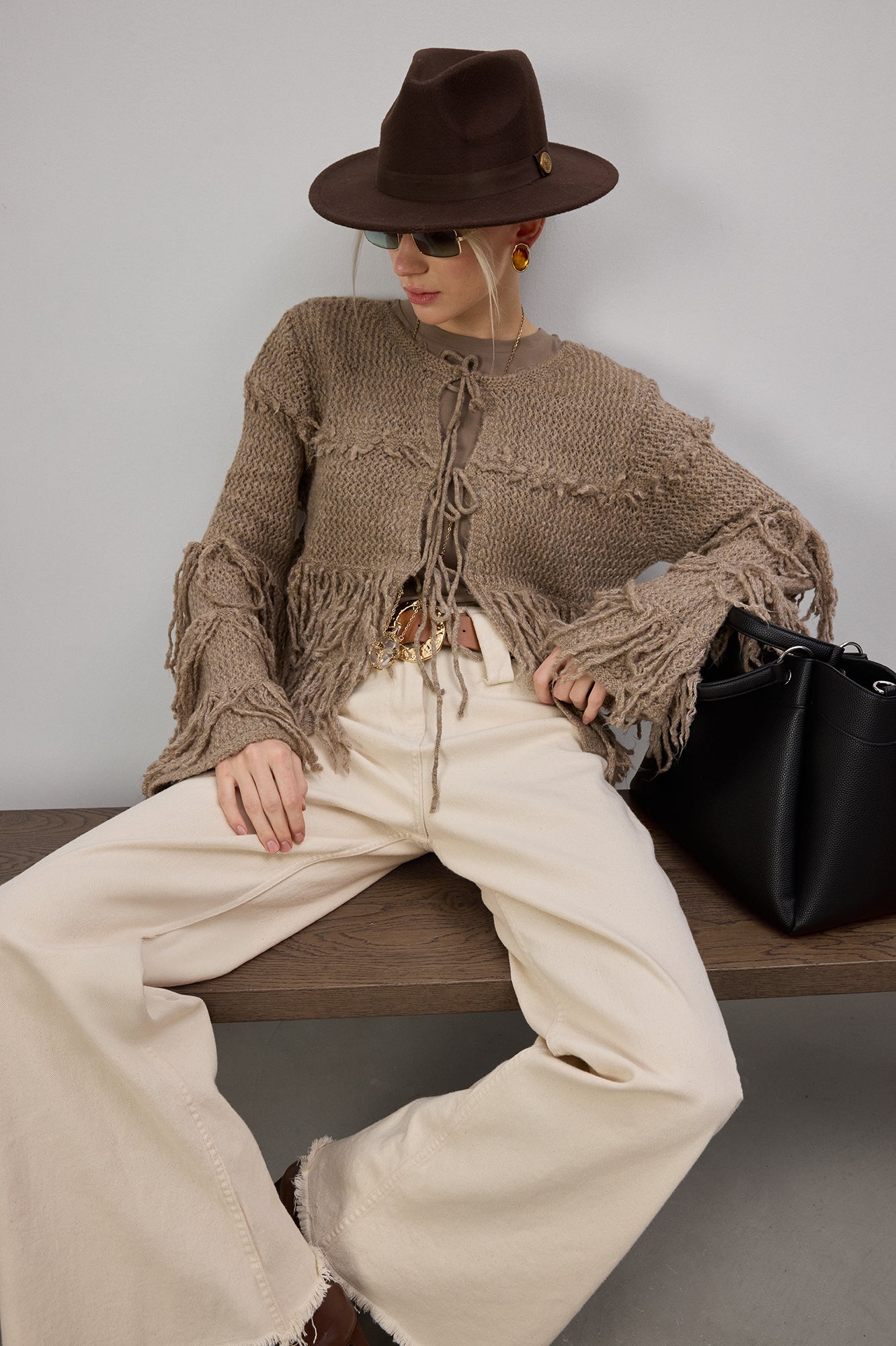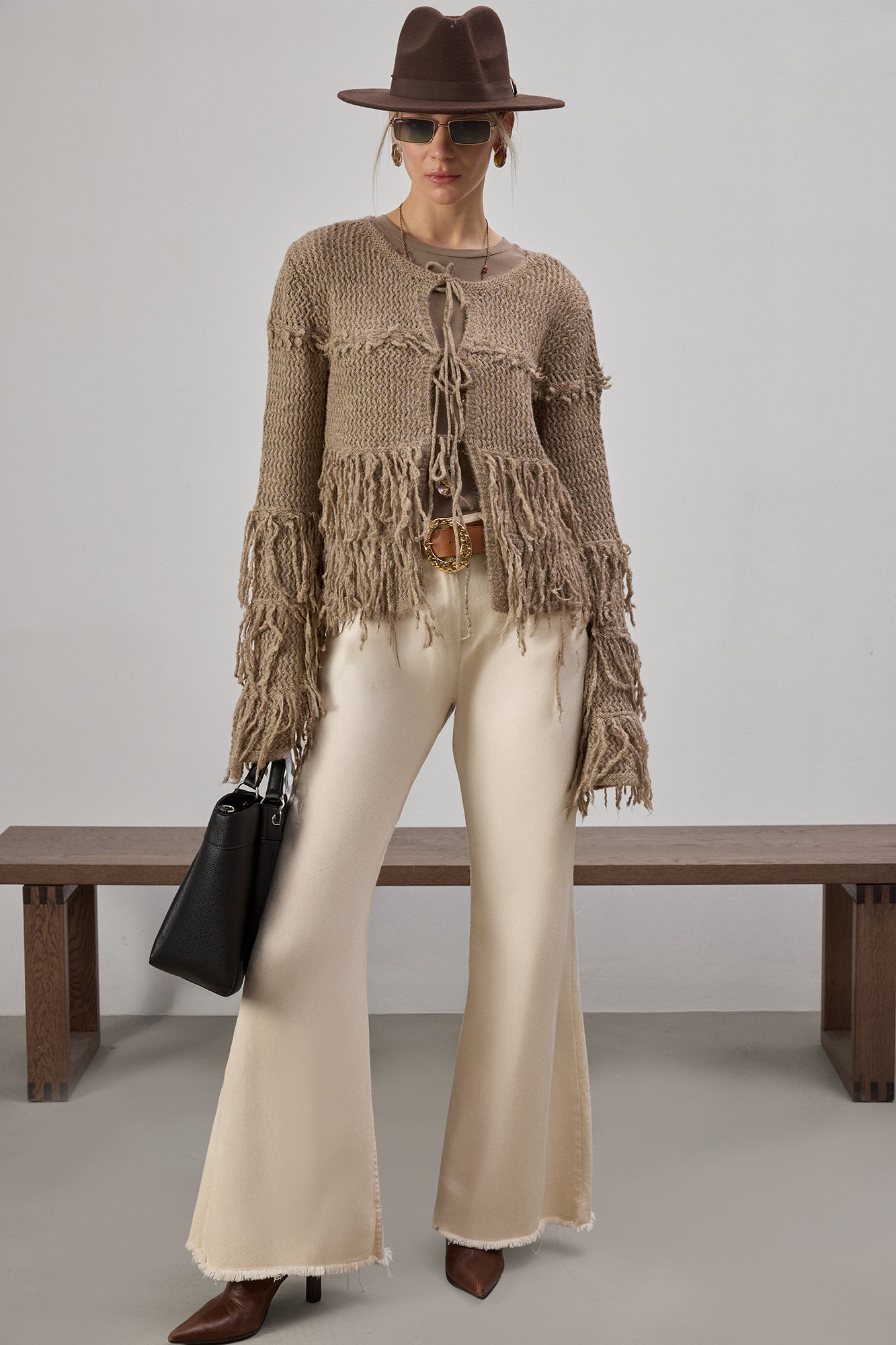 Bohem ruhu, doğal dokular ve karakterli tasarımlar sevenler için özel bir triko hırka.