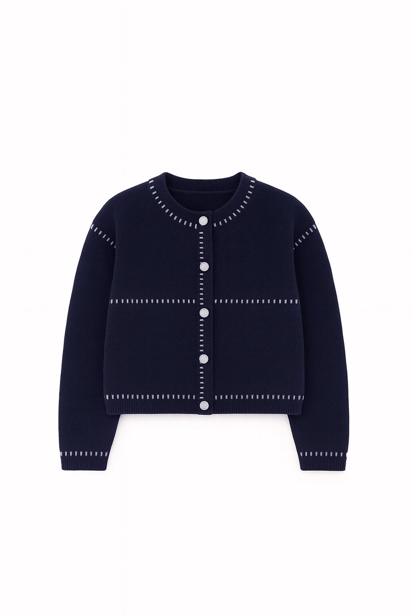 Bisiklet yaka. Uzun kollu. Önden düğme kapamalı hırka.