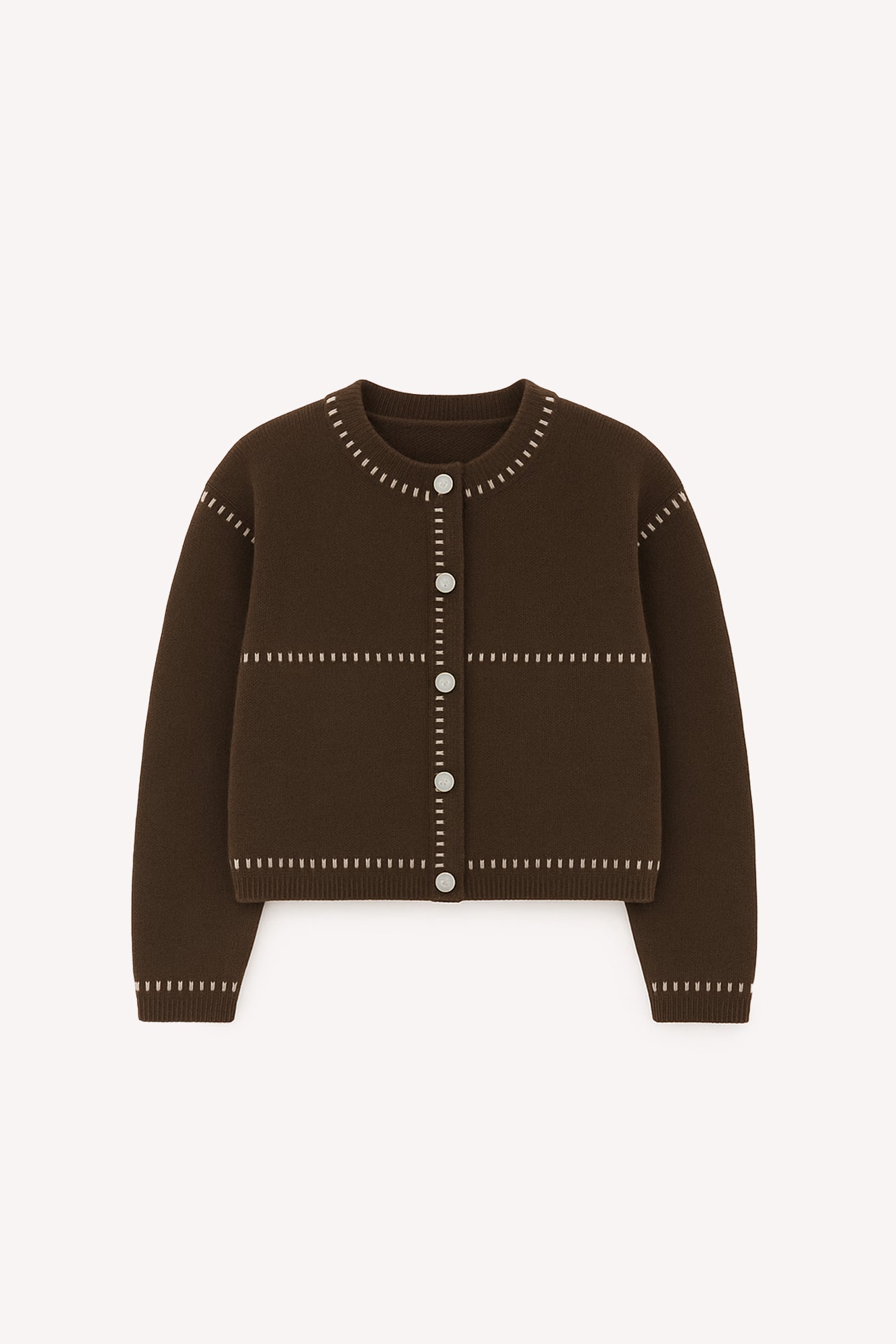 Bisiklet yaka. Uzun kollu. Önden düğme kapamalı hırka.