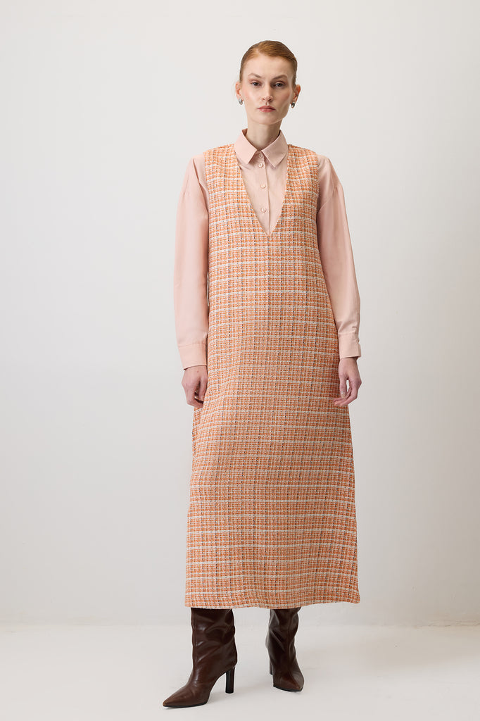 Bisiklet yaka. Kolsuz. Alttan çıt çıt kapama.
