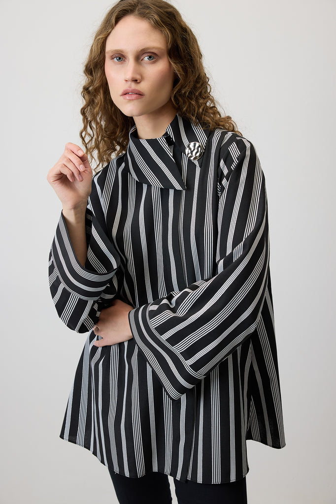 SİMLİ ÇİZGİLİ VİSKON GÖMLEK