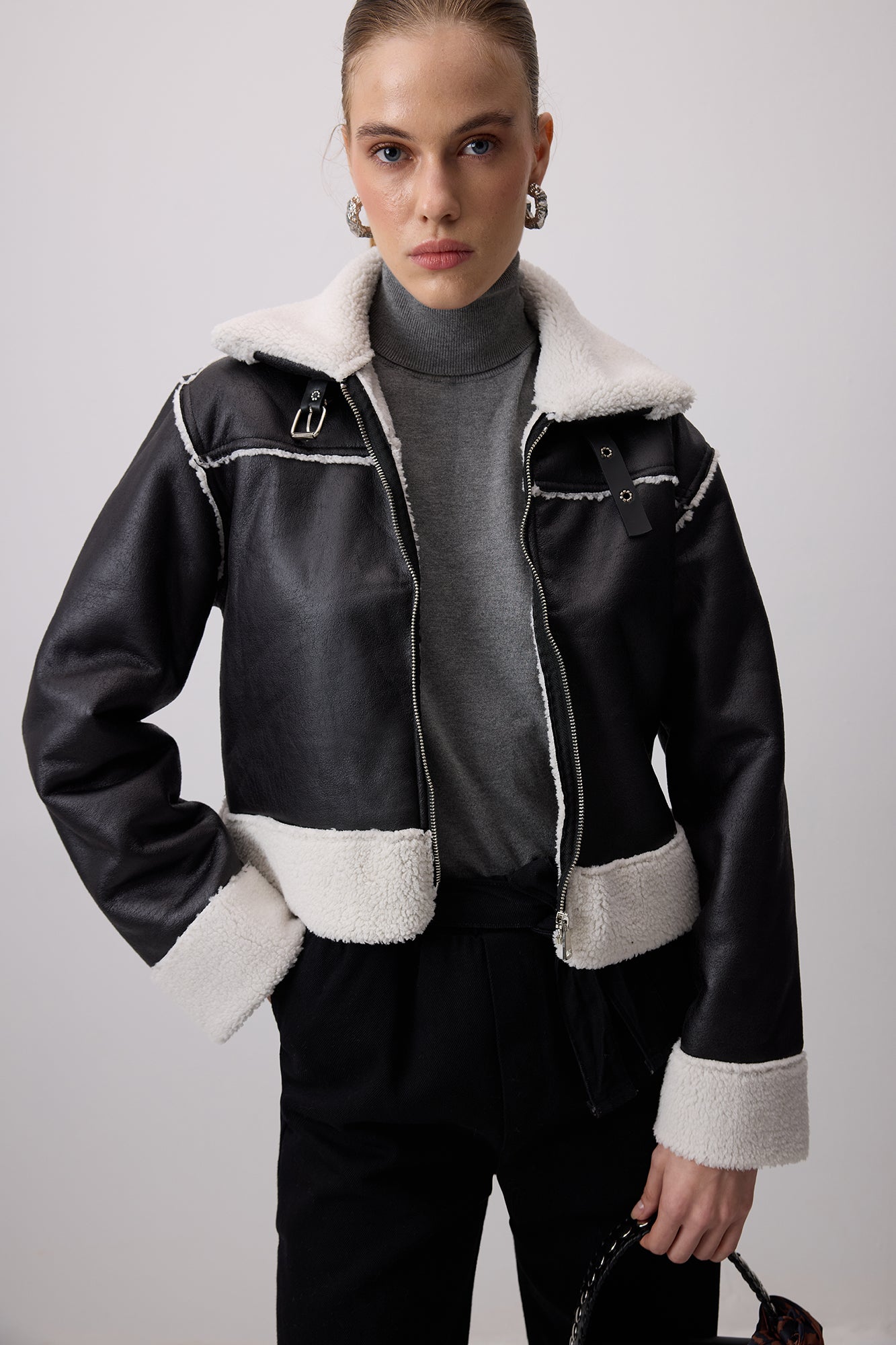 SUNİ DERİ BİKER KÜRKLÜ MONT