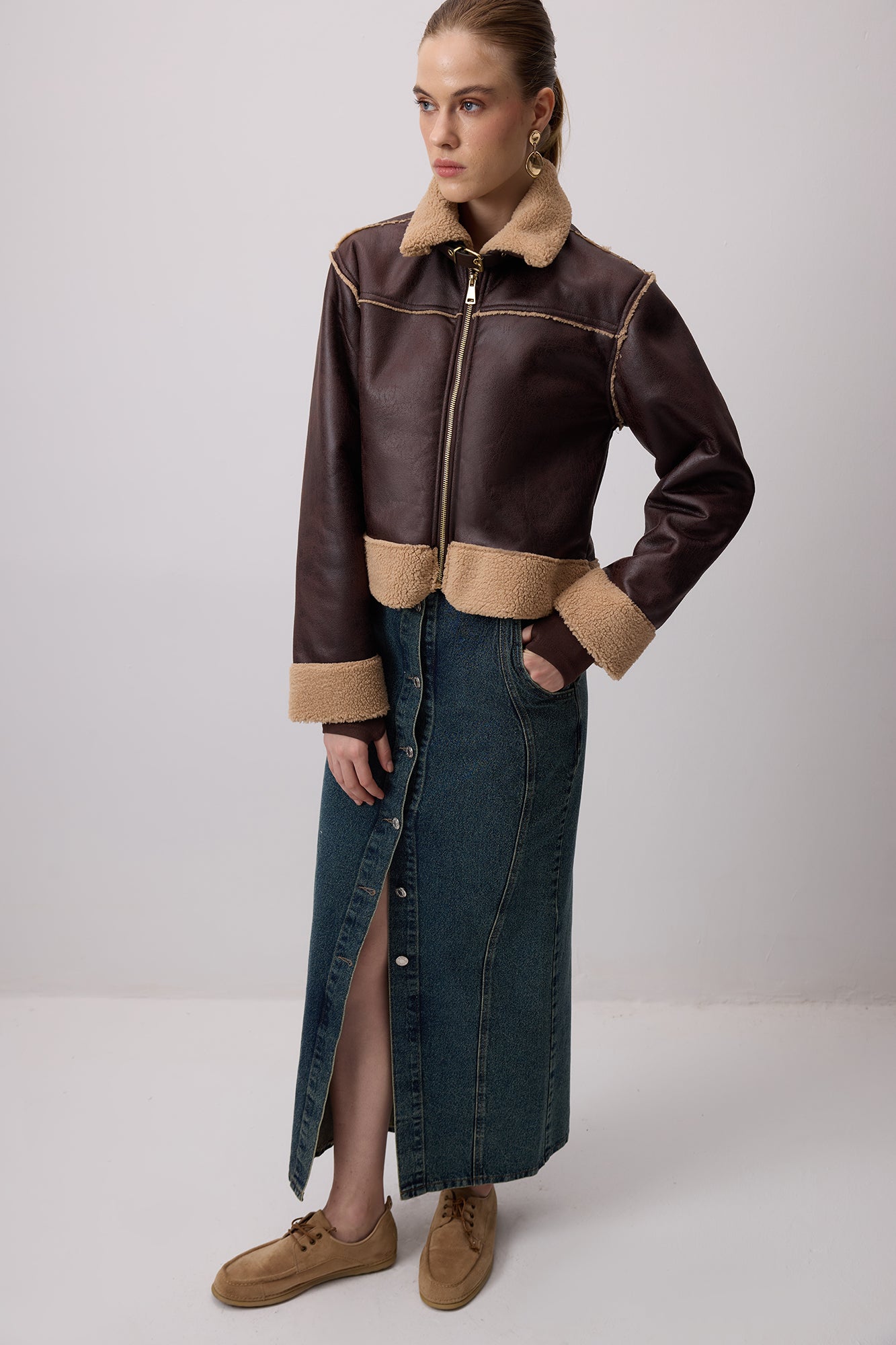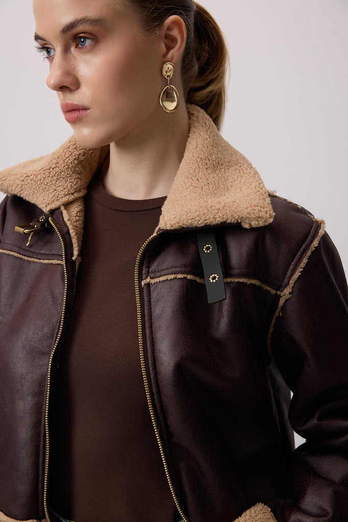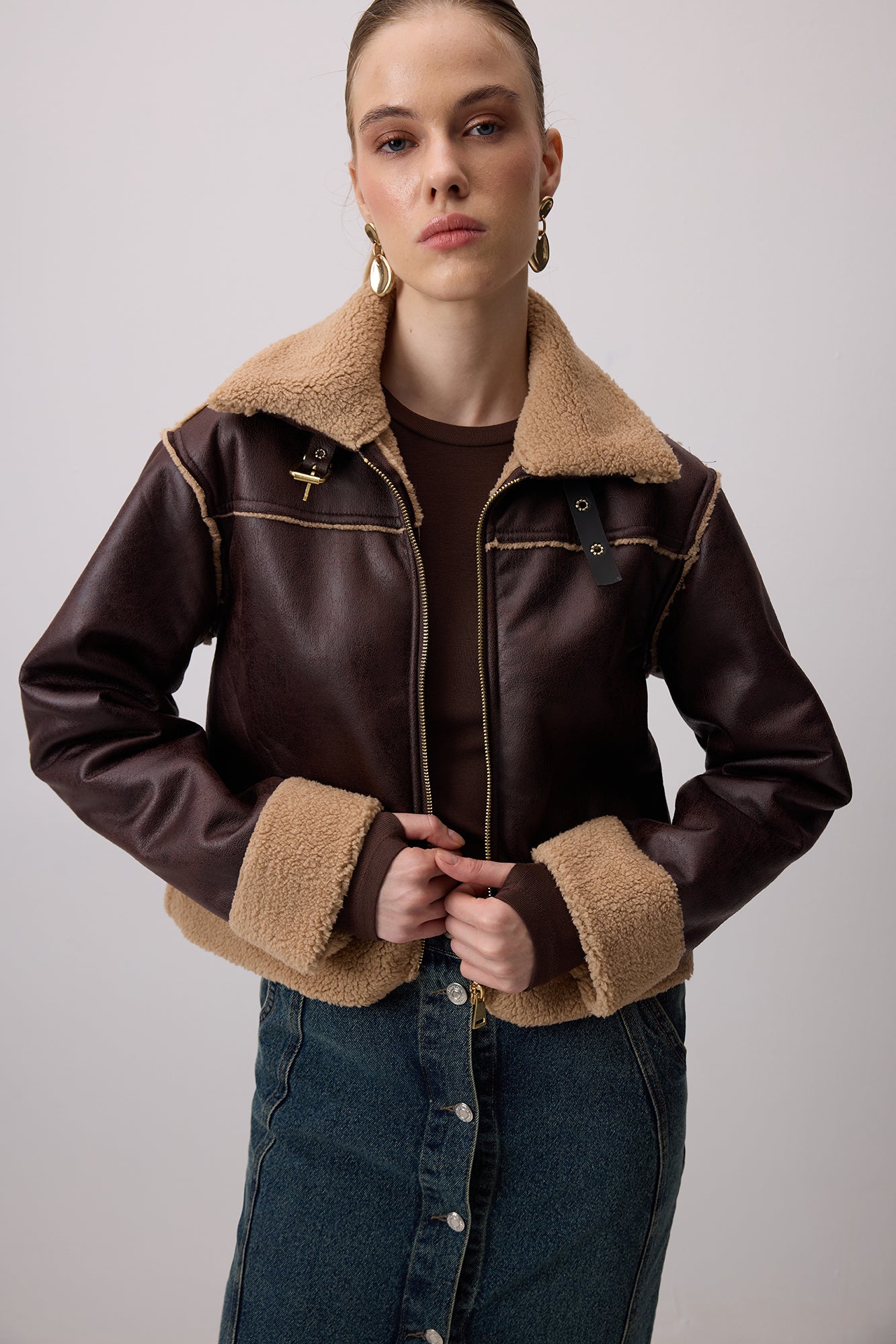SUNİ DERİ BİKER KÜRKLÜ MONT