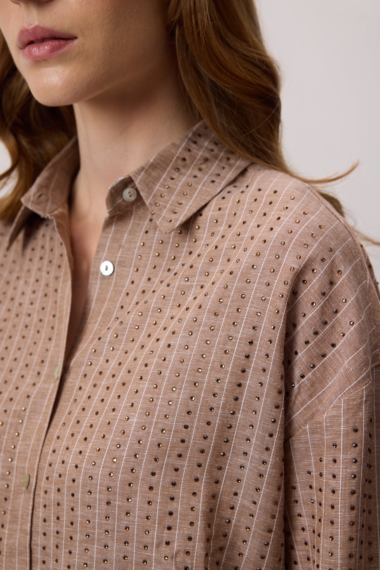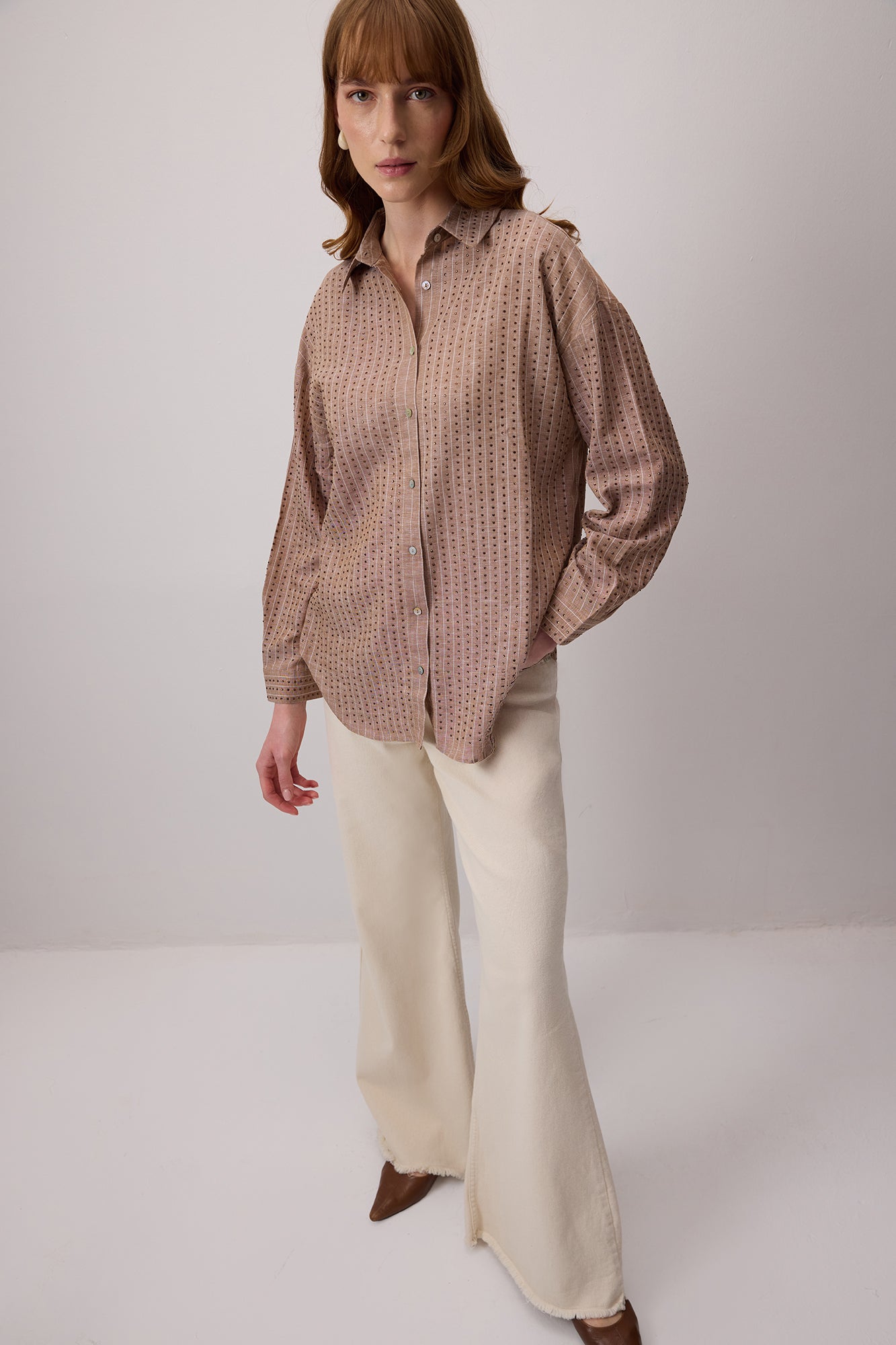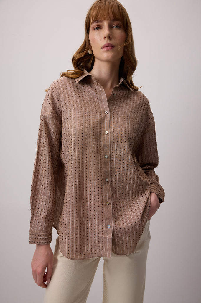 TAŞ BASKILI OVERSİZE GÖMLEK