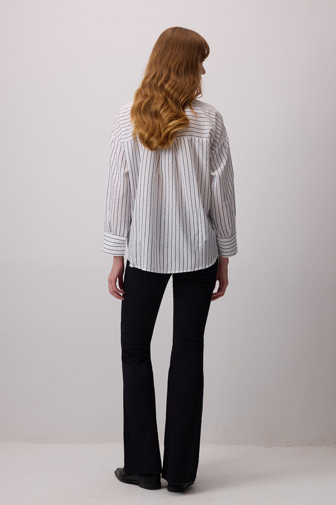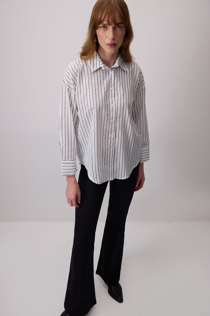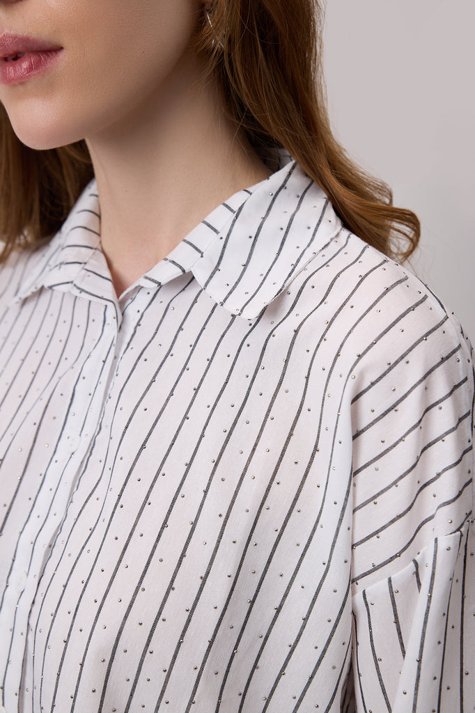 TAŞ İŞLEMELİ ÇİZGİLİ POPLİN GÖMLEK