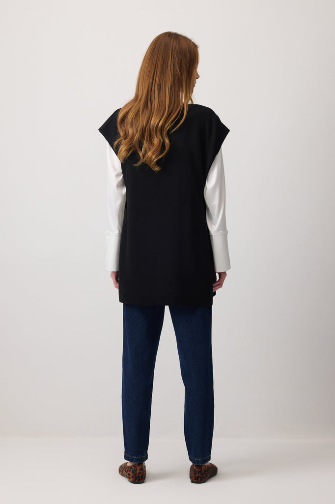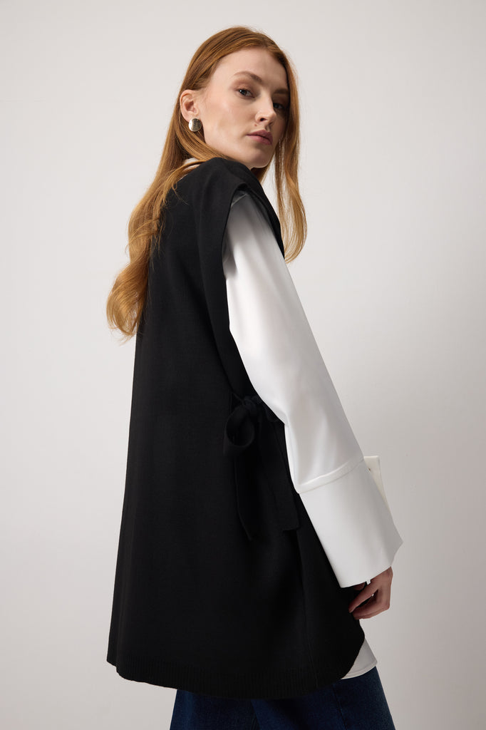 V YAKA YANLARI BAĞCIKLI TRIKO SÜVETER