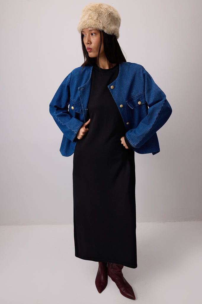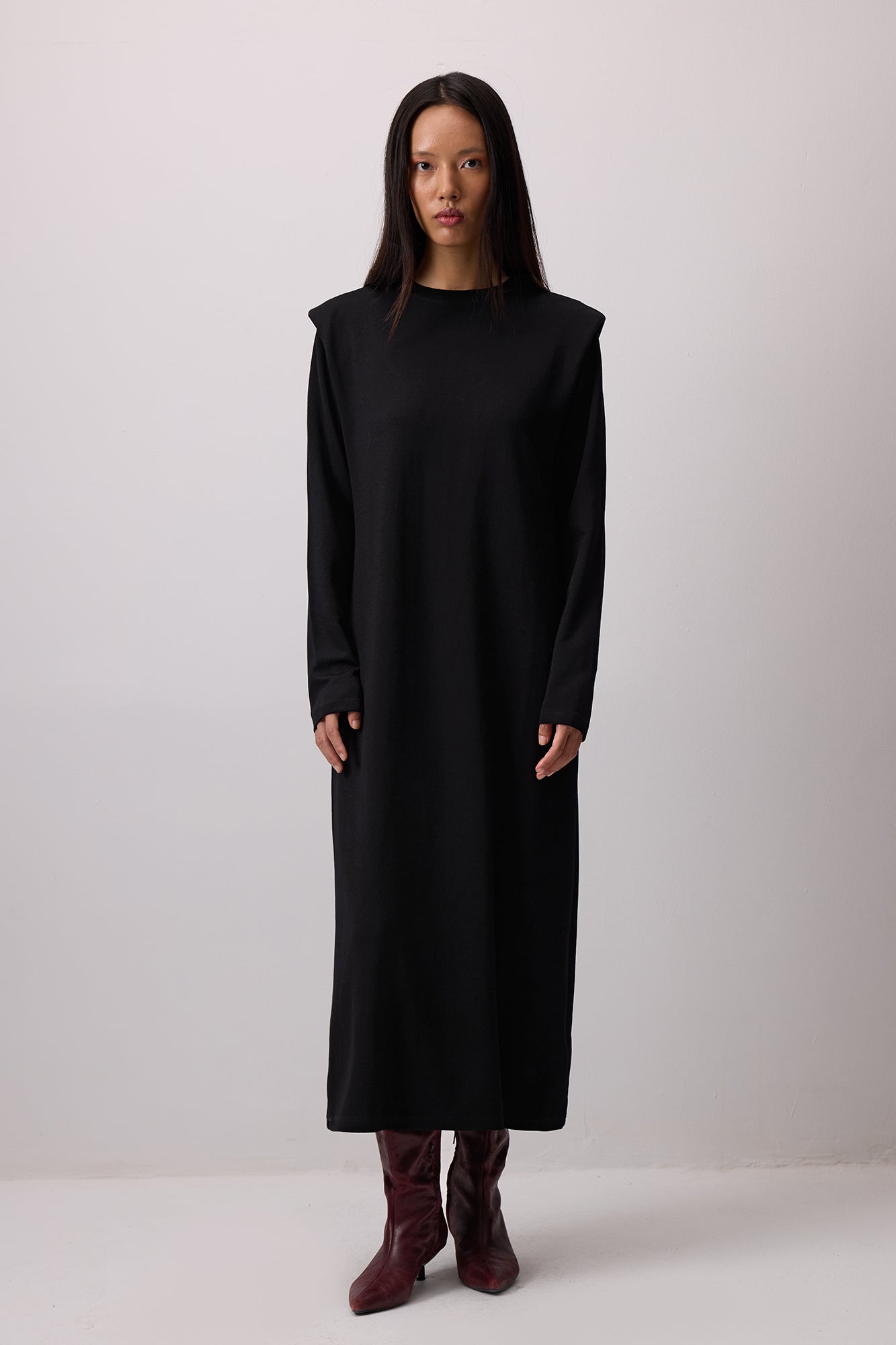 Bisiklet yaka. Uzun kollu. Vatkalı. Basic. Elbise.