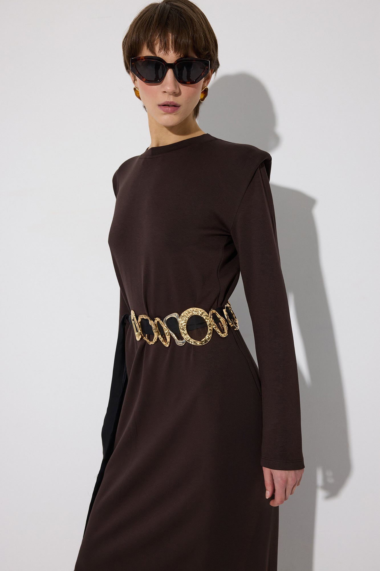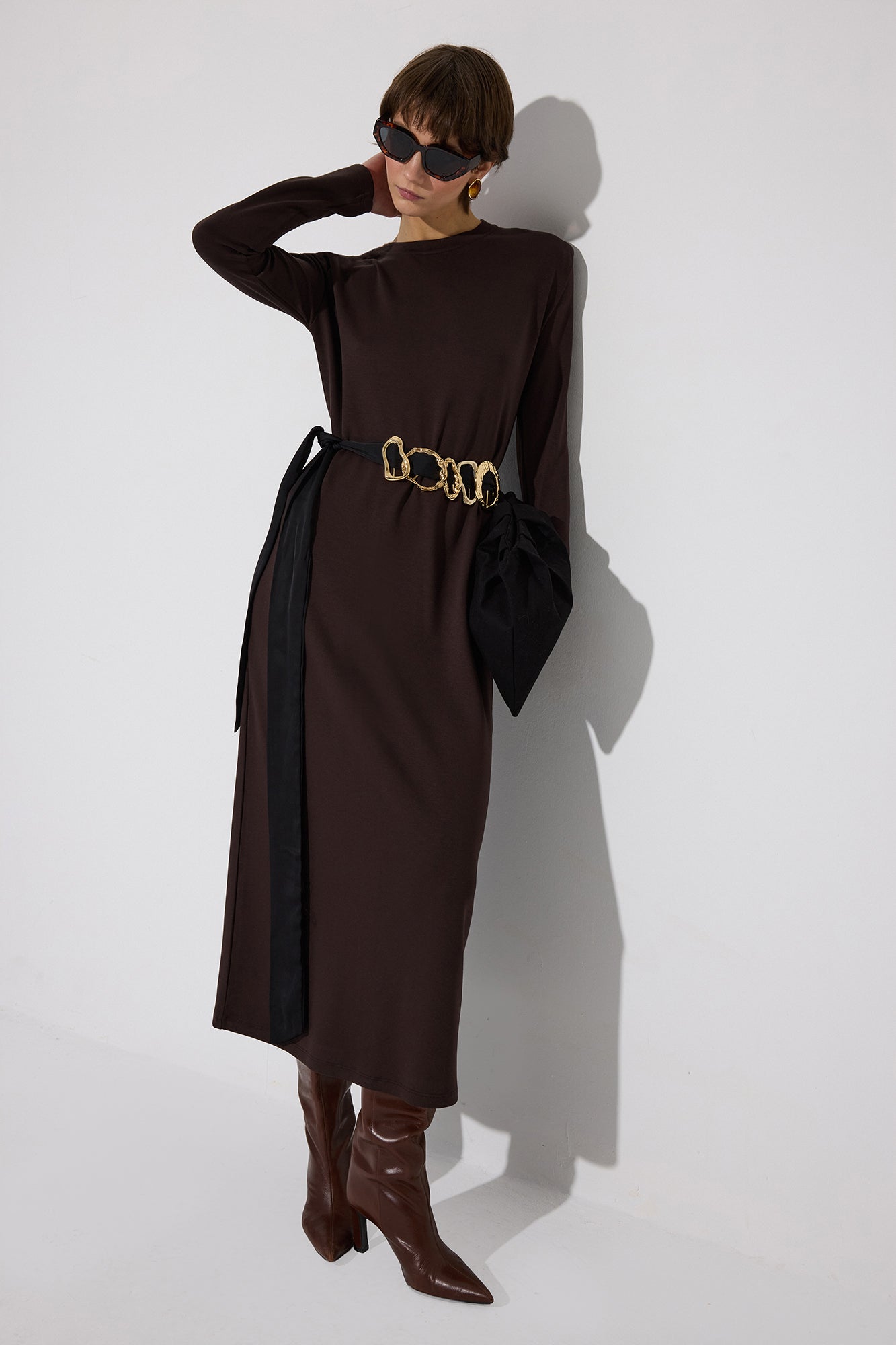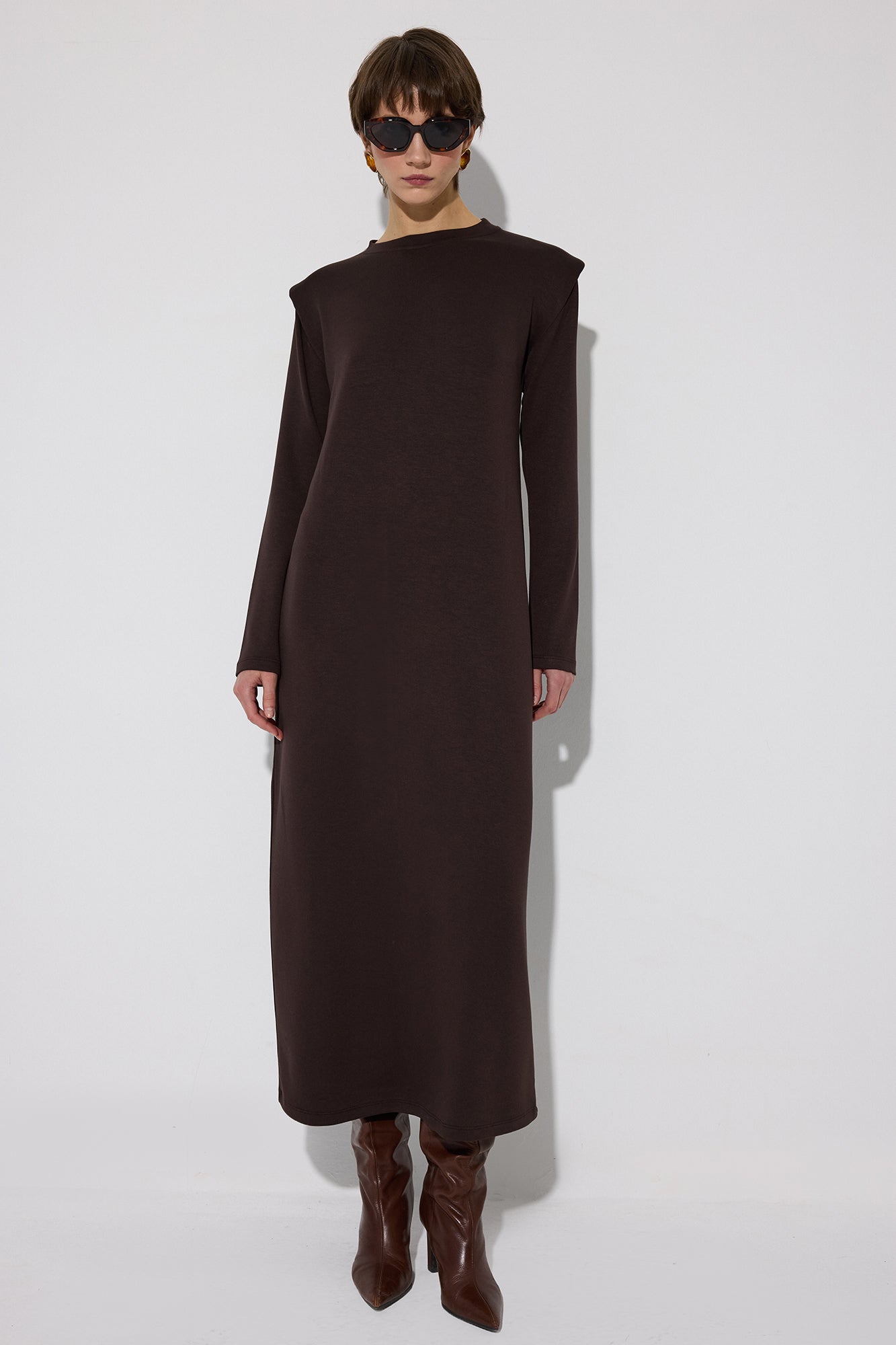 Bisiklet yaka. Uzun kollu. Vatkalı. Basic. Elbise.