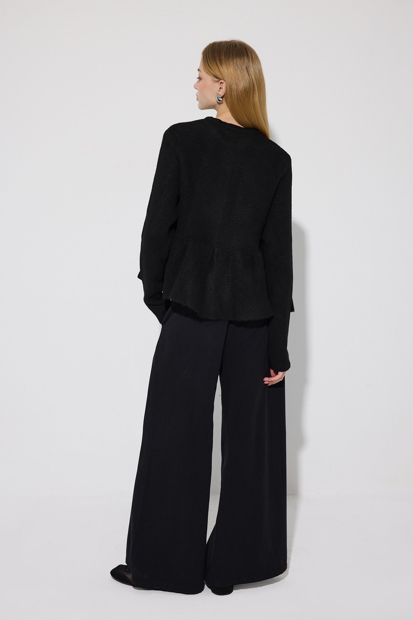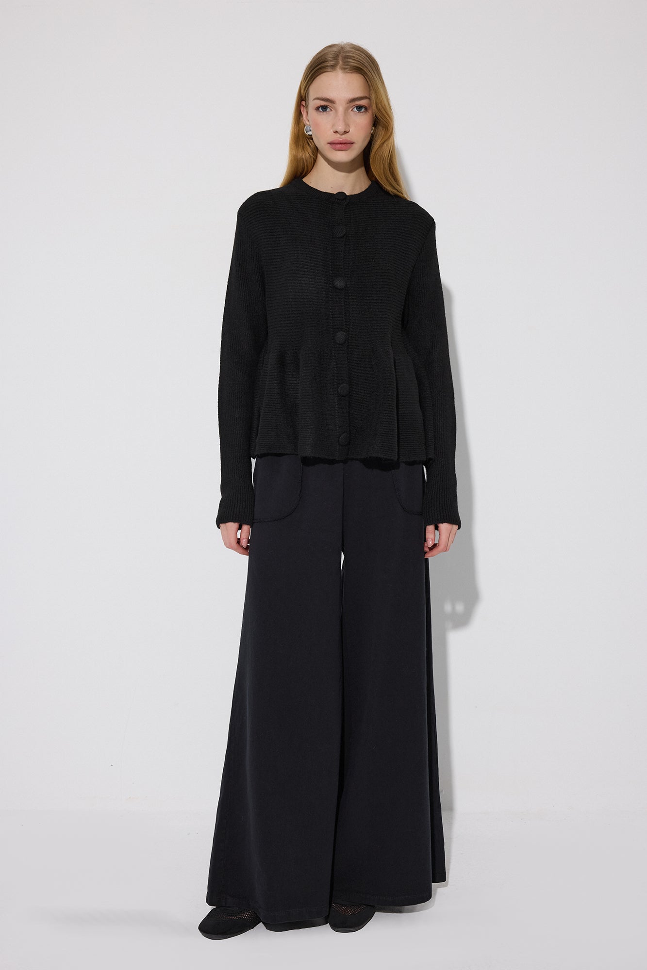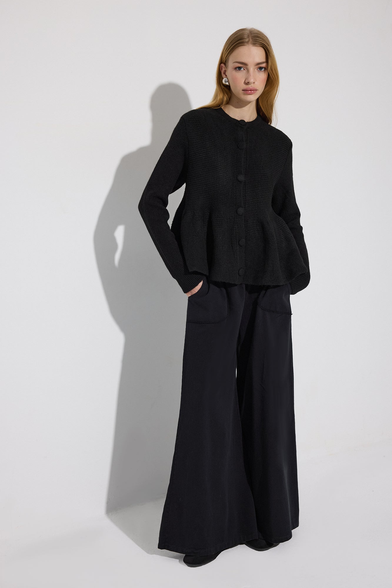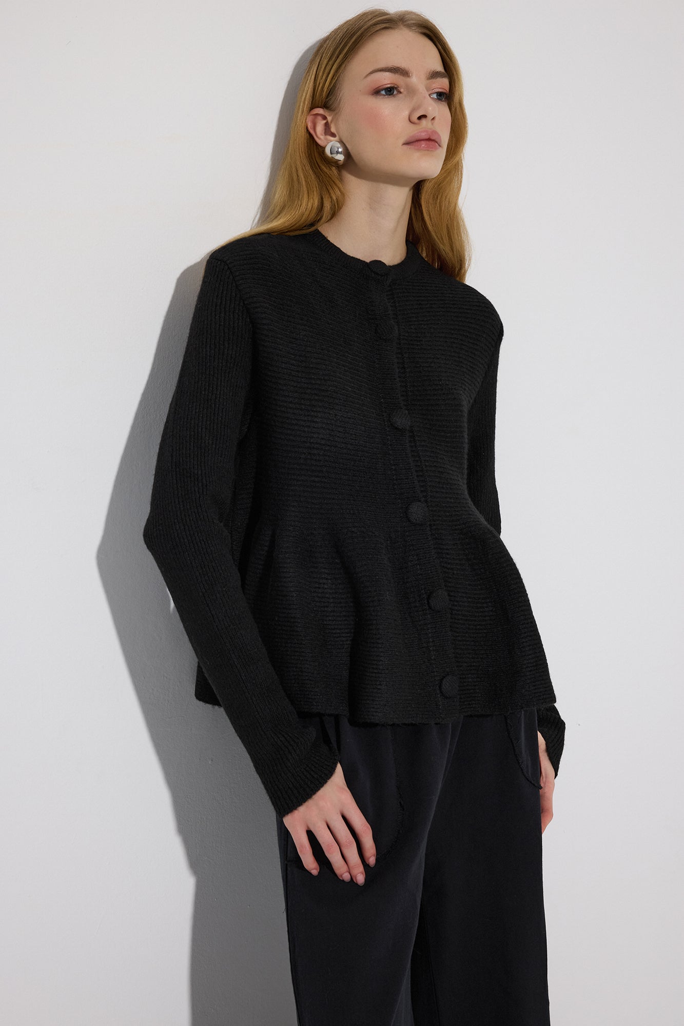Önü düğme kapamalı. Uzun kollu. Triko.