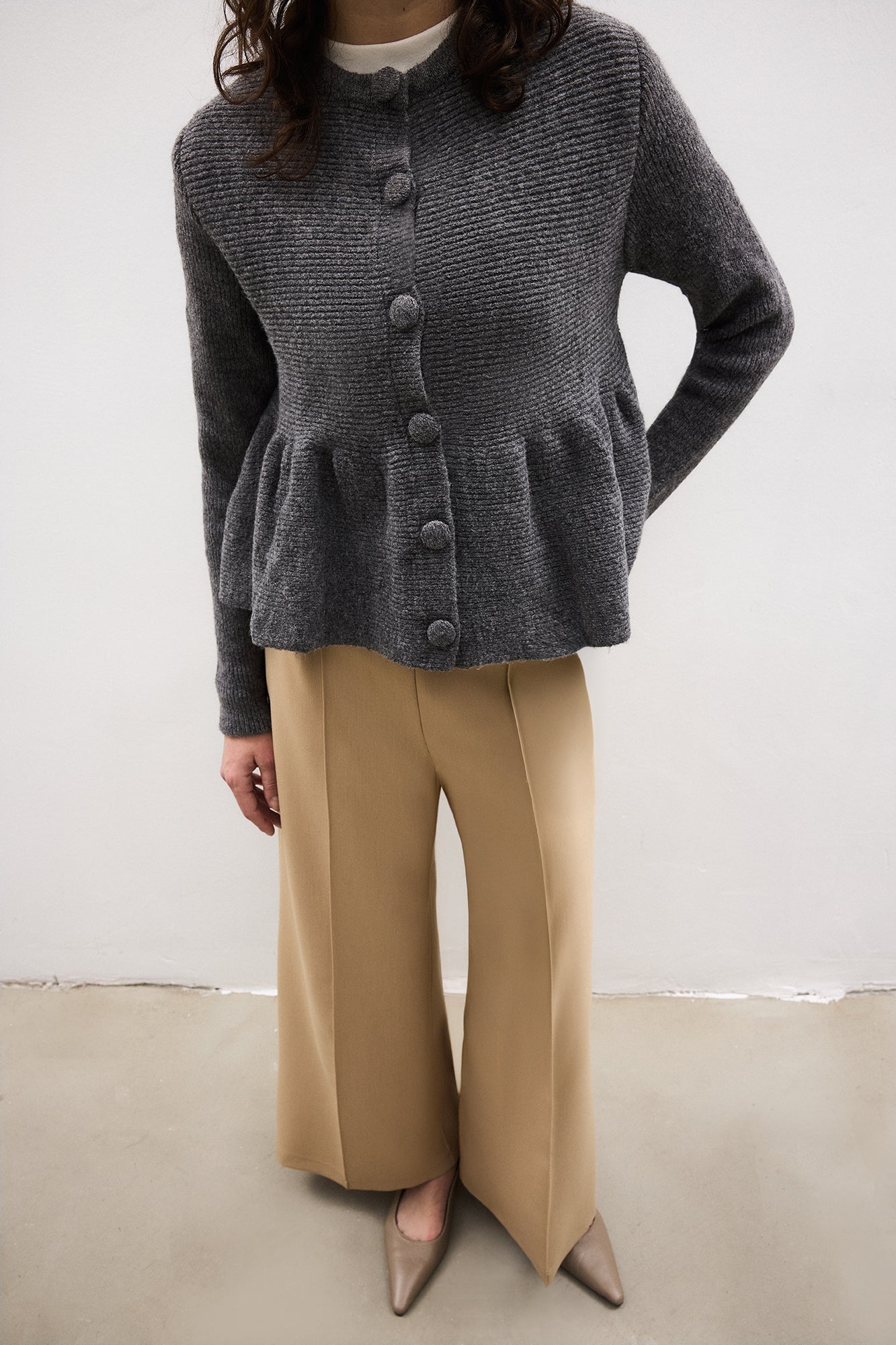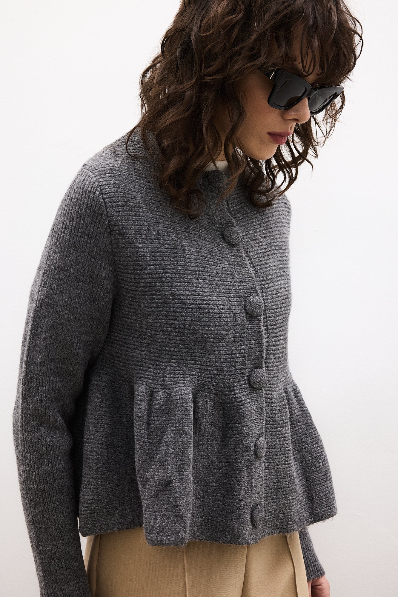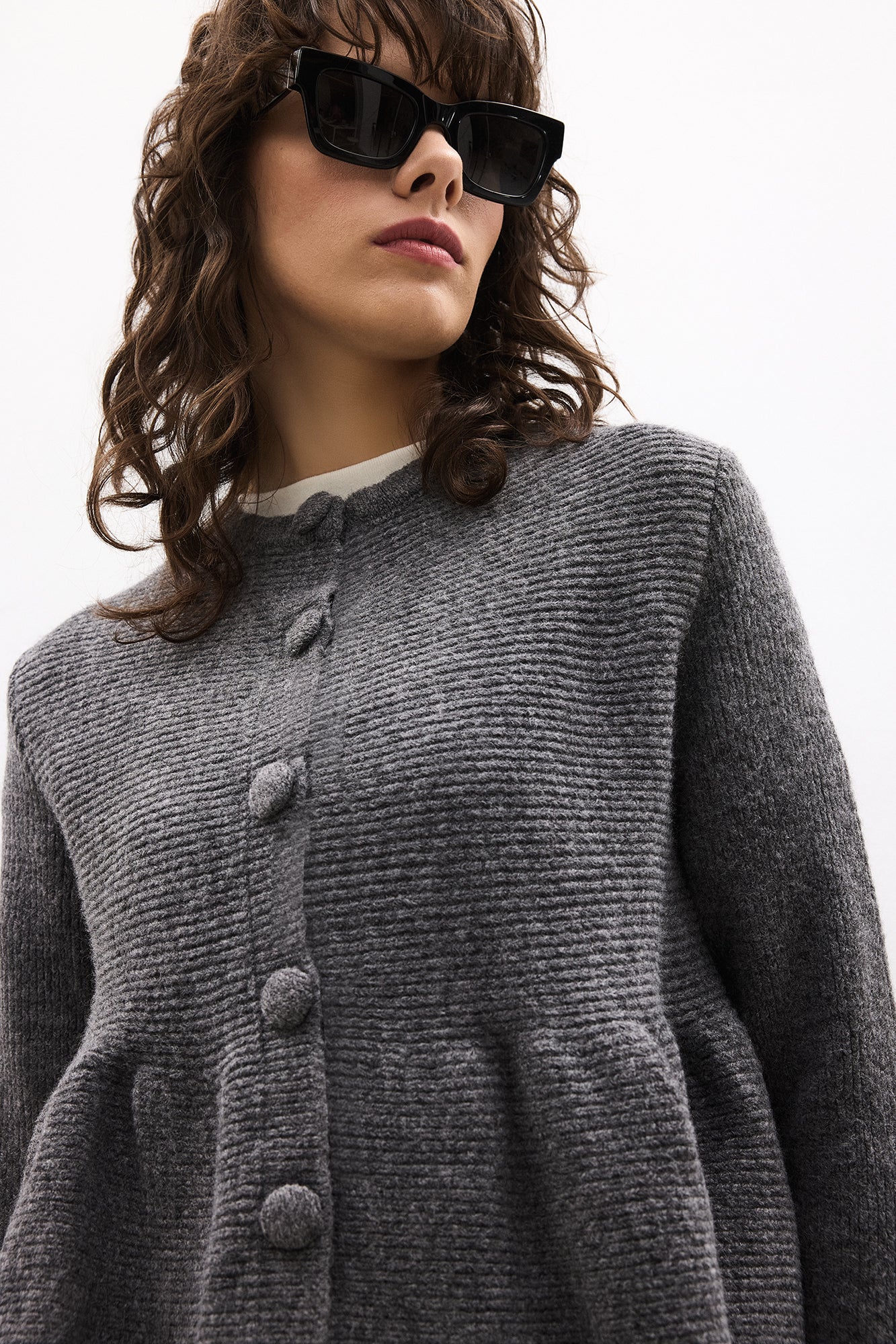 Önü düğme kapamalı. Uzun kollu. Triko.