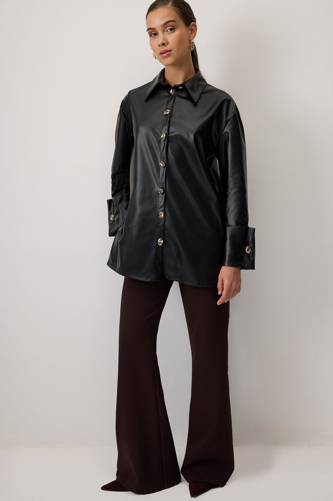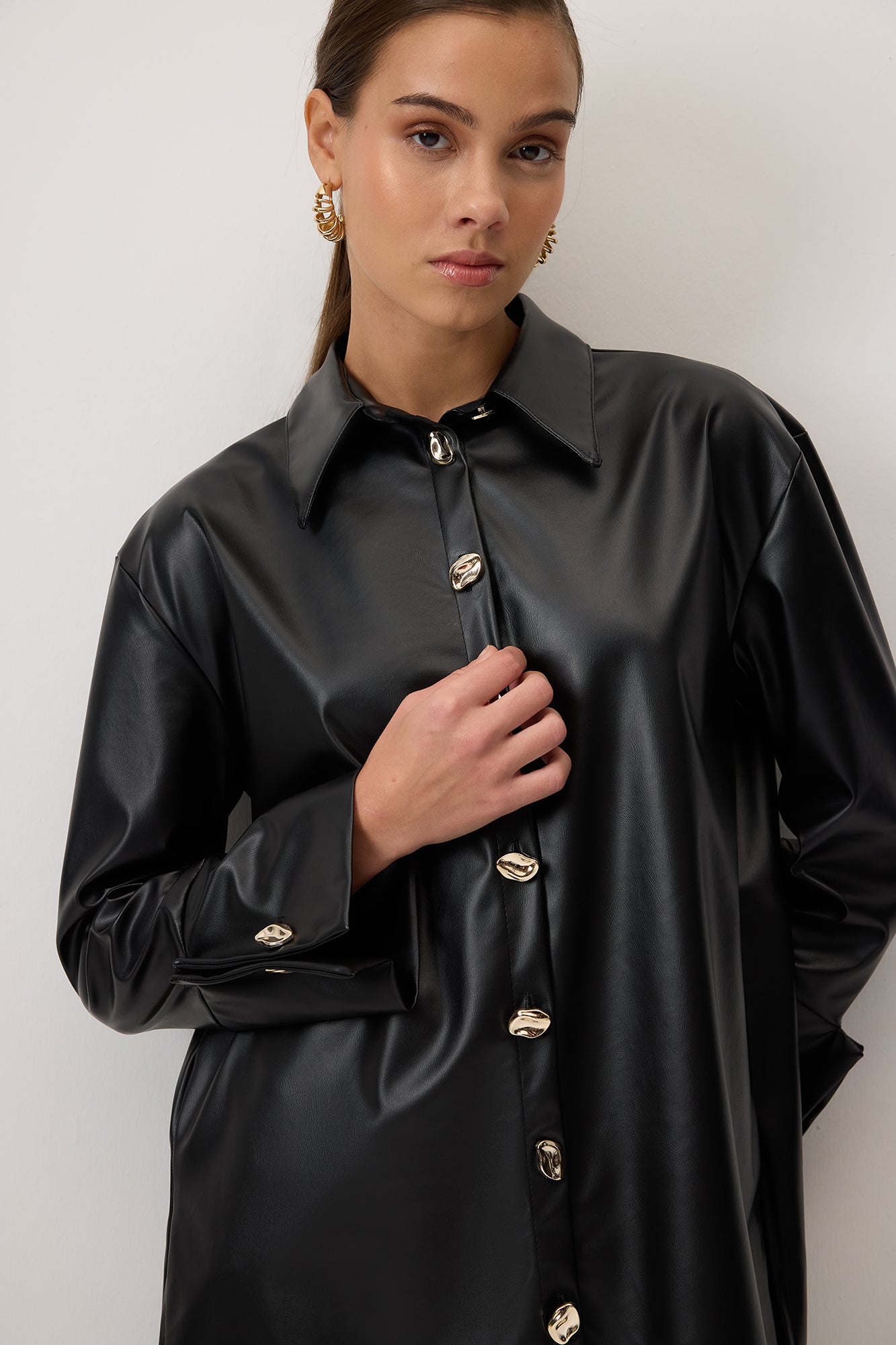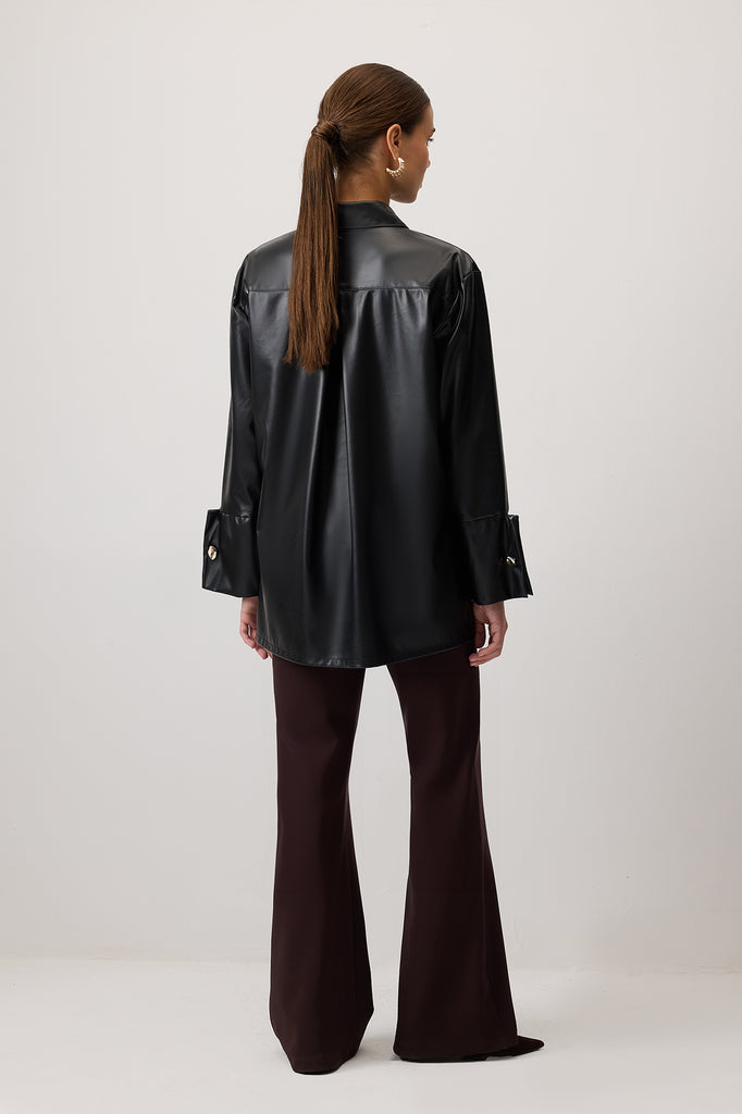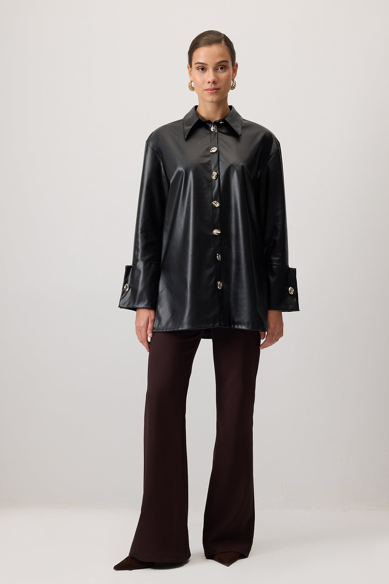 Vegan Deri. İri düğmeli. Geniş manşetli gömlek.