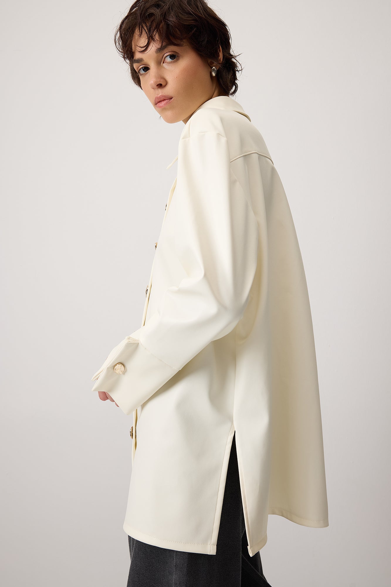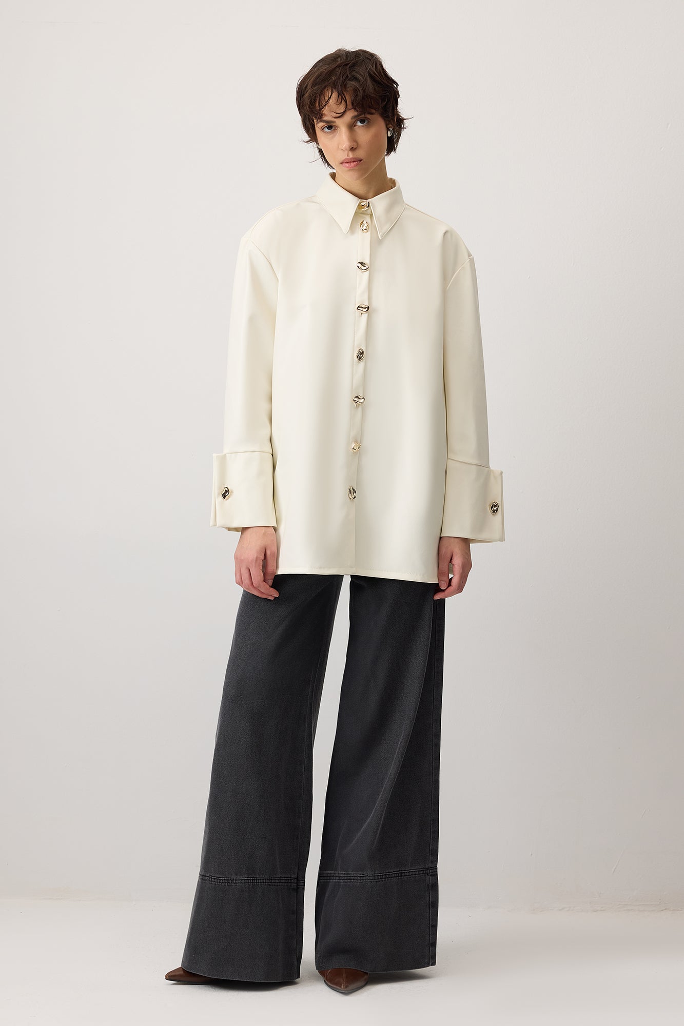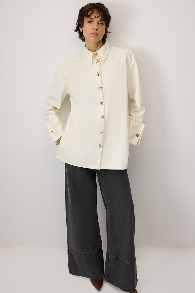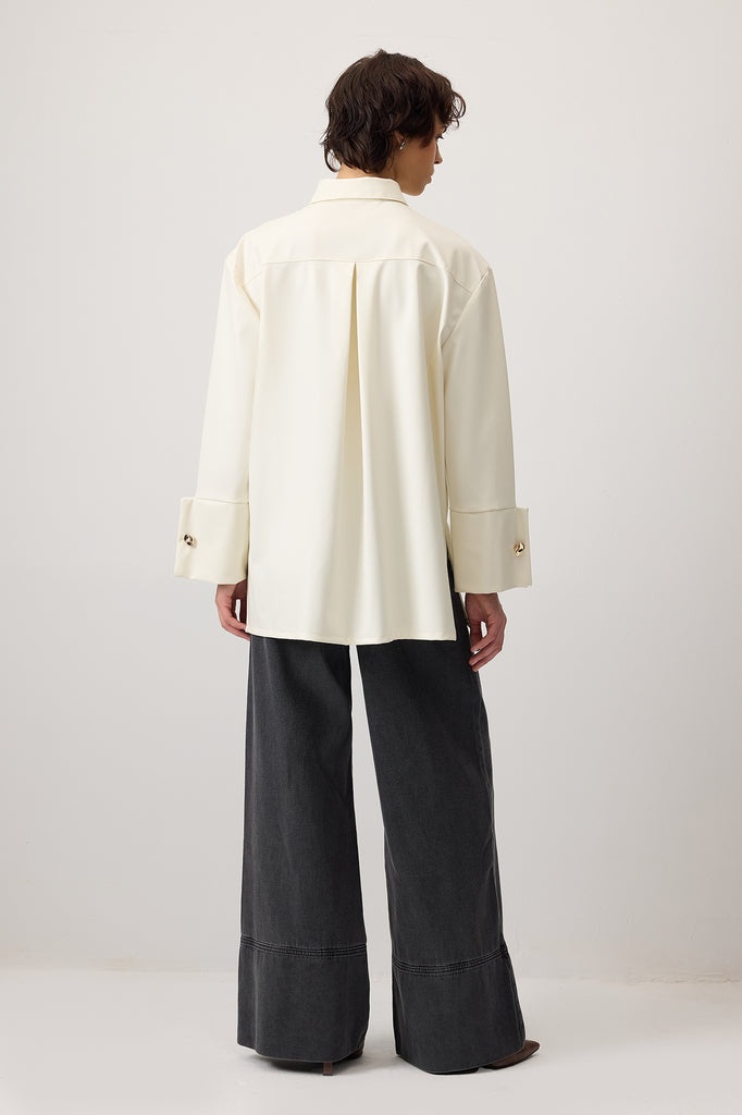 Vegan Deri. İri düğmeli. Geniş manşetli gömlek.