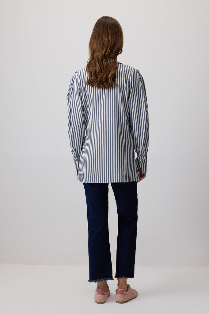 YANDAN BAĞLAMALI ÇİZGİLİ GÖMLEK