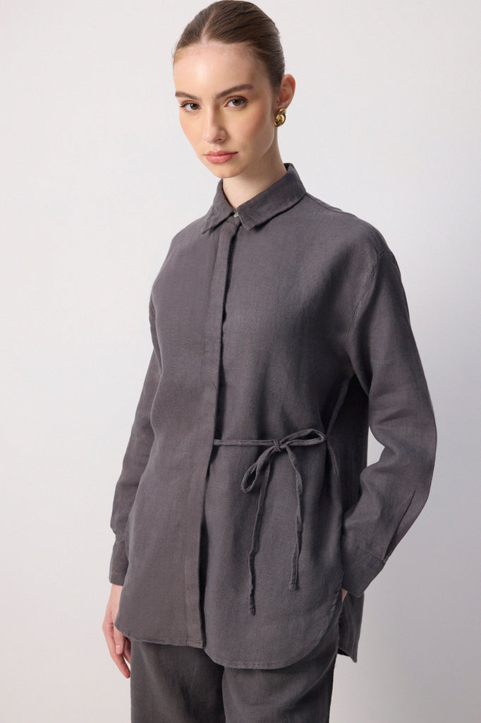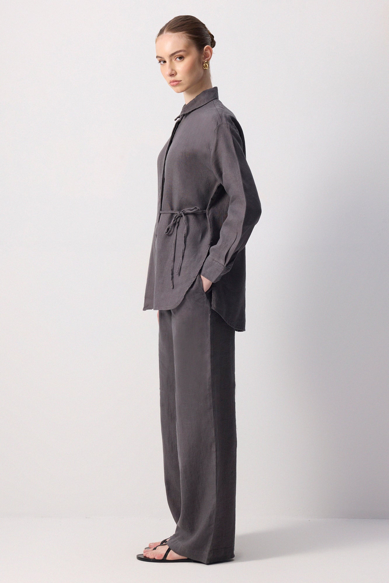 %100 KETEN YANDAN BAĞLAMALI TUNİK PANTOLON TAKIM