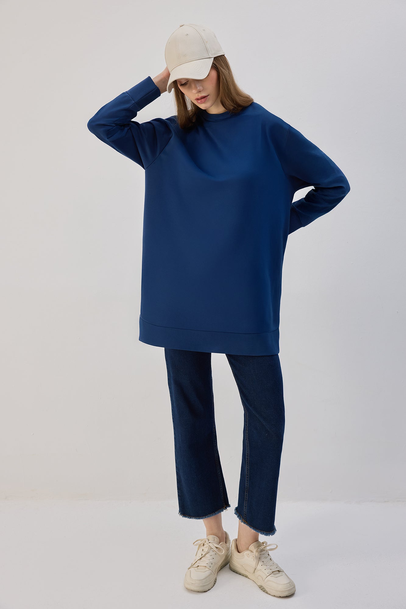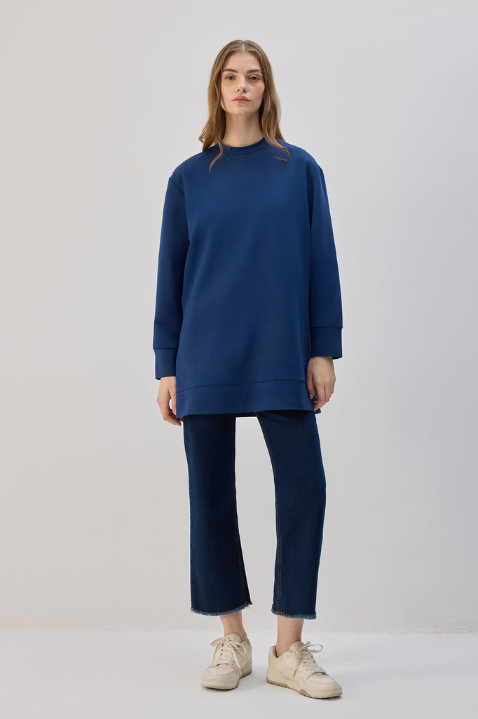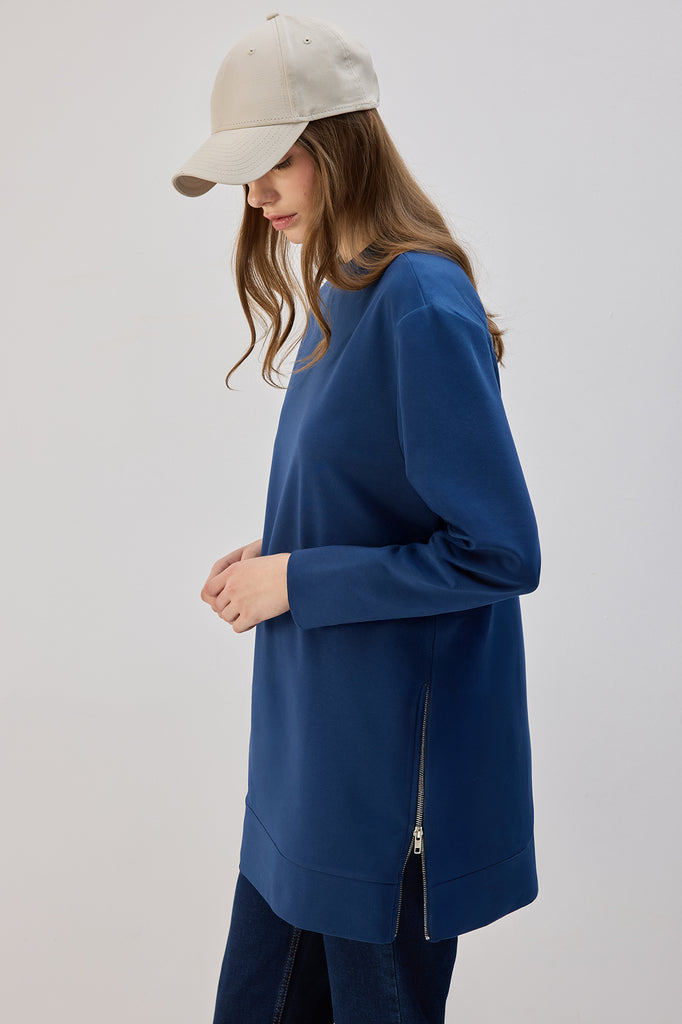 Yumuşak dokulu örme kumaş, rahat kesim, yanı fermuarlı uzun tunik.