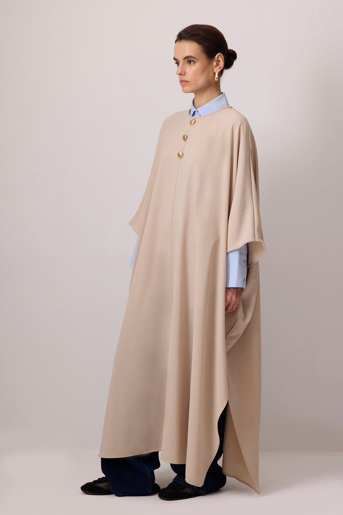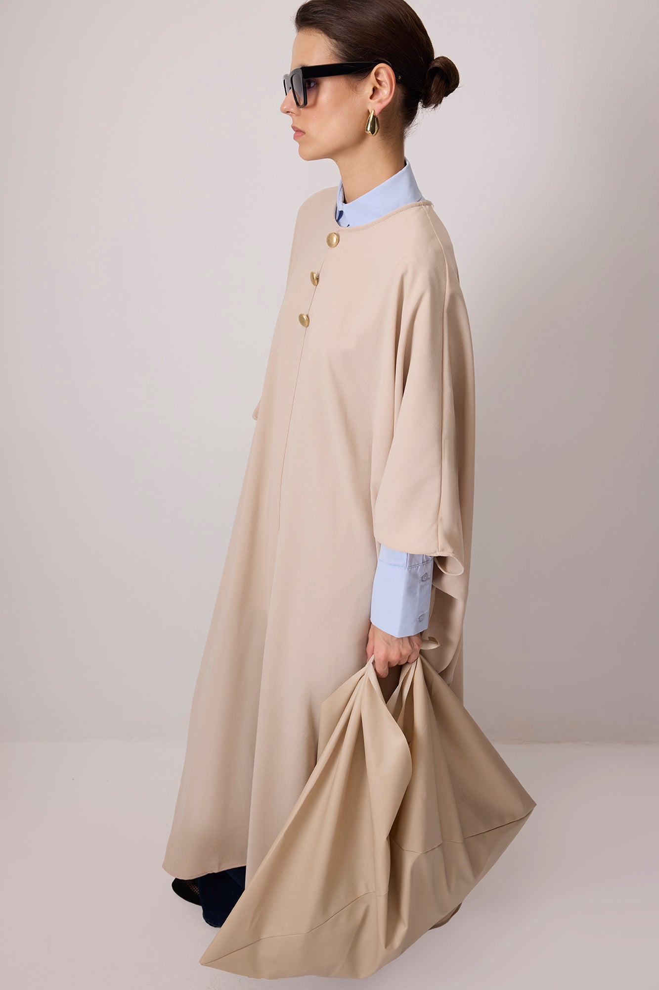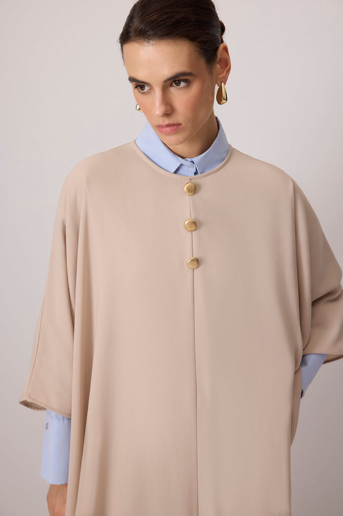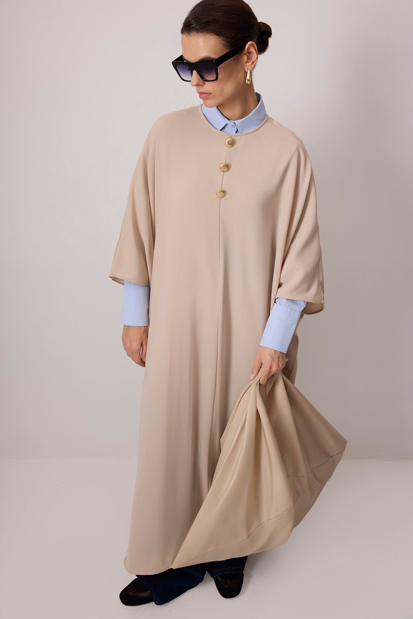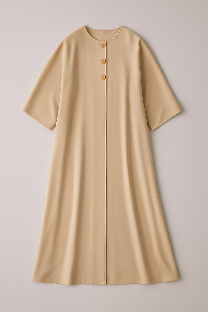 Bisiklet yaka. Yarasa kol. Oversize. Gold düğme detaylı elbise.