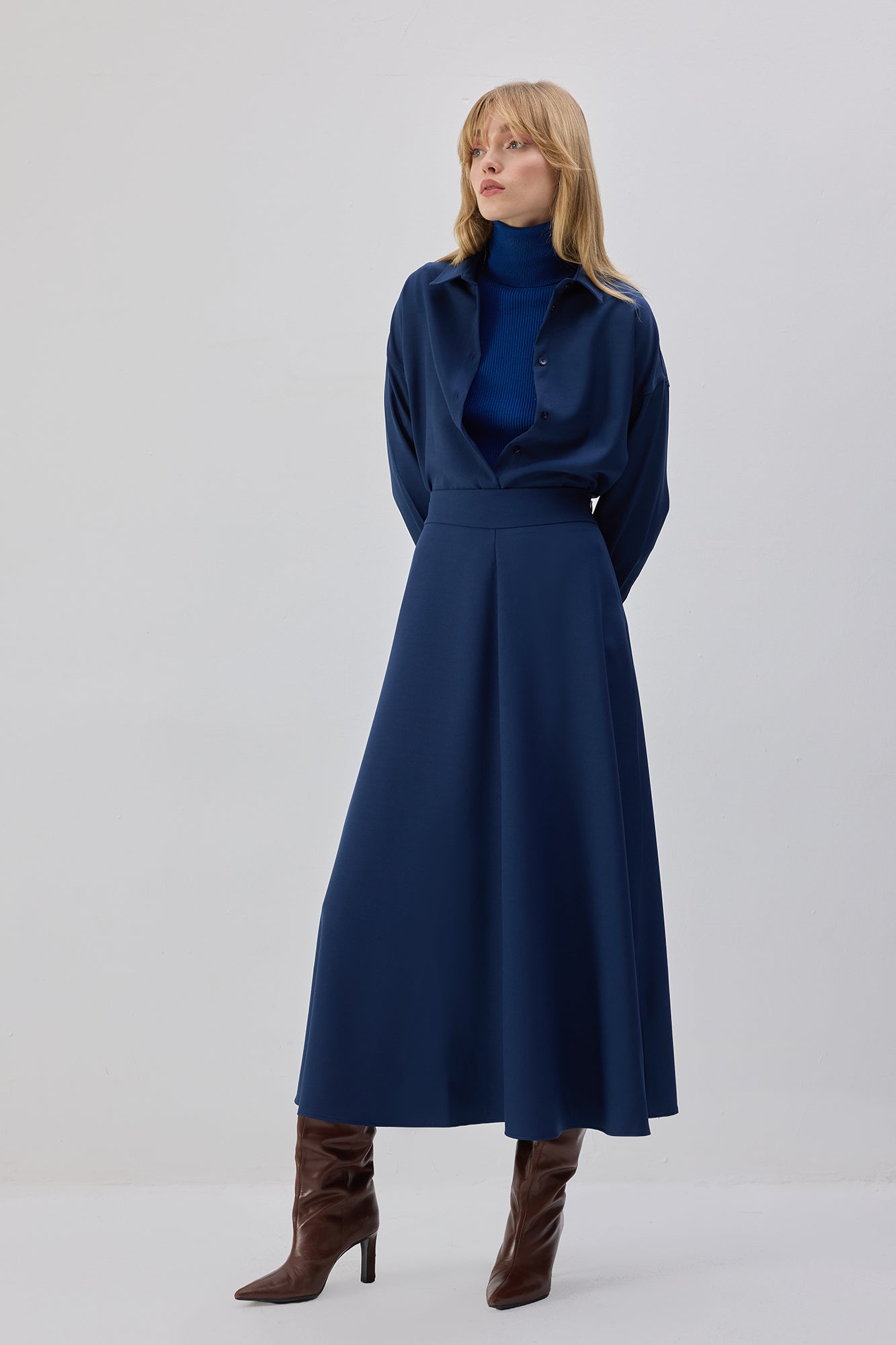 Gün boyu konfor için özel dokuda geliştirilen bu etek, tok duruşu, esnek yapısı ve nefes alan kumaşı sayesinde hareket ettikçe formunu korur.